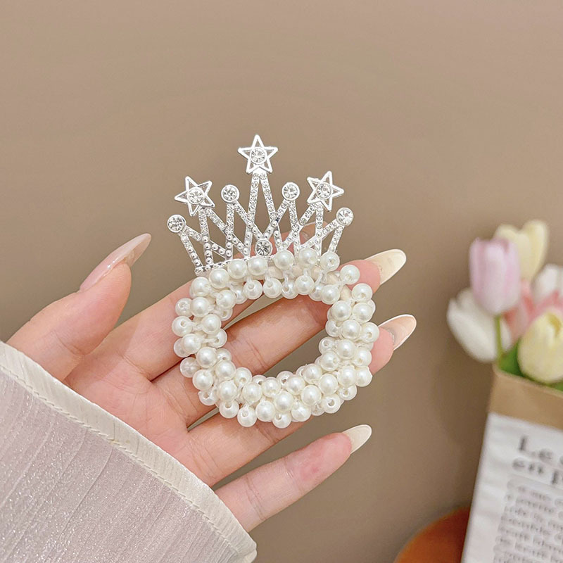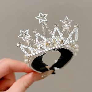 儿童发夹丸子头皇冠头饰仿珍珠皇冠头饰女童公主头盘发扣小女孩