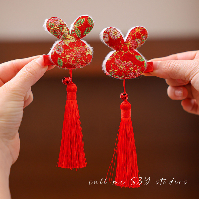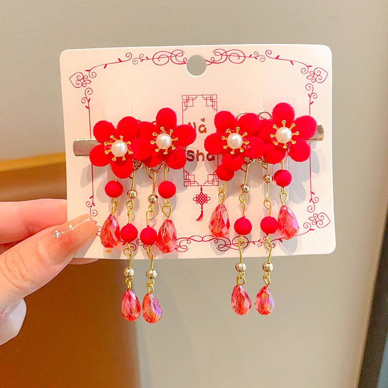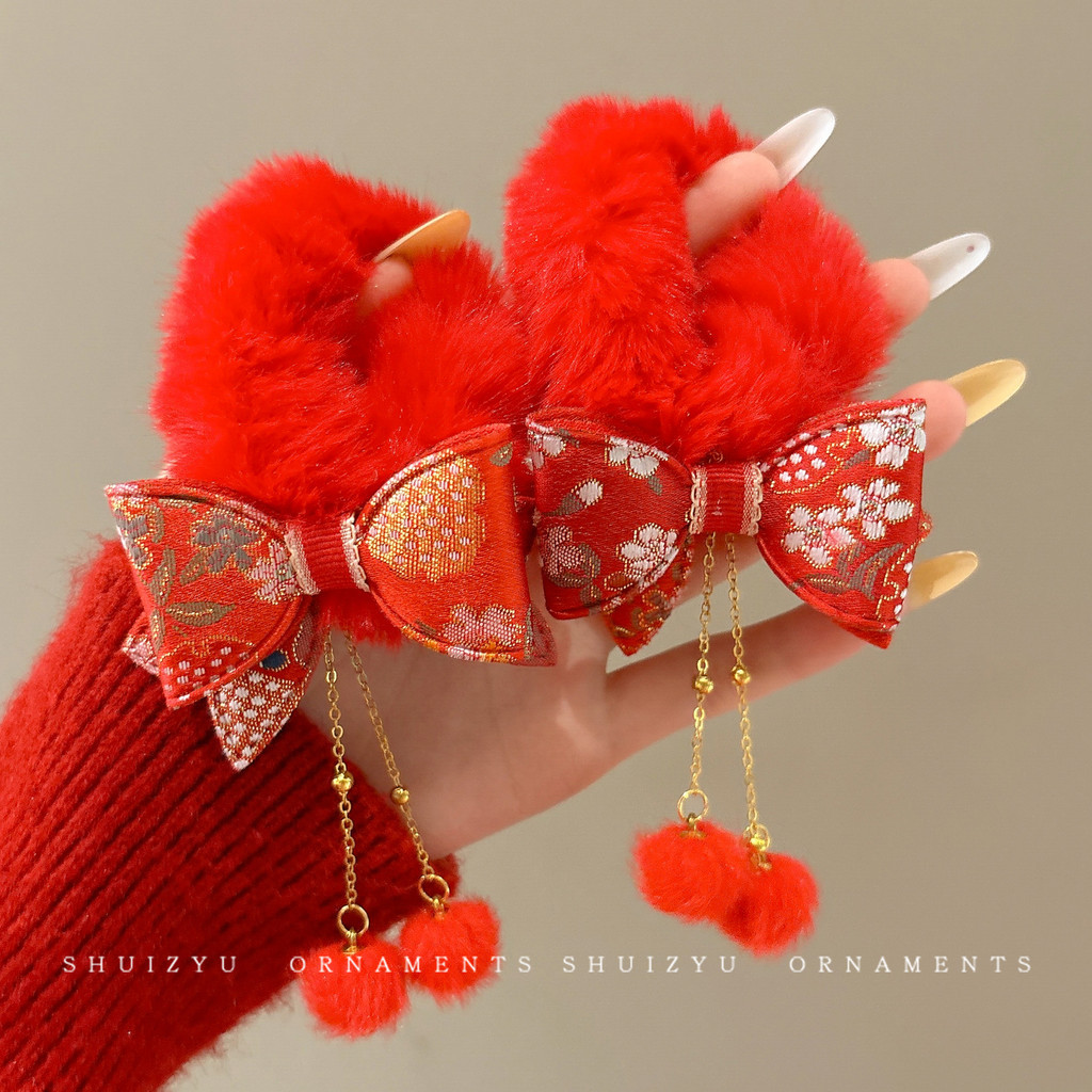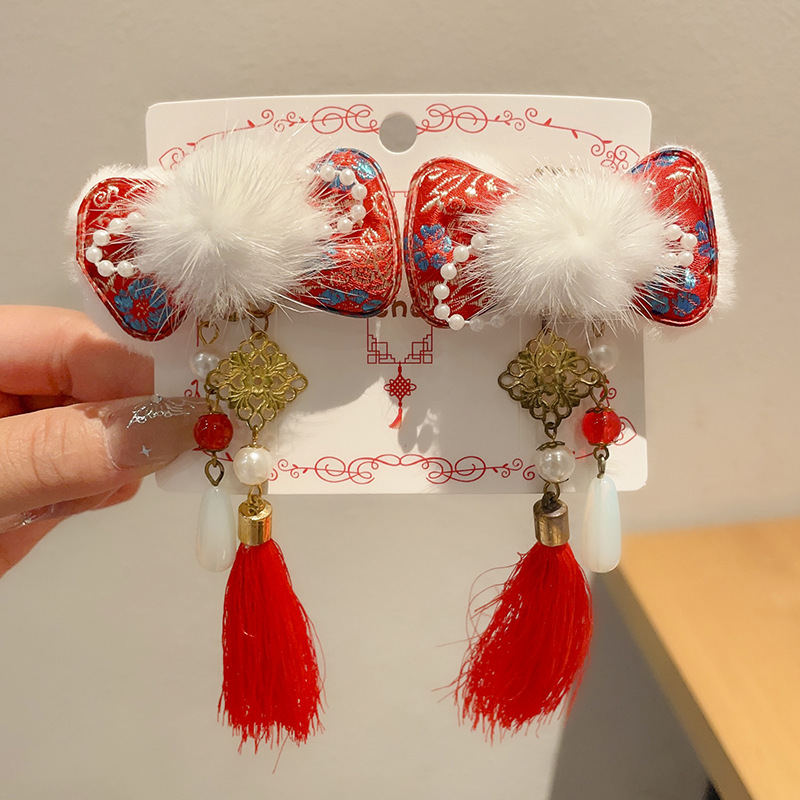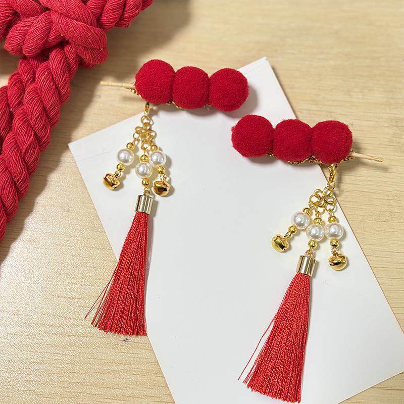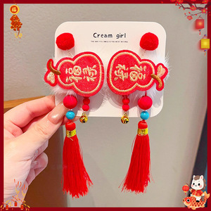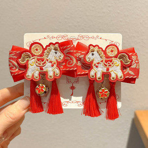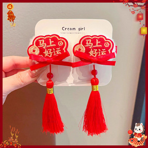 2026新年发夹头饰儿童中国风假发流苏发夹小女孩古风过年发饰头饰