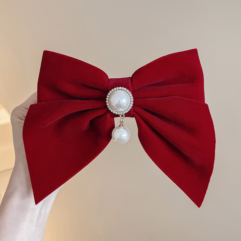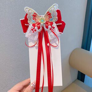 6#珍珠蝴蝶结中国结吊坠发夹一对装