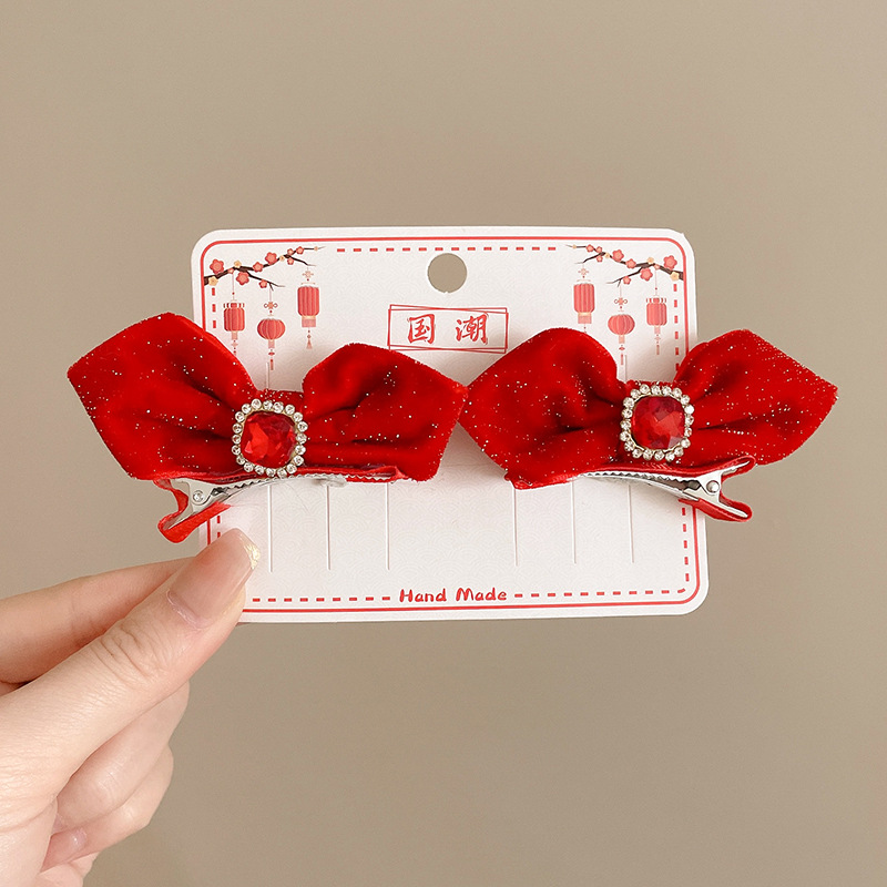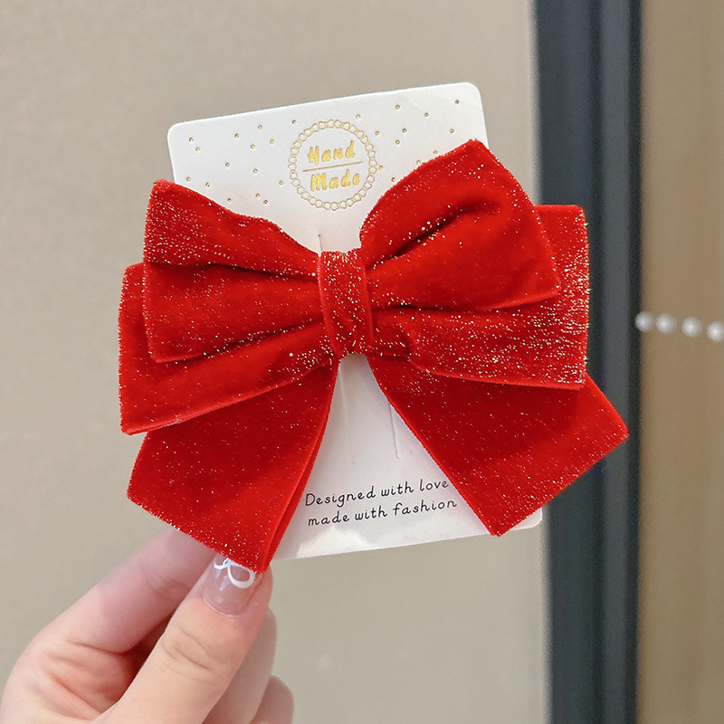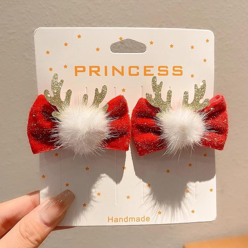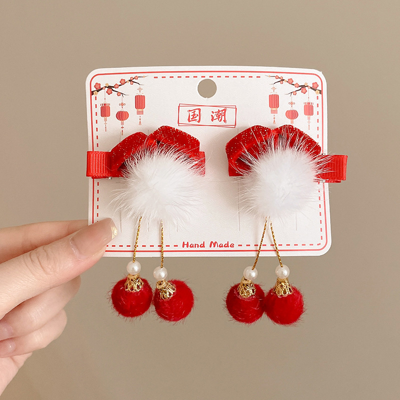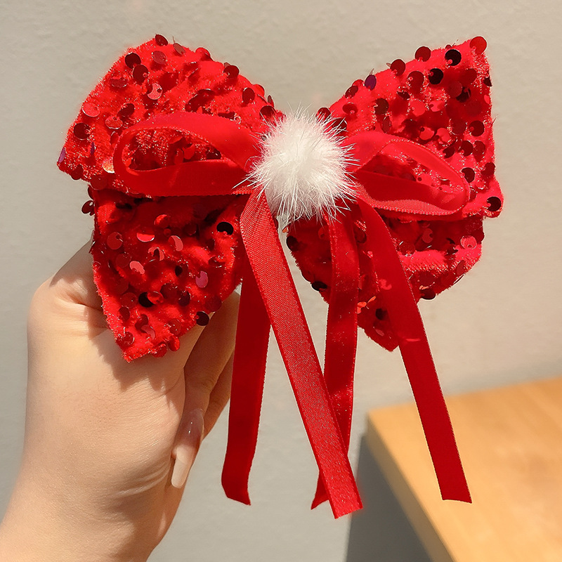 18#闪红白毛球蝴蝶结鸭嘴夹