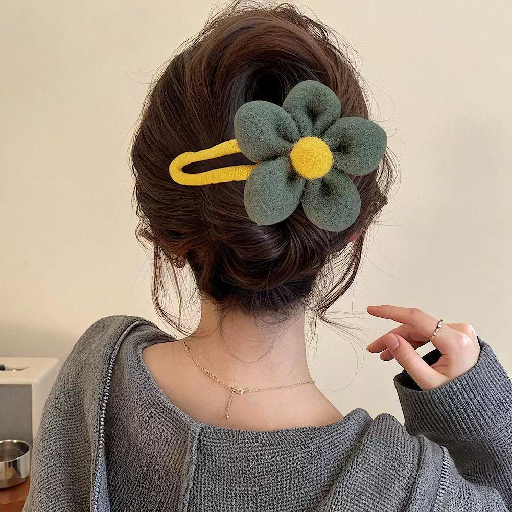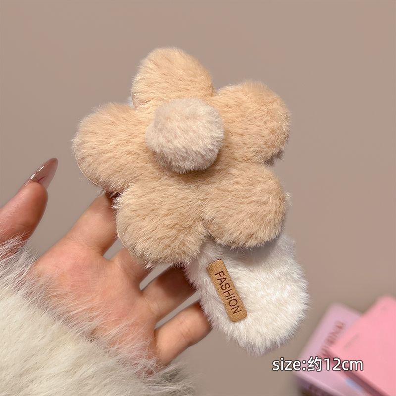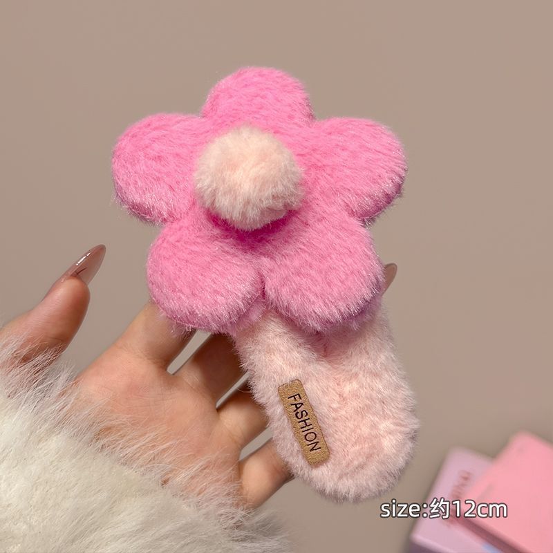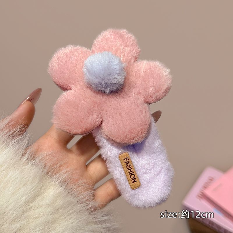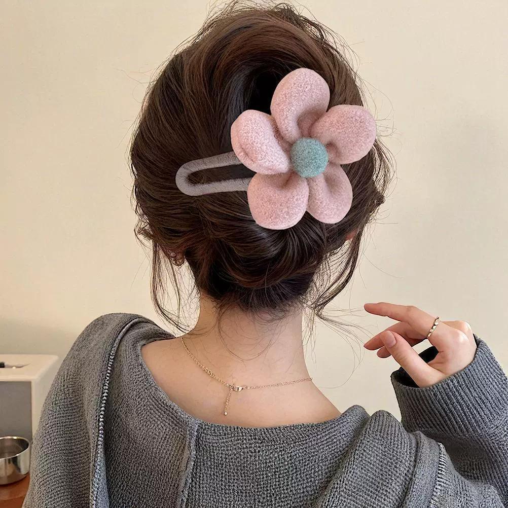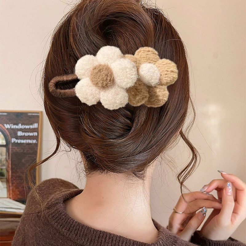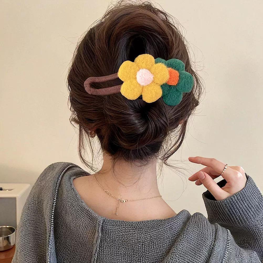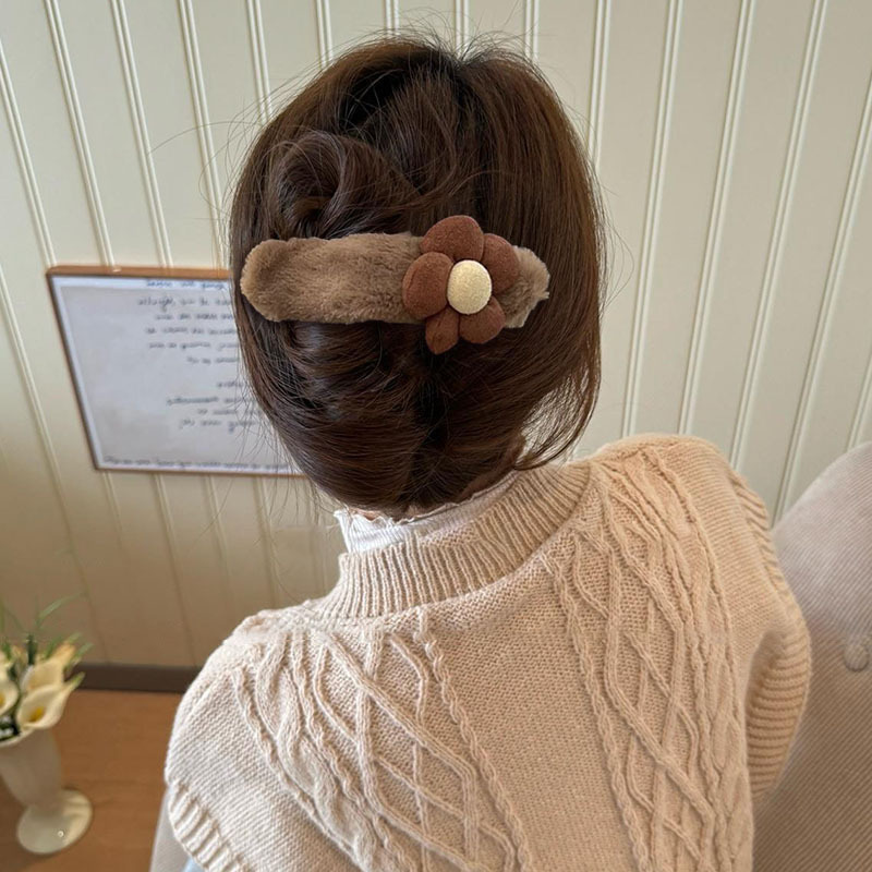 韩系百搭鸭嘴夹秋冬新款鸭嘴夹头饰后脑勺夹子发饰毛绒花朵发夹女