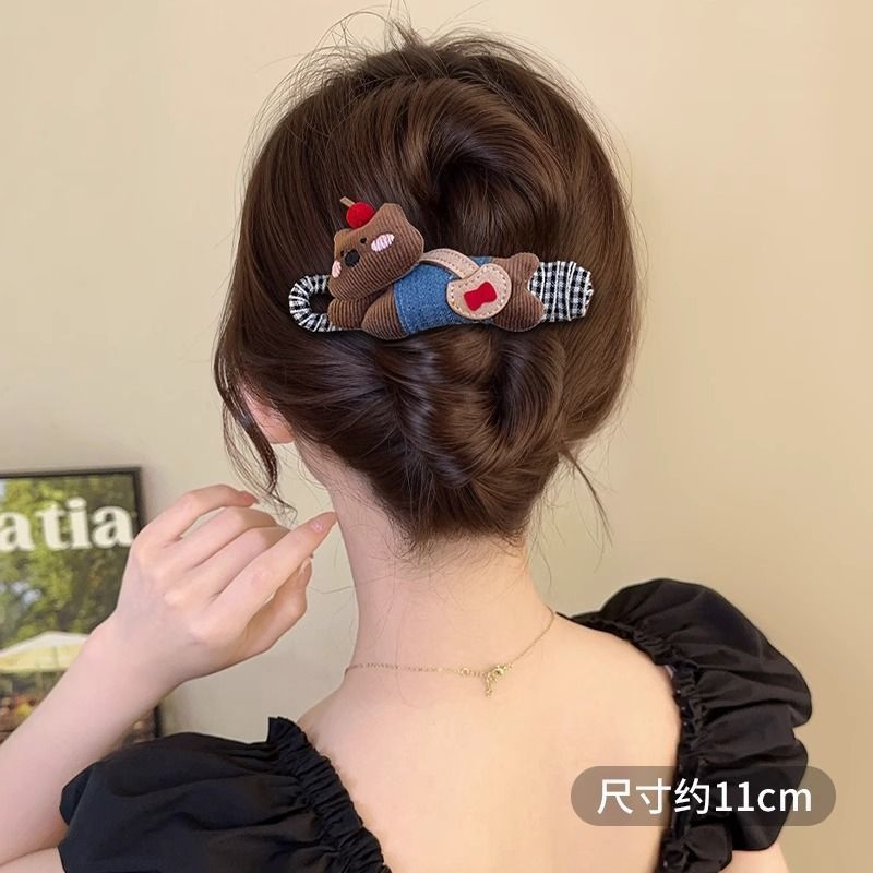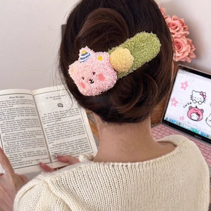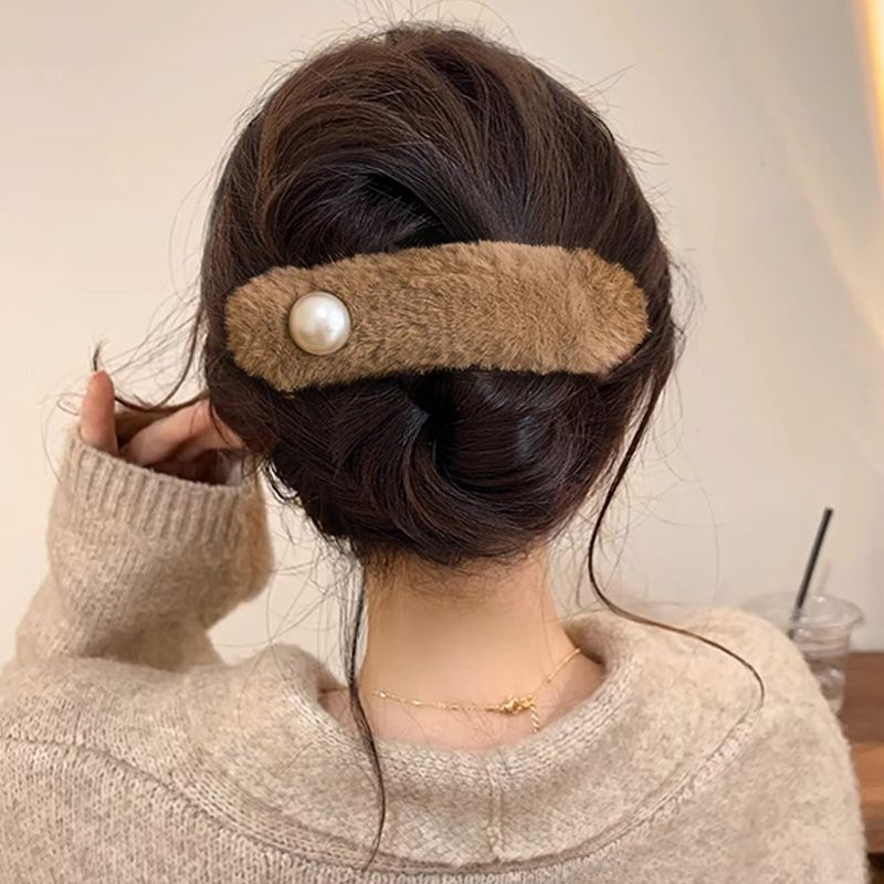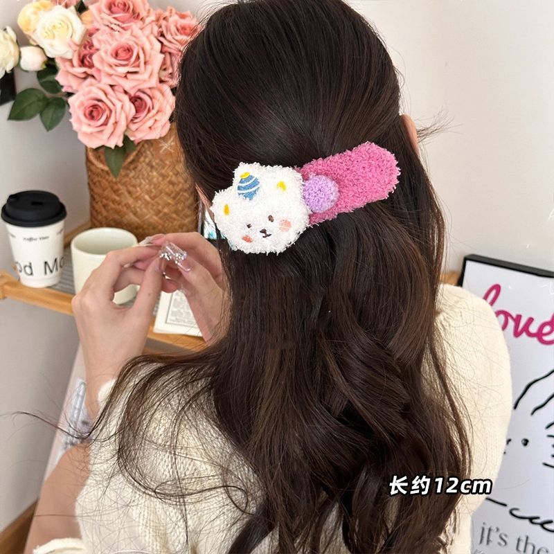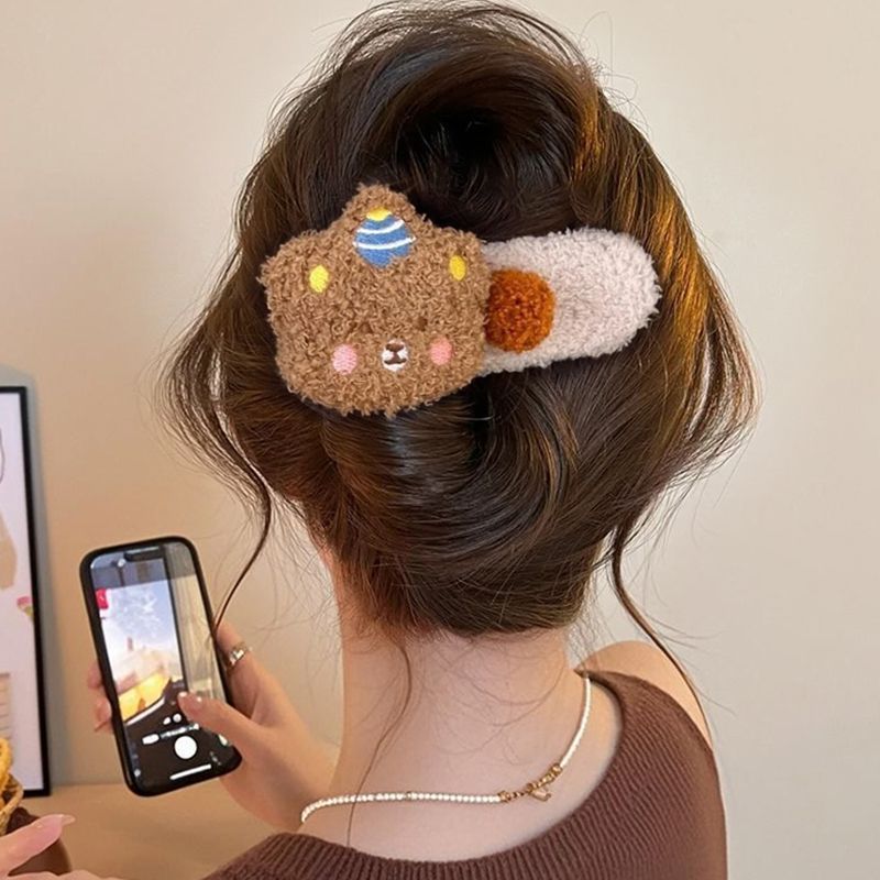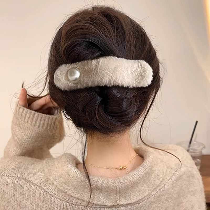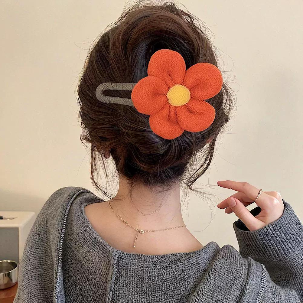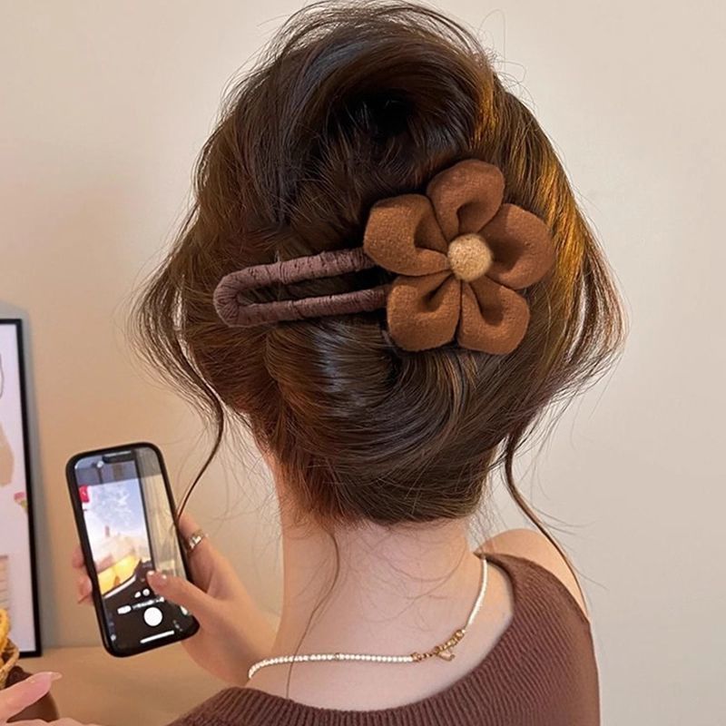 韩系百搭鸭嘴夹秋冬新款鸭嘴夹头饰后脑勺夹子发饰毛绒花朵发夹女