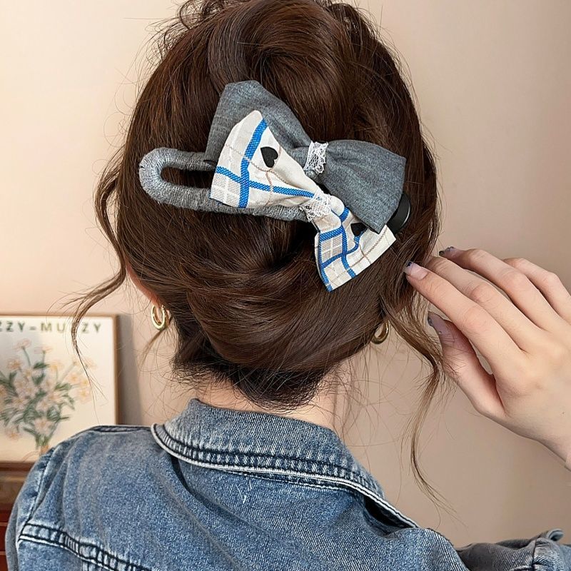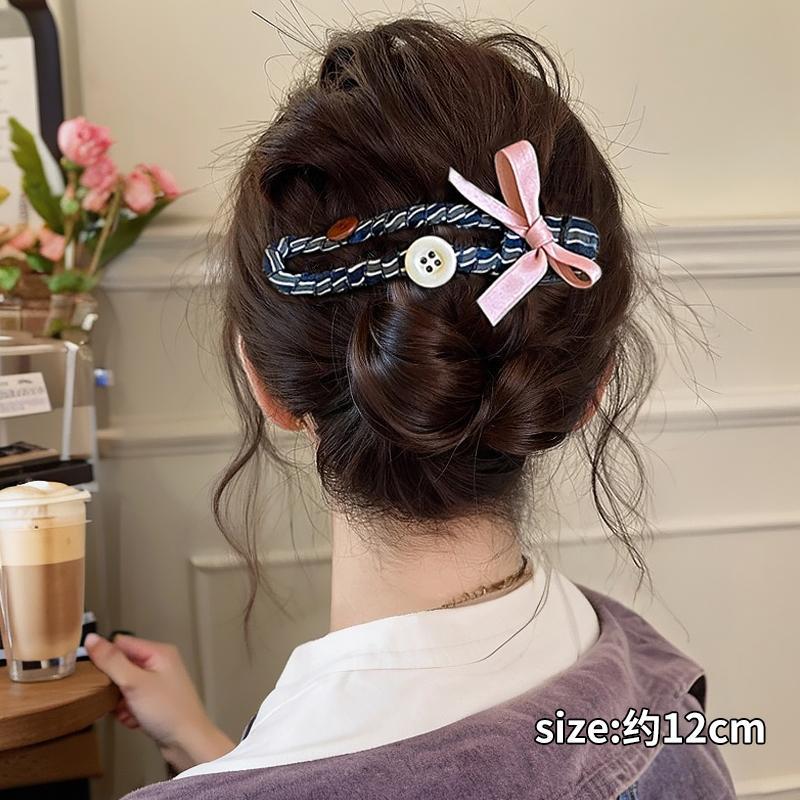 1#牛仔蓝+红条纹双蝴蝶结鸭嘴夹#约11.5cm