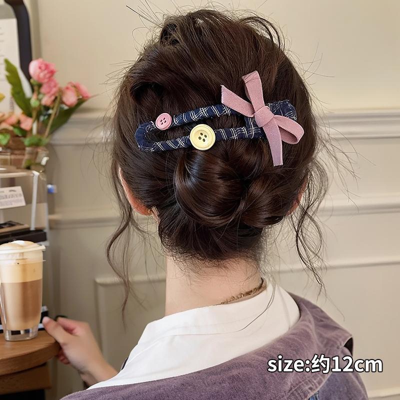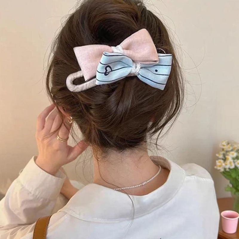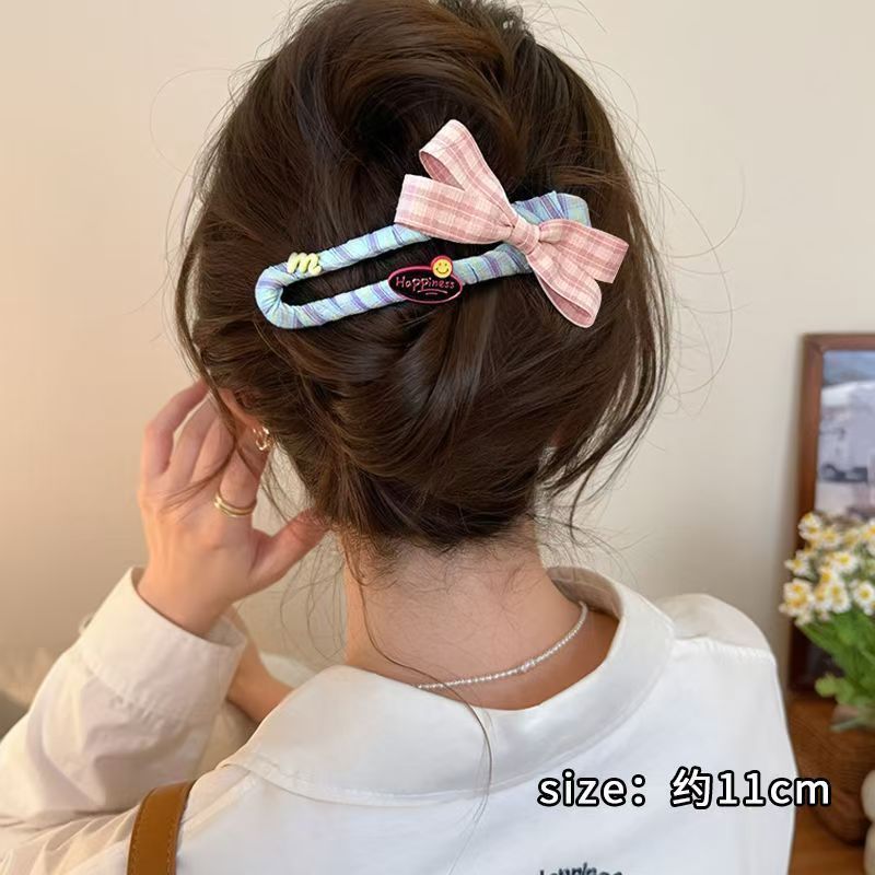 5#杏+蓝条纹双蝴蝶结鸭嘴夹