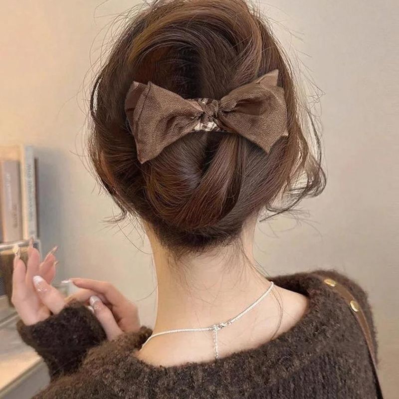 8#卡其+咖双蝴蝶结鸭嘴夹 (约9cm)