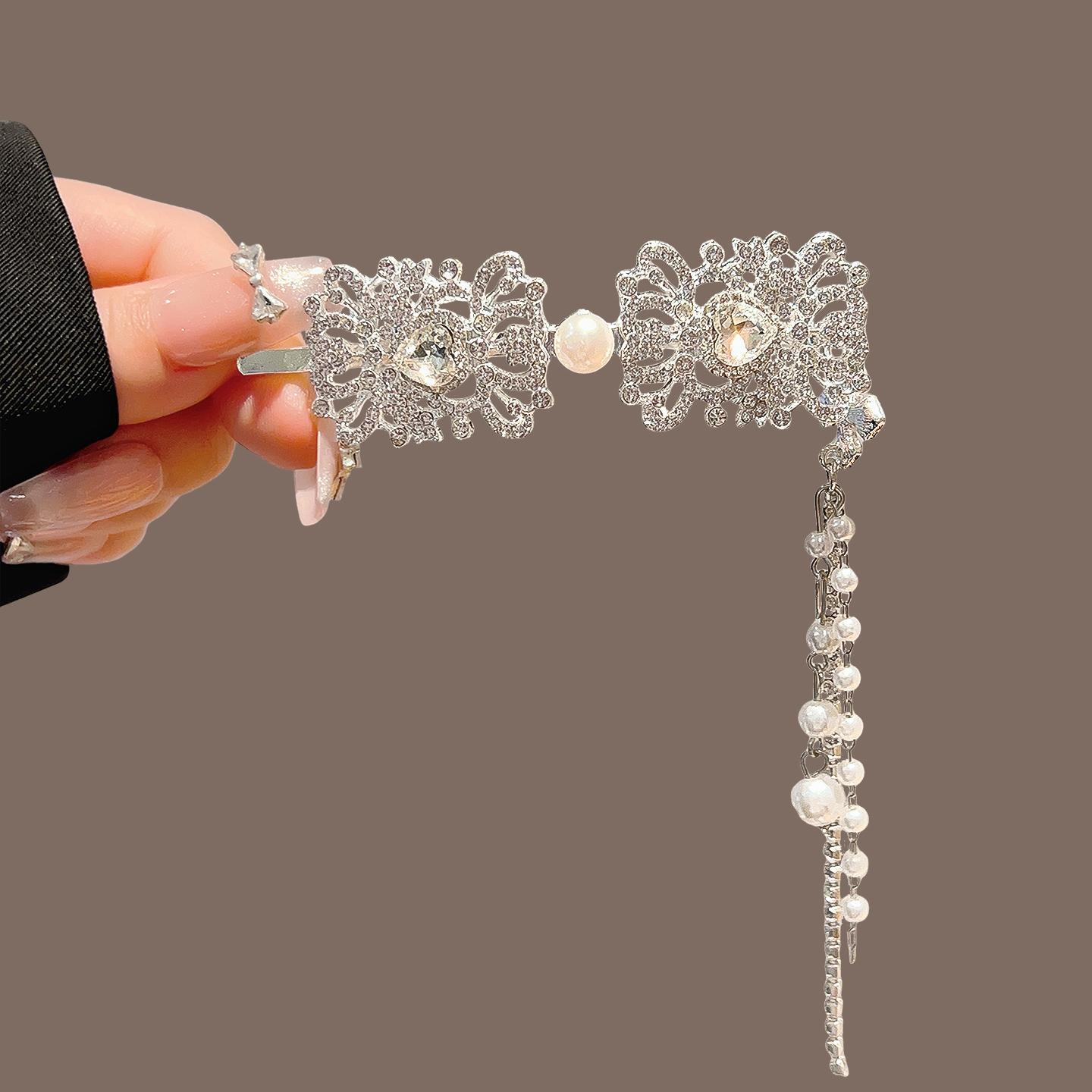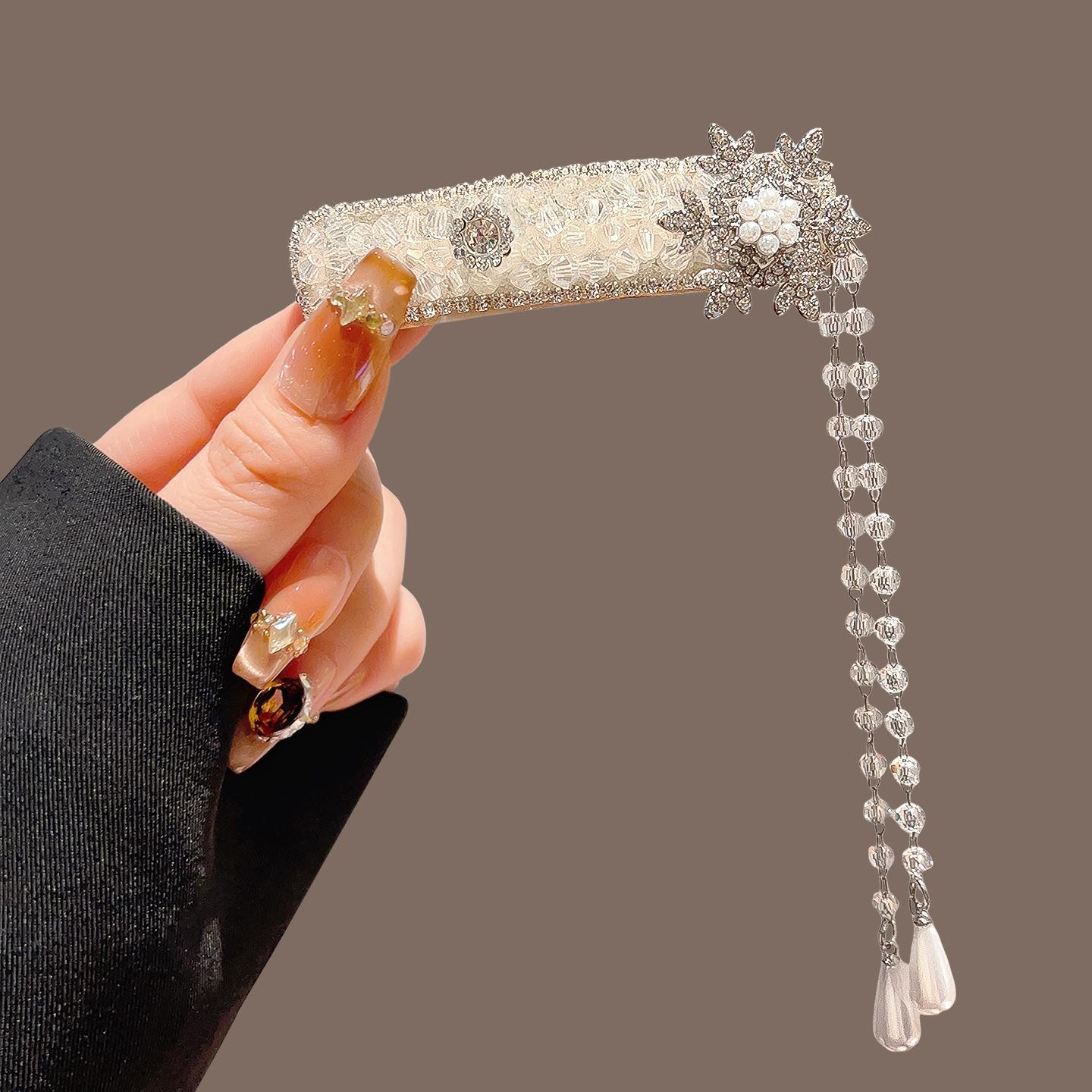 珍珠水晶流苏边夹