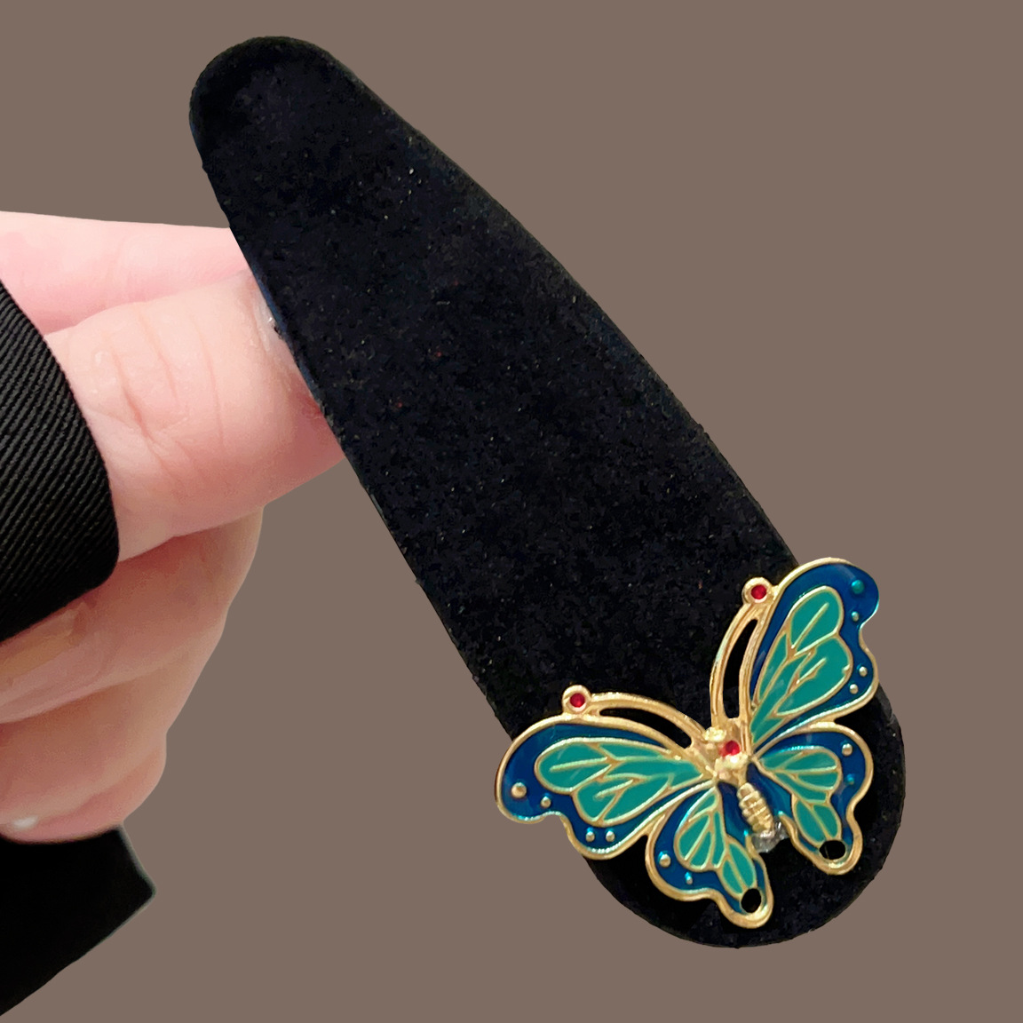 黑色丝绒滴油蝴蝶水滴BB夹