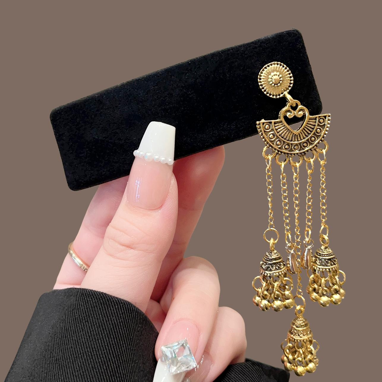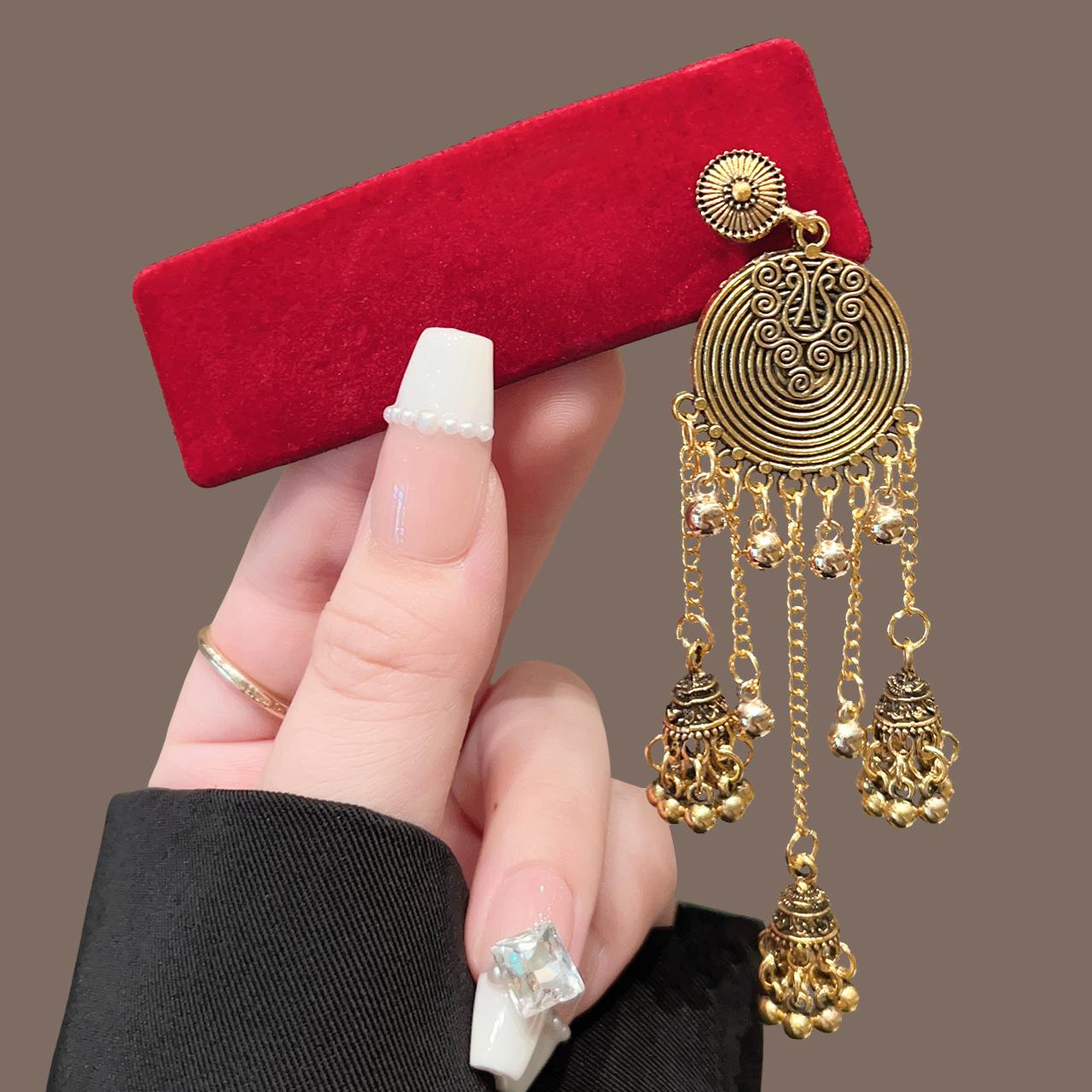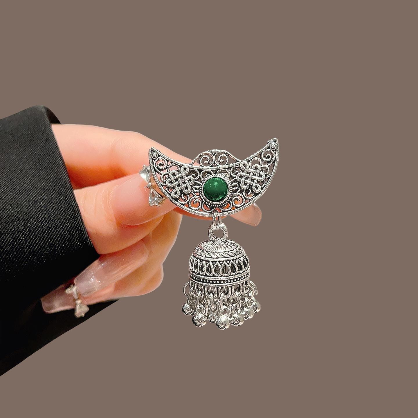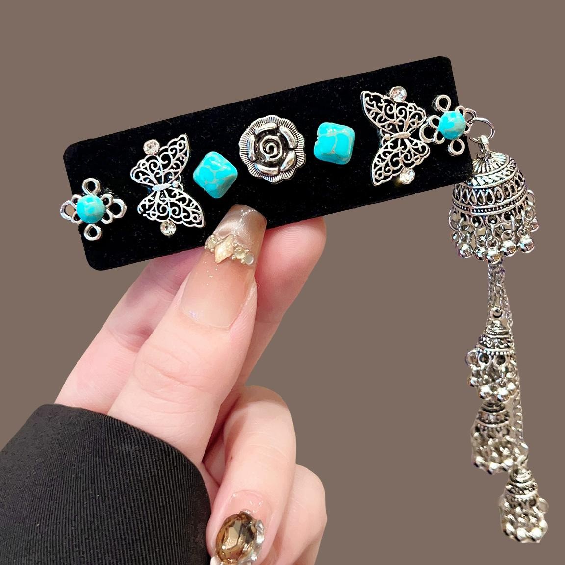 新中式绿松石铃铛流苏发夹女民族风侧边夹复古高级感精致发饰头饰
