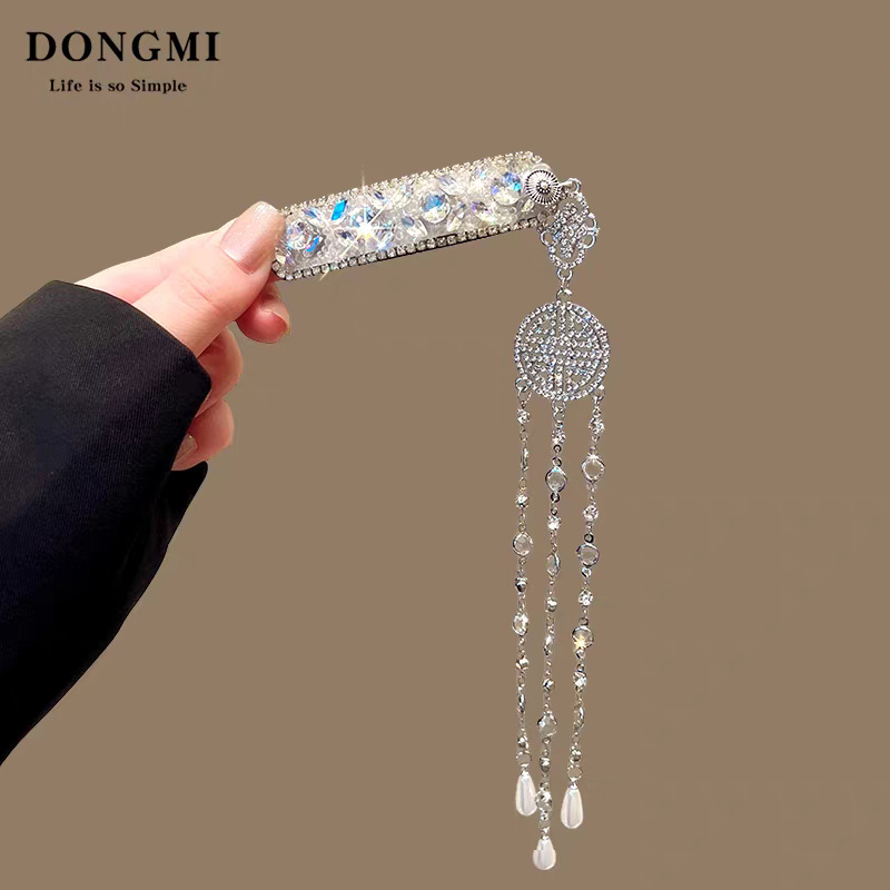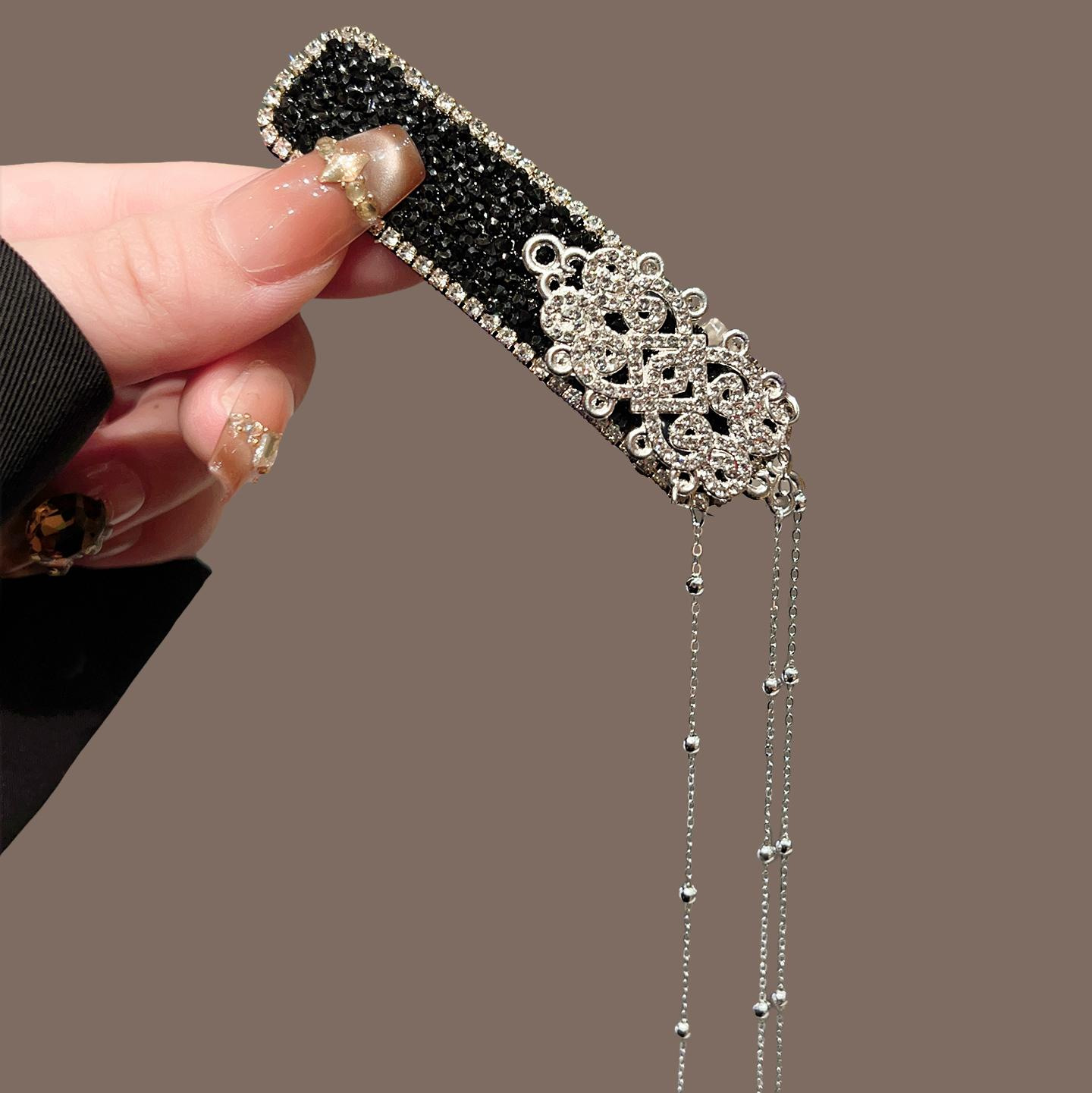 黑色满钻银花长流苏BB夹