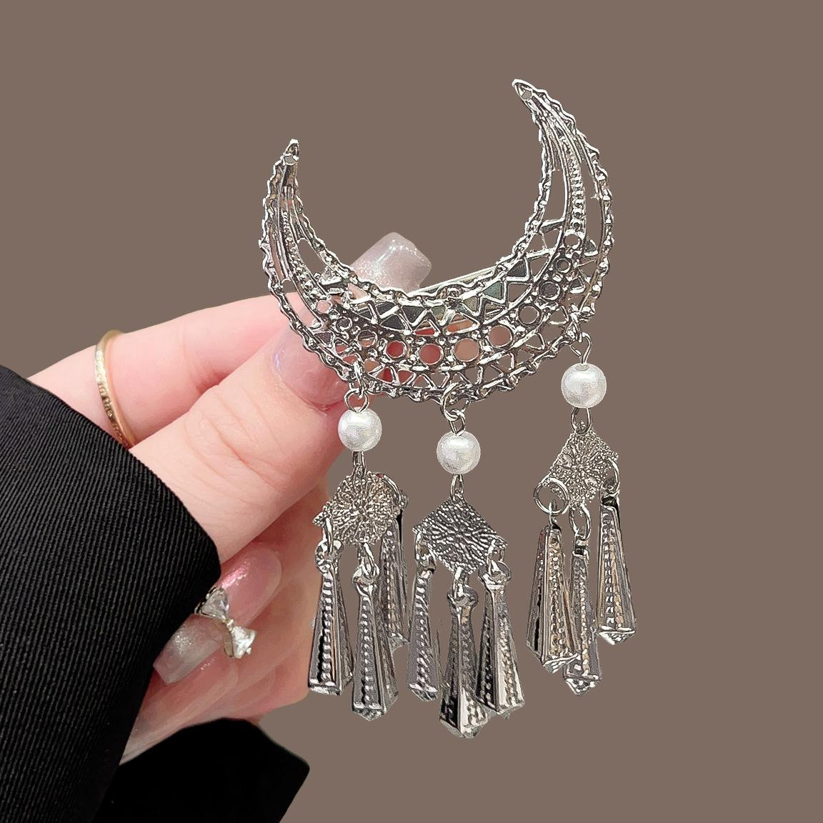银色月牙流苏鸭夹