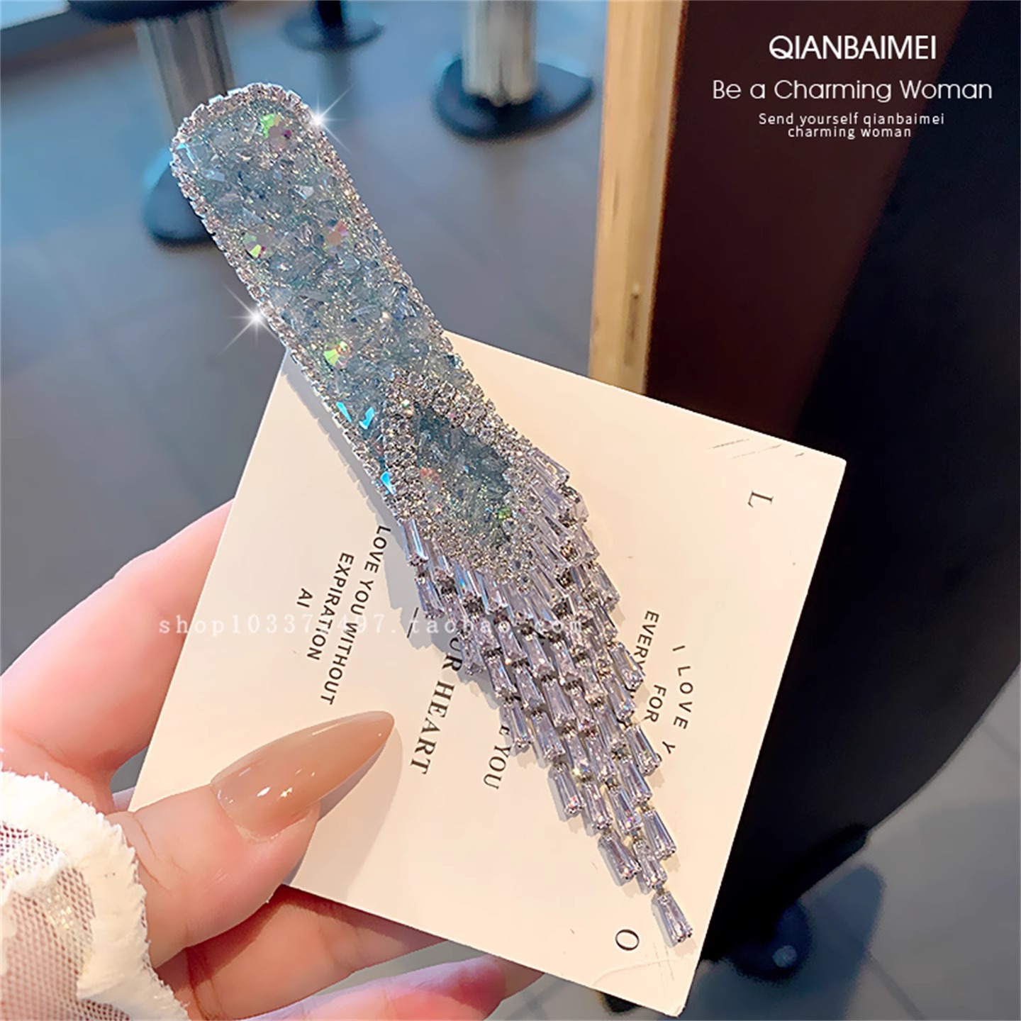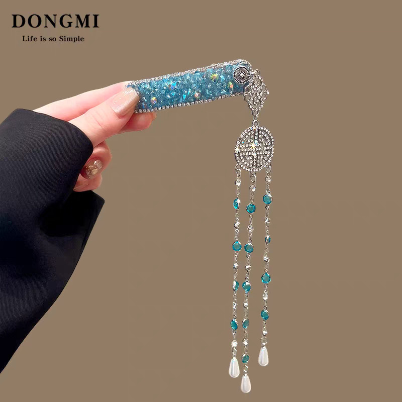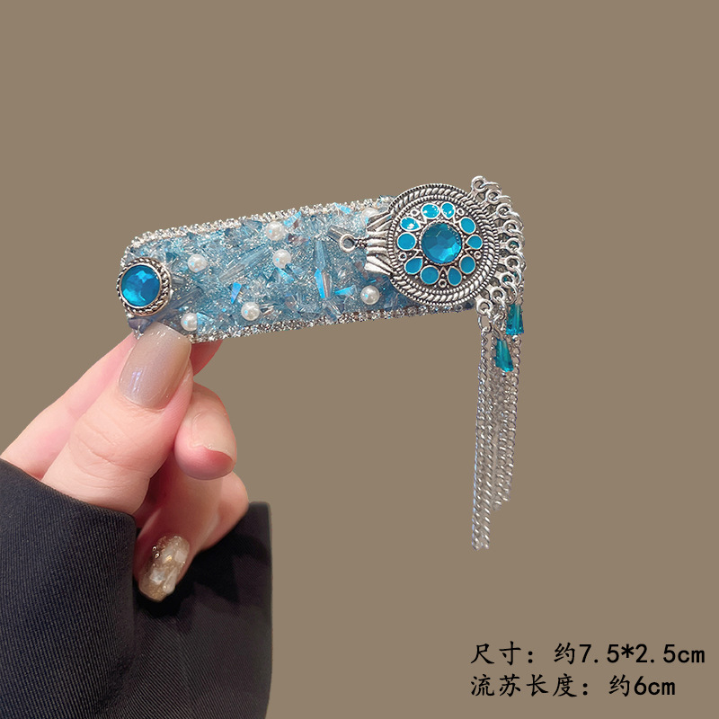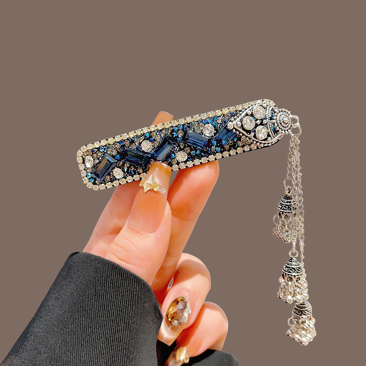 蓝色锆石水晶铃铛流苏BB夹