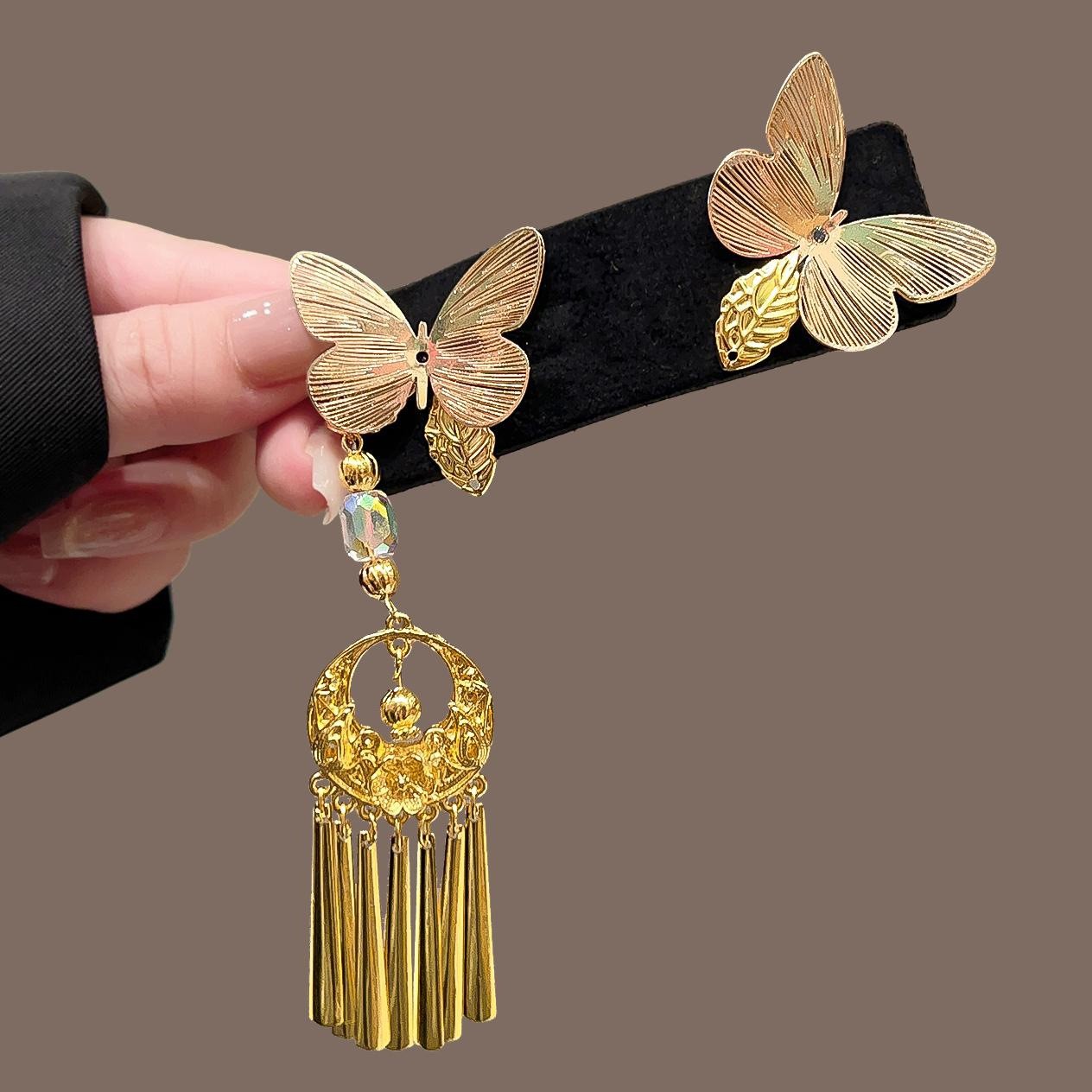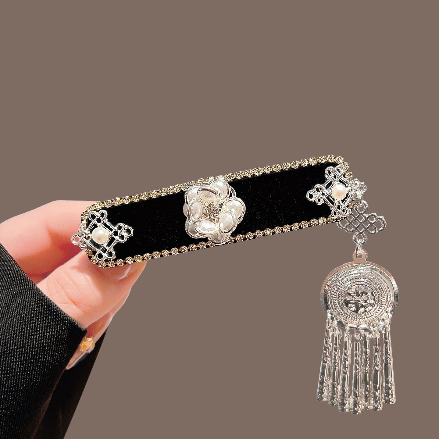 黑色丝绒银花蝴蝶流苏BB夹