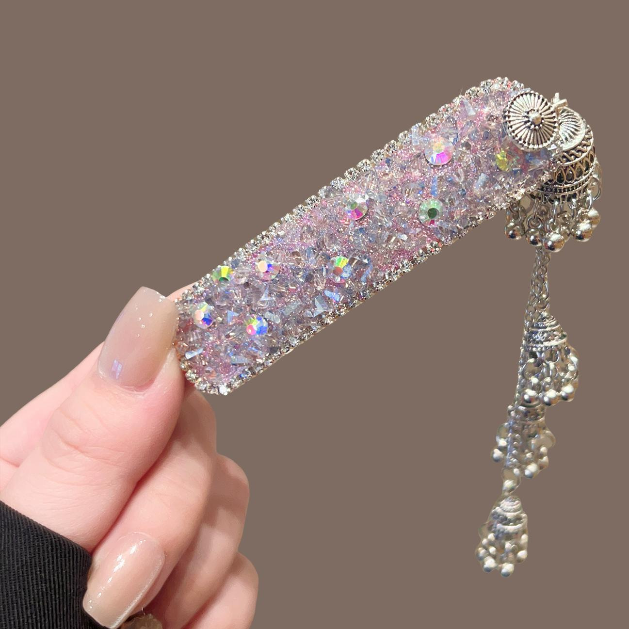 粉色碎钻铃铛流苏
