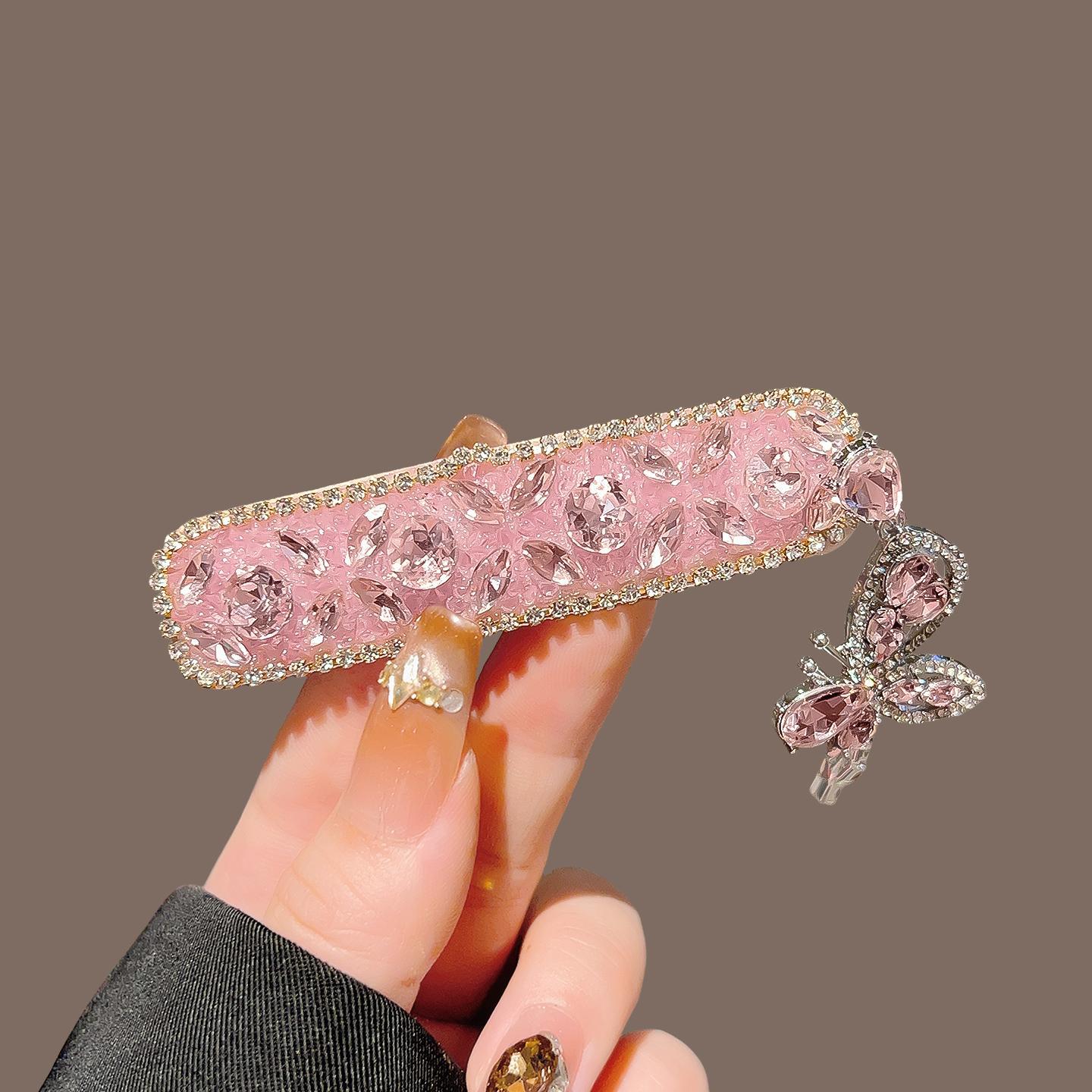 粉色水晶钻蝴蝶吊坠BB夹