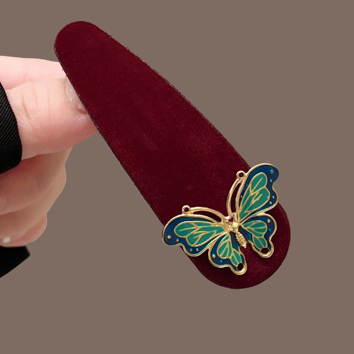红色丝绒滴油蝴蝶水滴BB夹