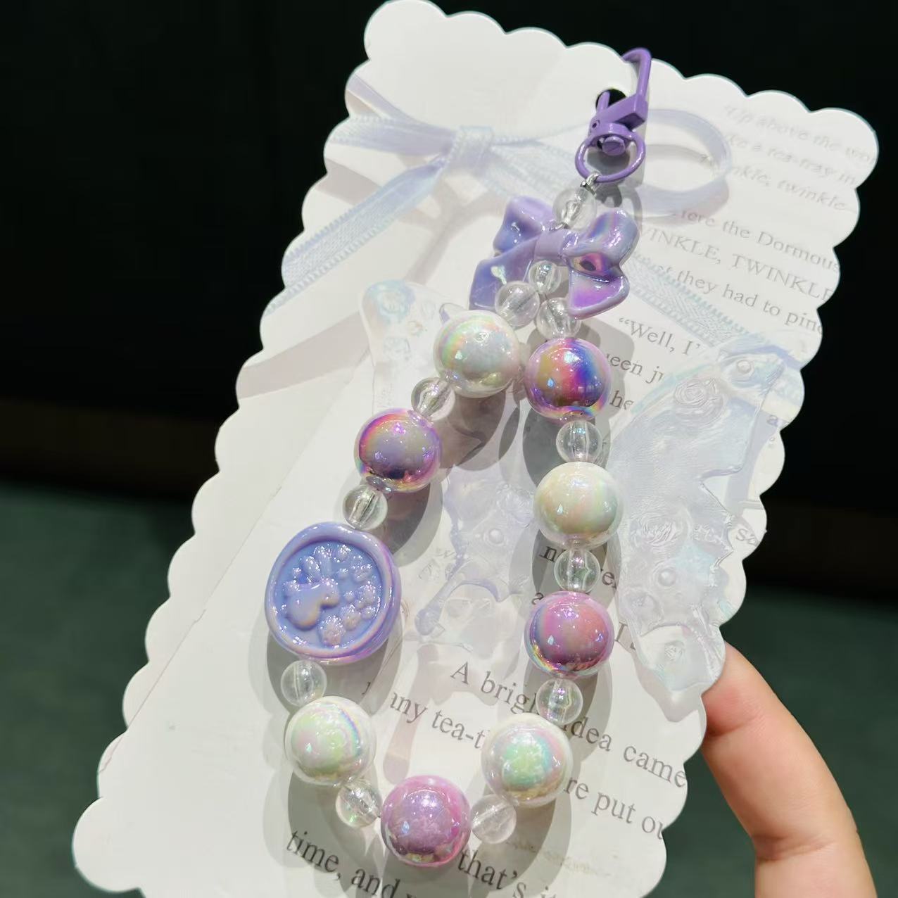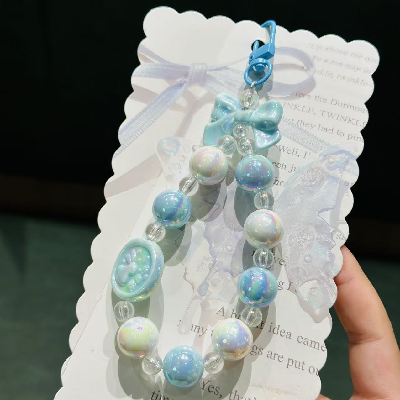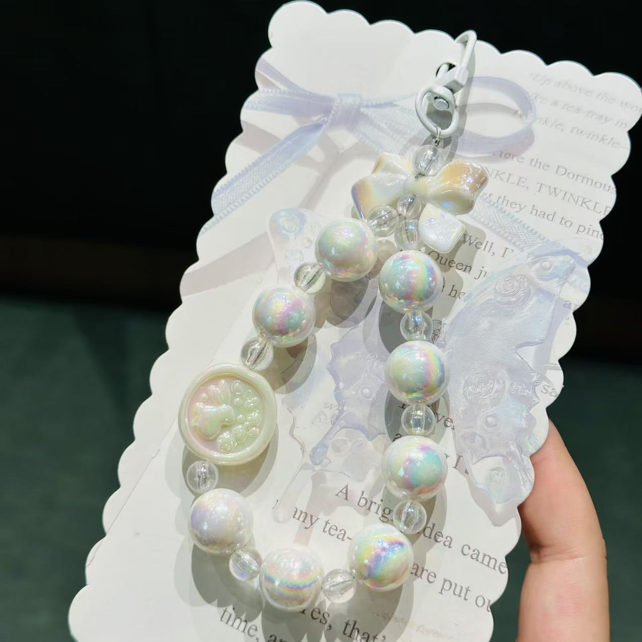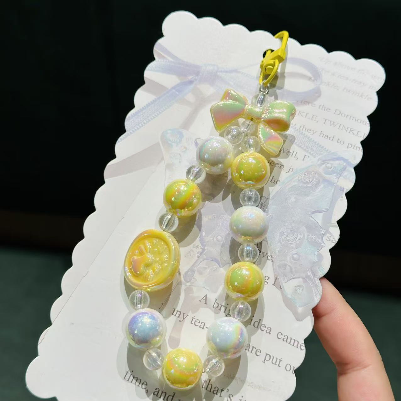 清新亚克力兔子钥匙扣挂件彩色串珠手机挂链背包挂饰装饰礼品批发