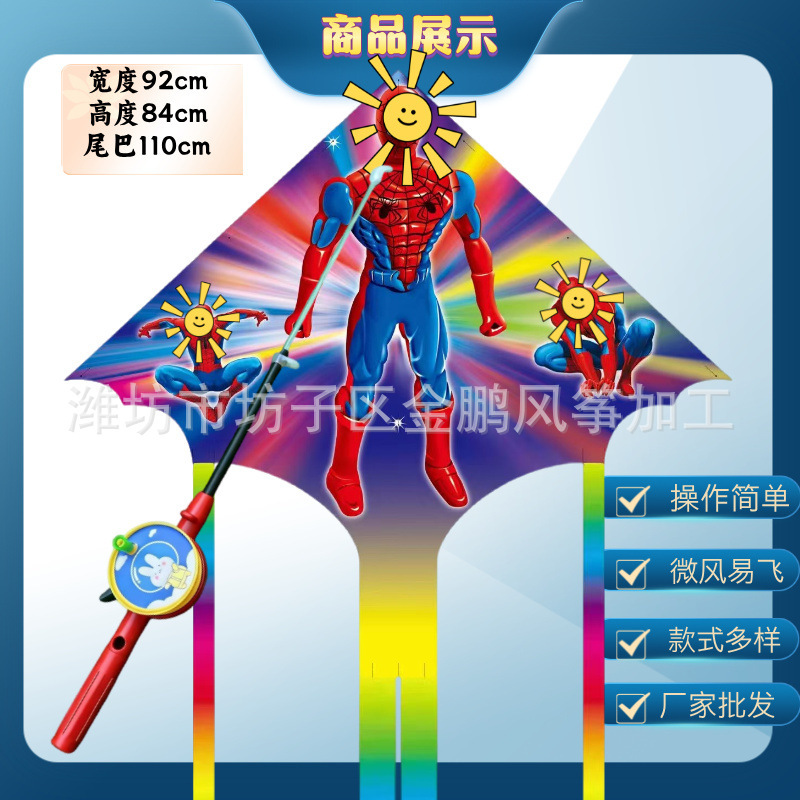 [95cm伞状塑料片]蜘蛛侠+马卡龙鱼竿