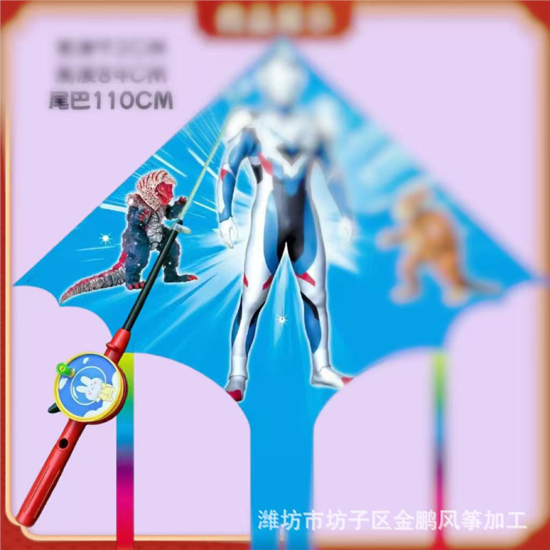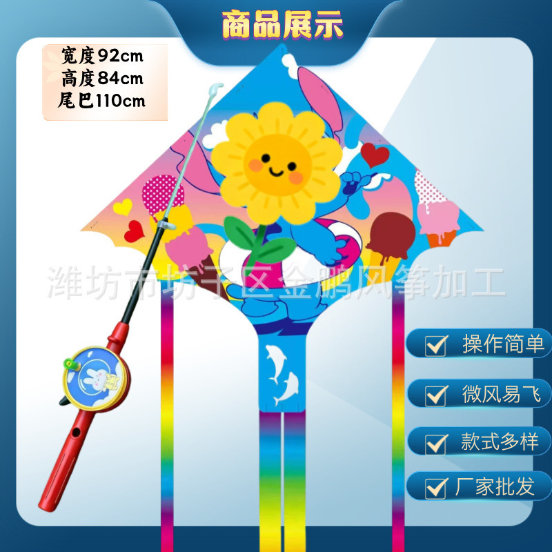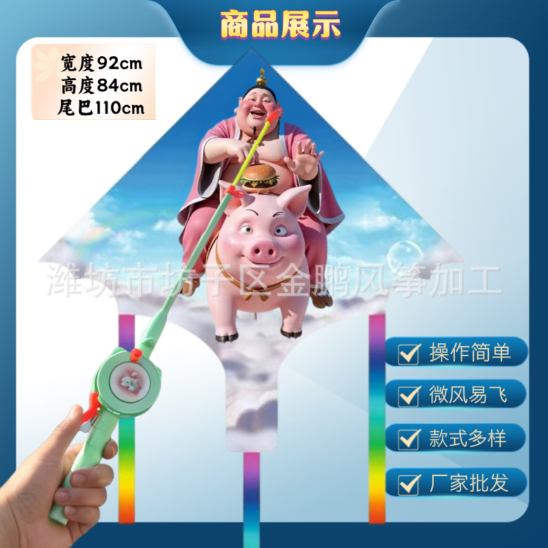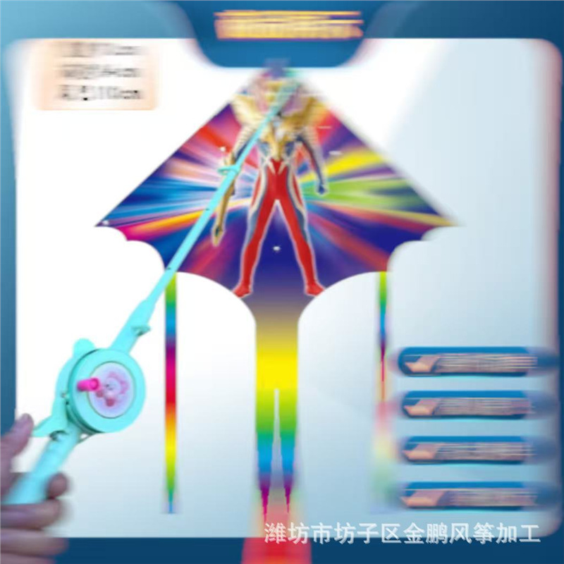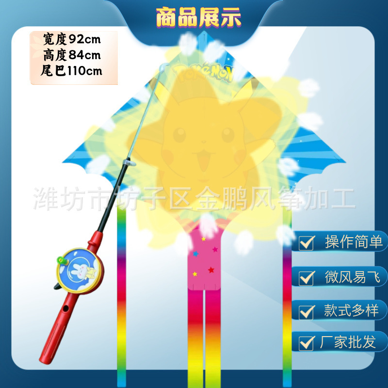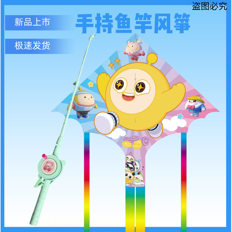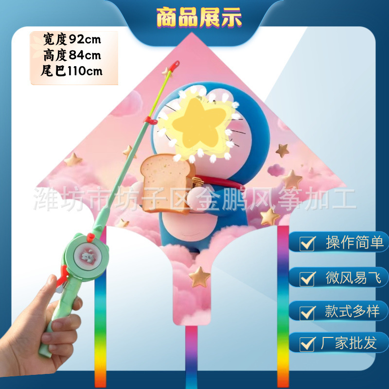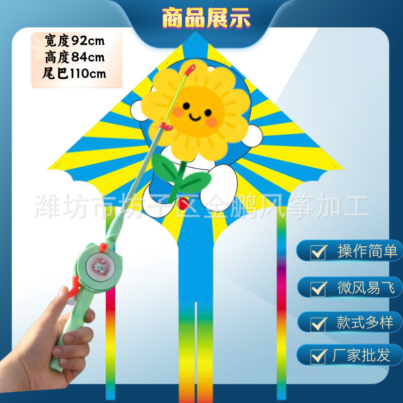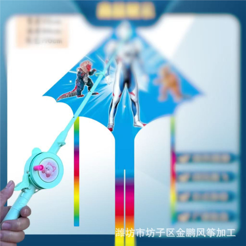 潍坊鱼竿风筝新款伞状儿童卡通手持塑料钓鱼竿风筝微风易飞带线