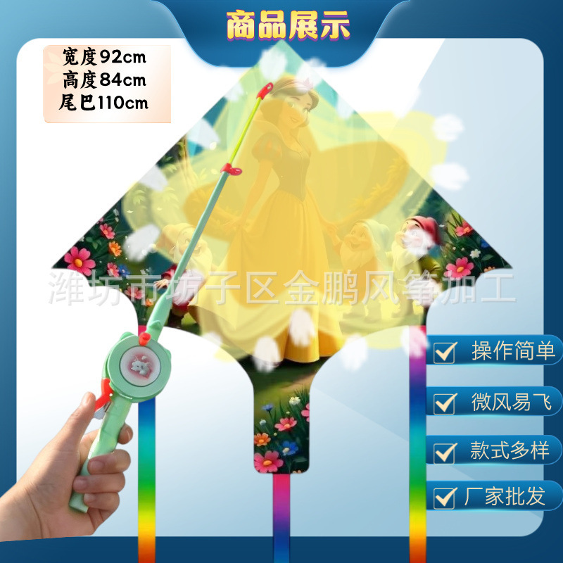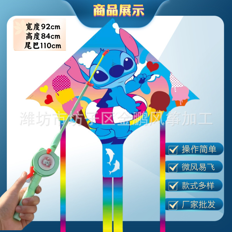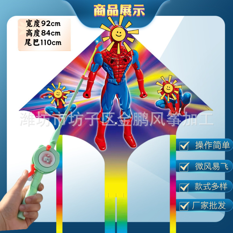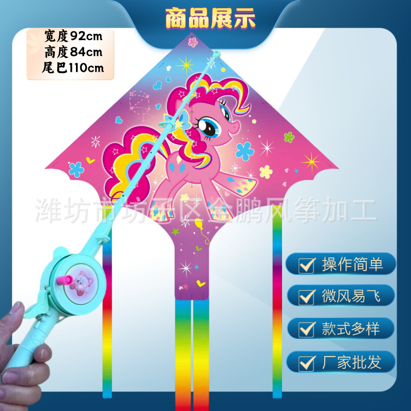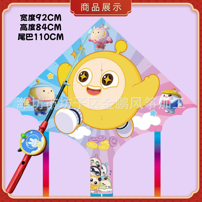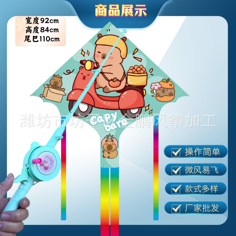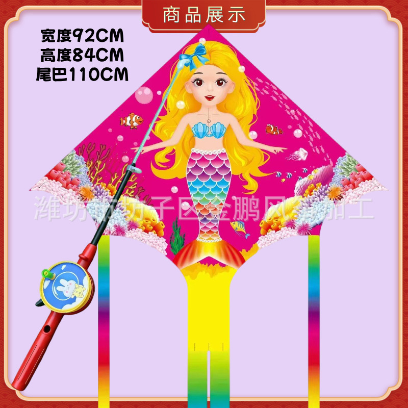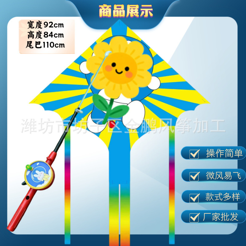 潍坊鱼竿风筝新款伞状儿童卡通手持塑料钓鱼竿风筝微风易飞带线
