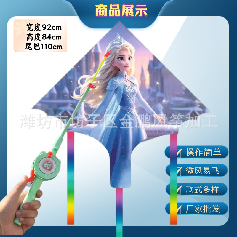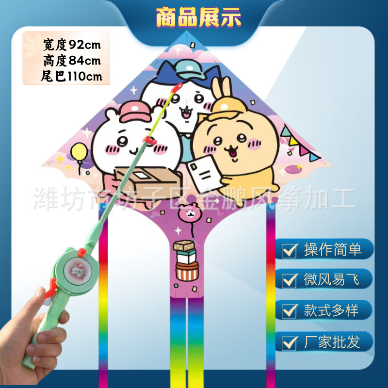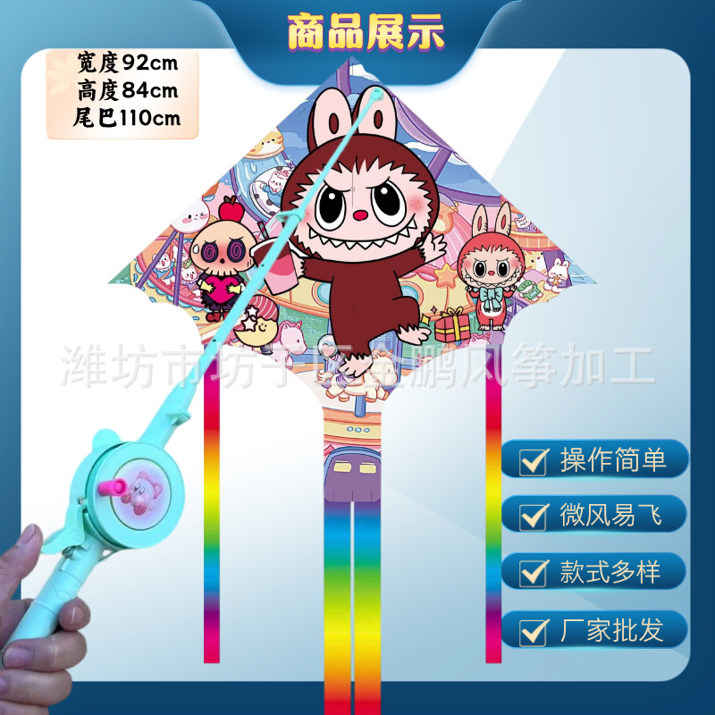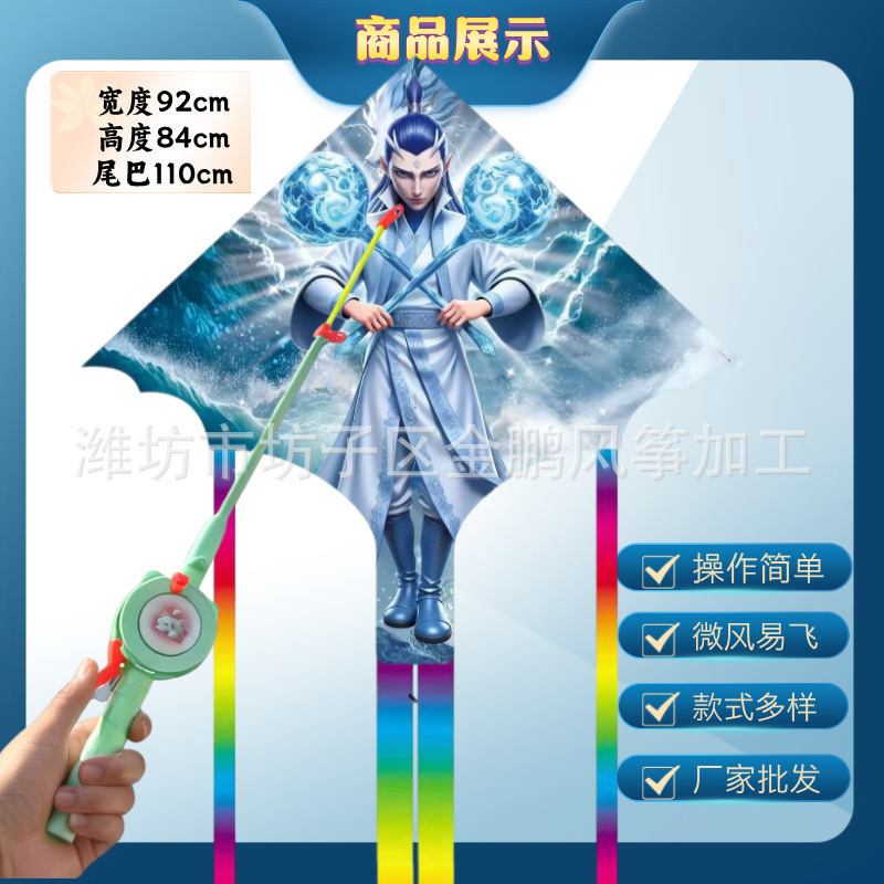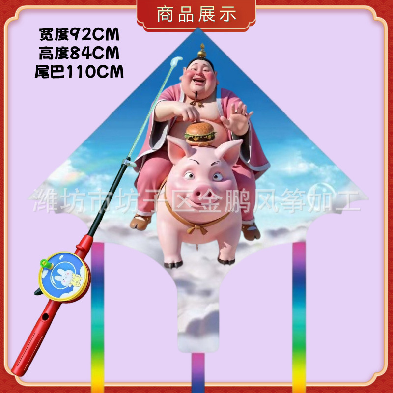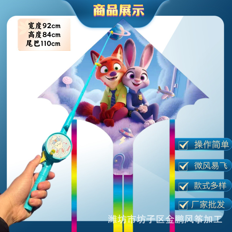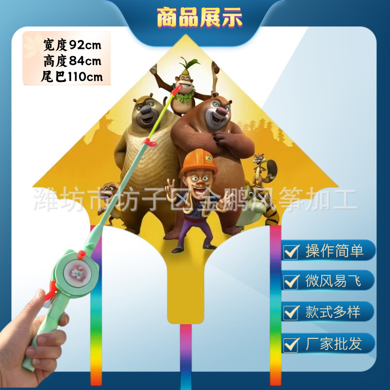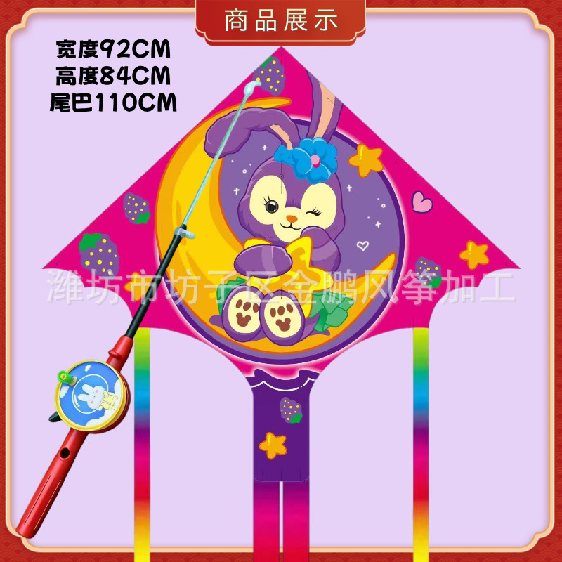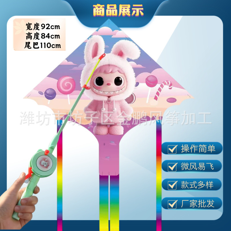 潍坊鱼竿风筝新款伞状儿童卡通手持塑料钓鱼竿风筝微风易飞带线