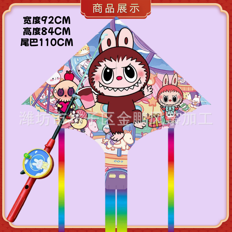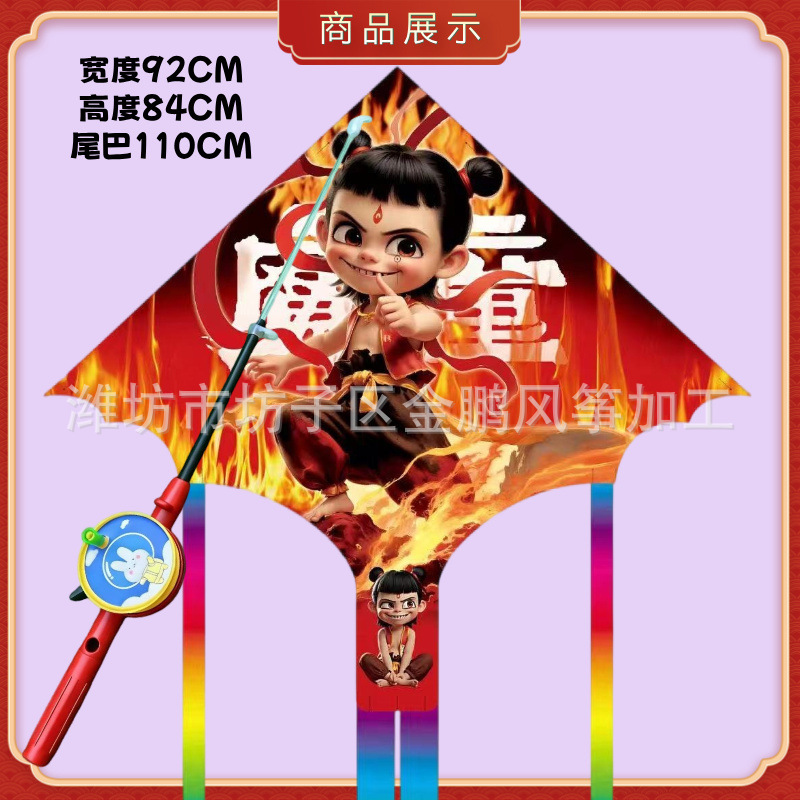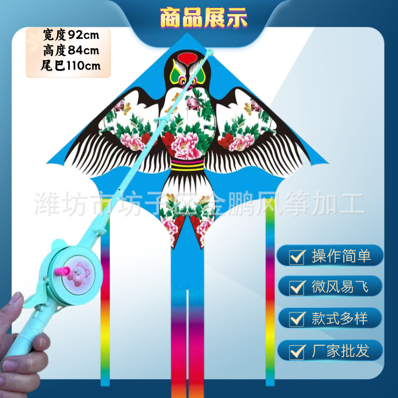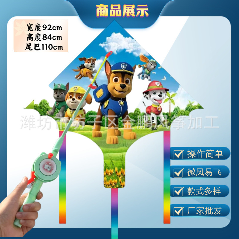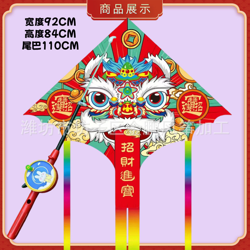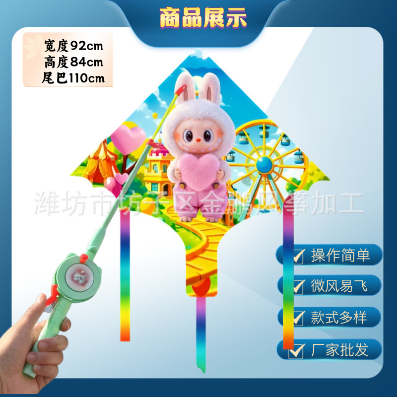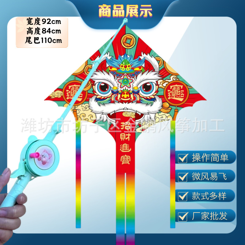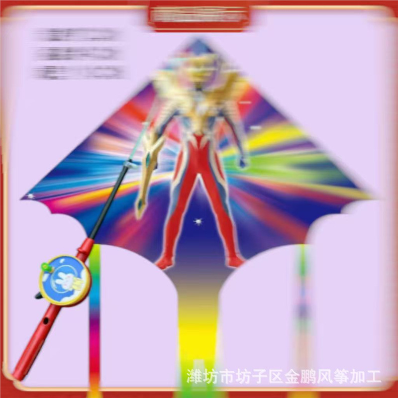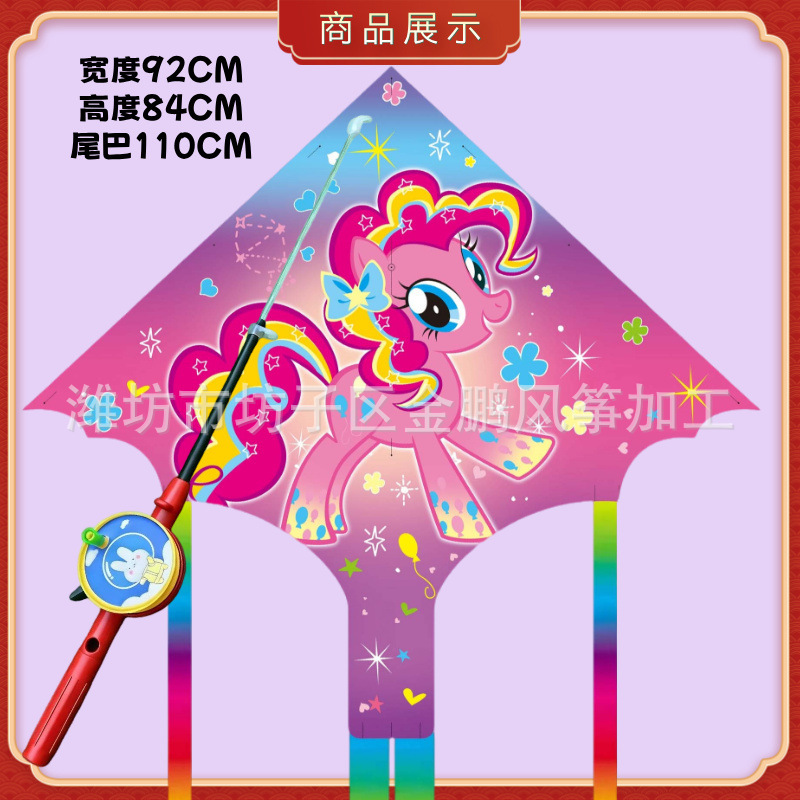 潍坊鱼竿风筝新款伞状儿童卡通手持塑料钓鱼竿风筝微风易飞带线