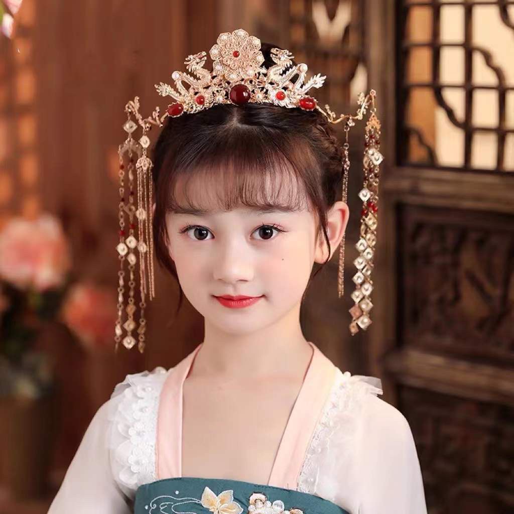 厂家直销儿童汉服元素头饰古风唐风发冠流苏仙气发饰演出古装发饰