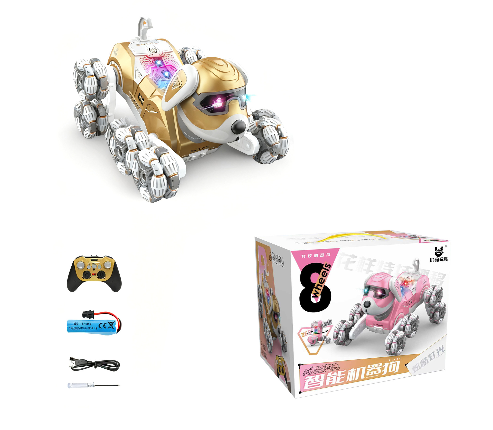 遥控探月狗八轮特技漂移狗智能机器狗黑科技灯光儿童生日礼物玩具