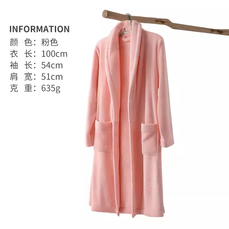 洁丽雅平纹浴袍吸水加厚珊瑚绒浴衣男女成人家用情侣保暖家居服