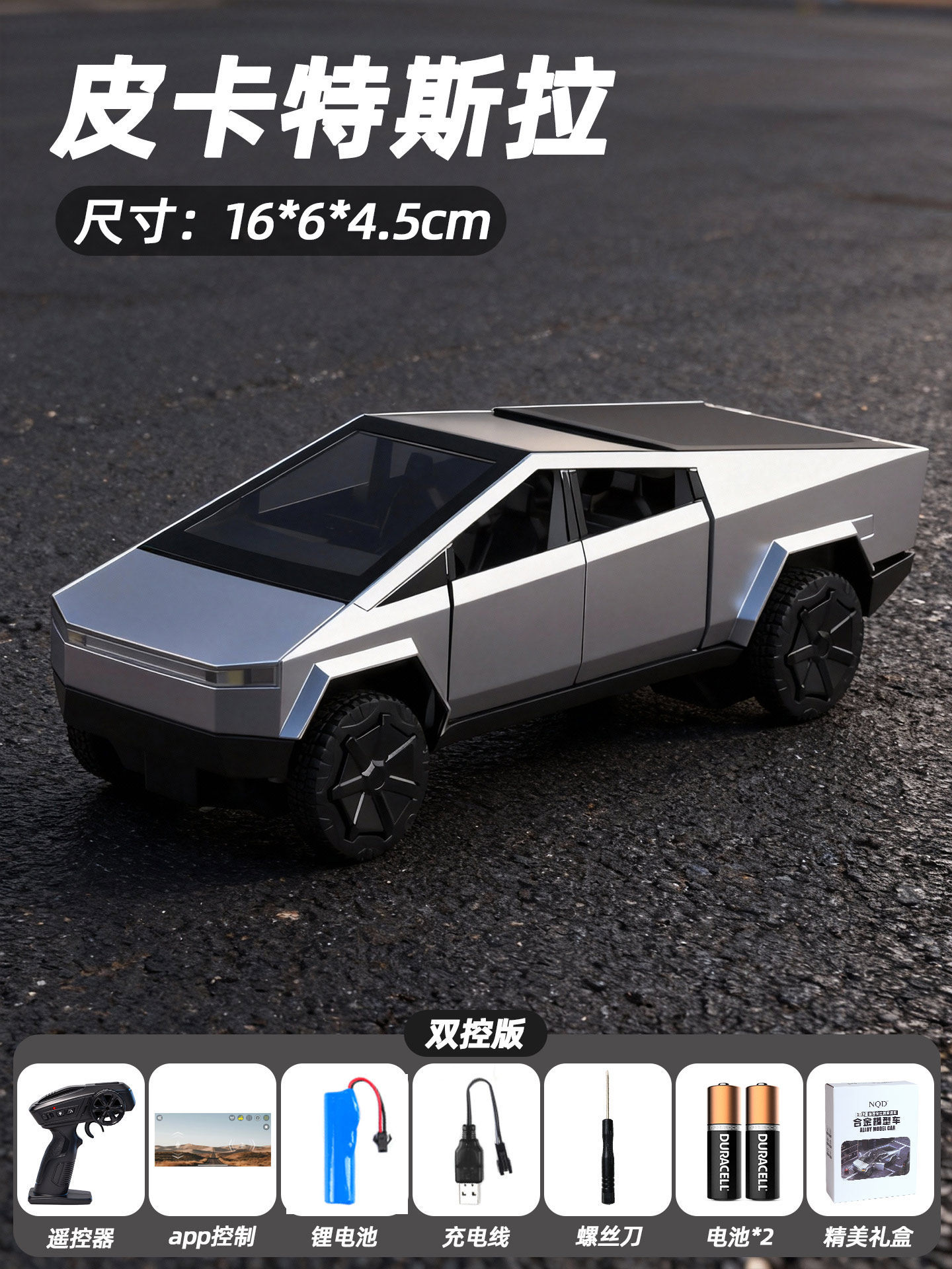 特斯拉赛博皮卡儿童桌面四驱越野车玩具1:32合金遥控车男女孩礼物