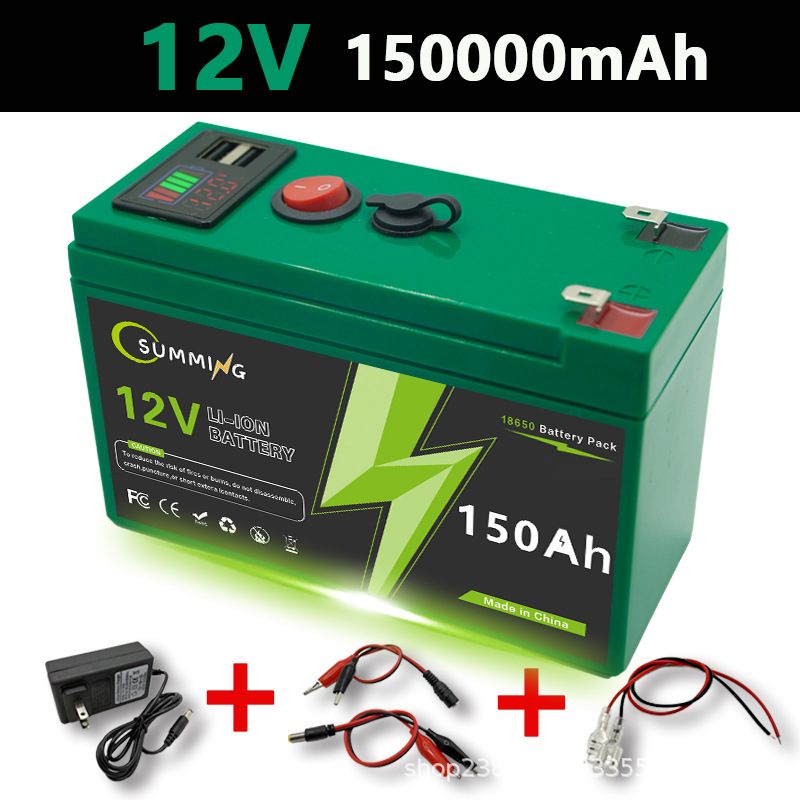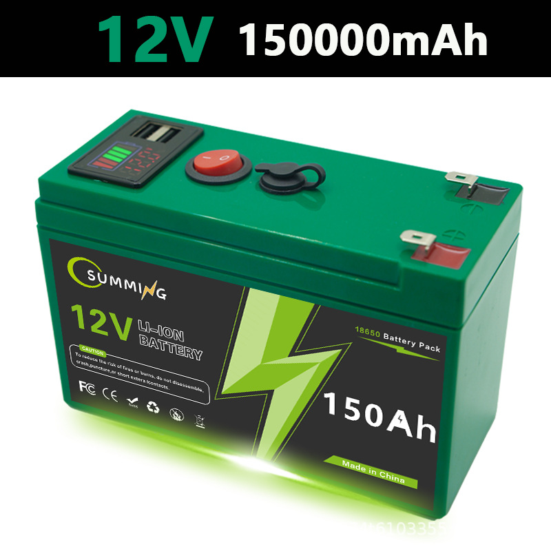 12V150Ah可充电电池带USB电源显示端口多用途备用代发锂电池