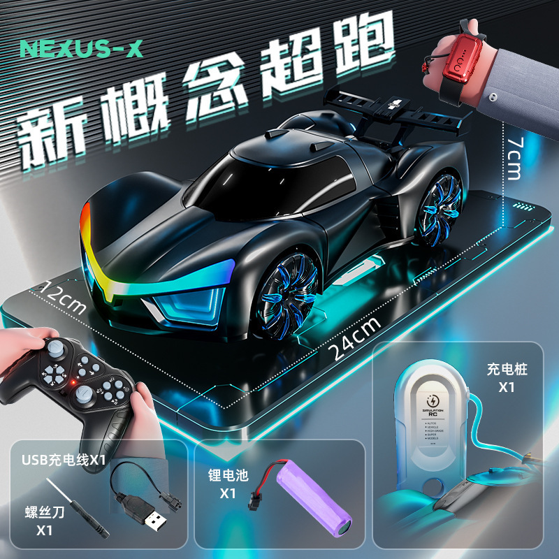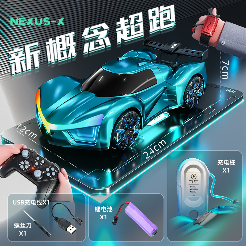 跨境2.4G遥控概念车手势感应双喷雾特技概念遥控车音乐科幻玩具车