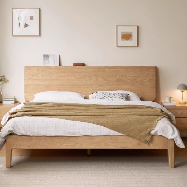 实木床简约橡木双人床北欧家用高床头原木床主卧斜靠床