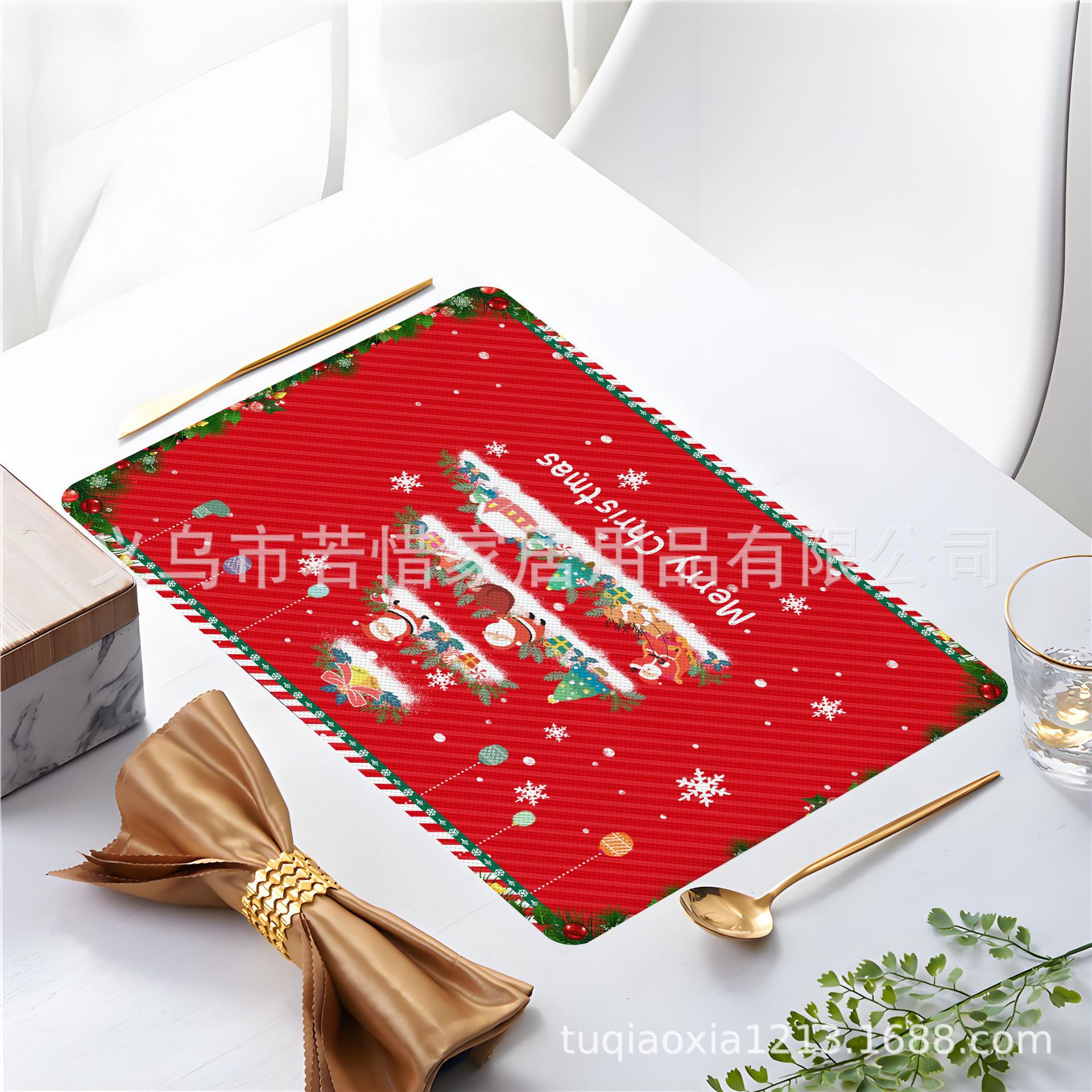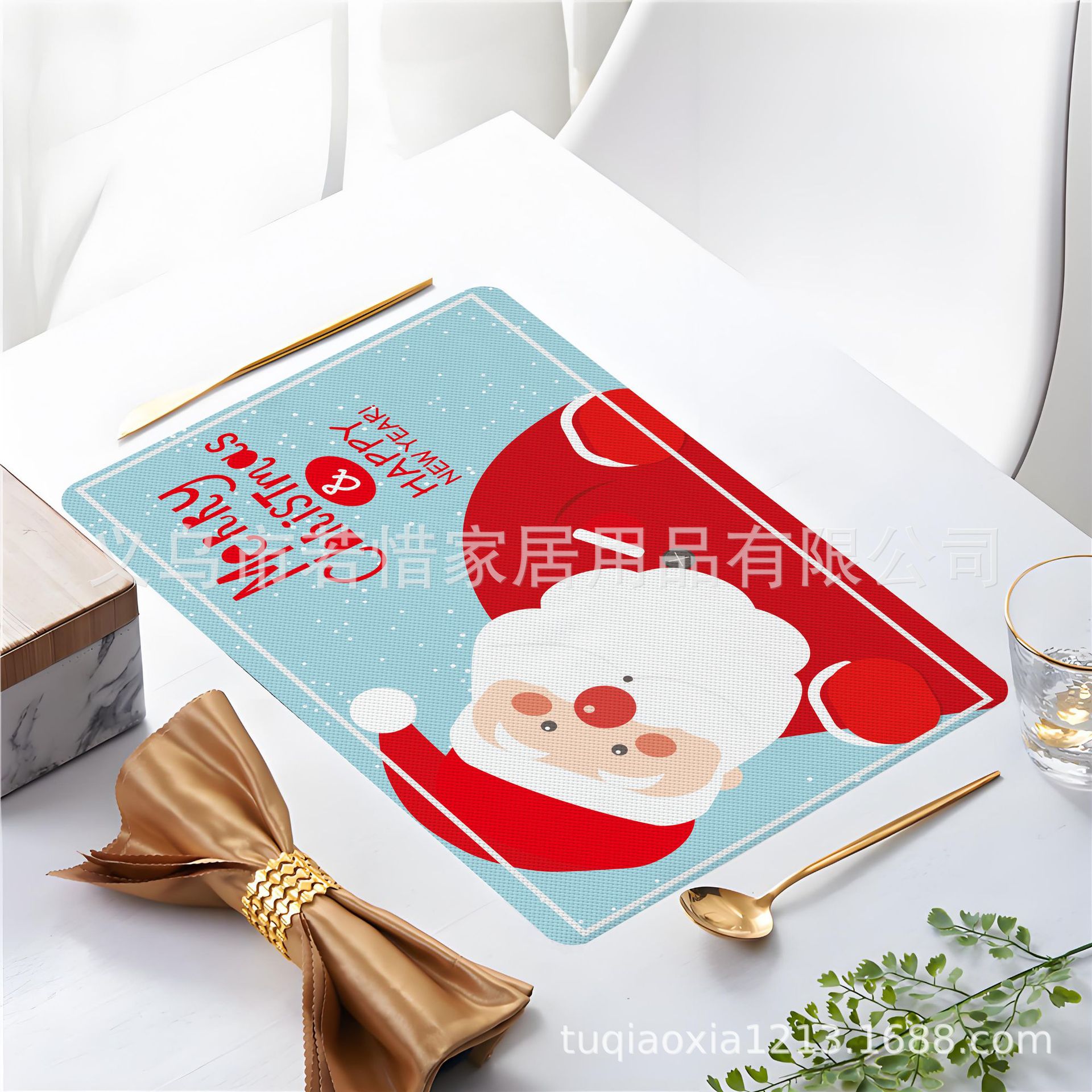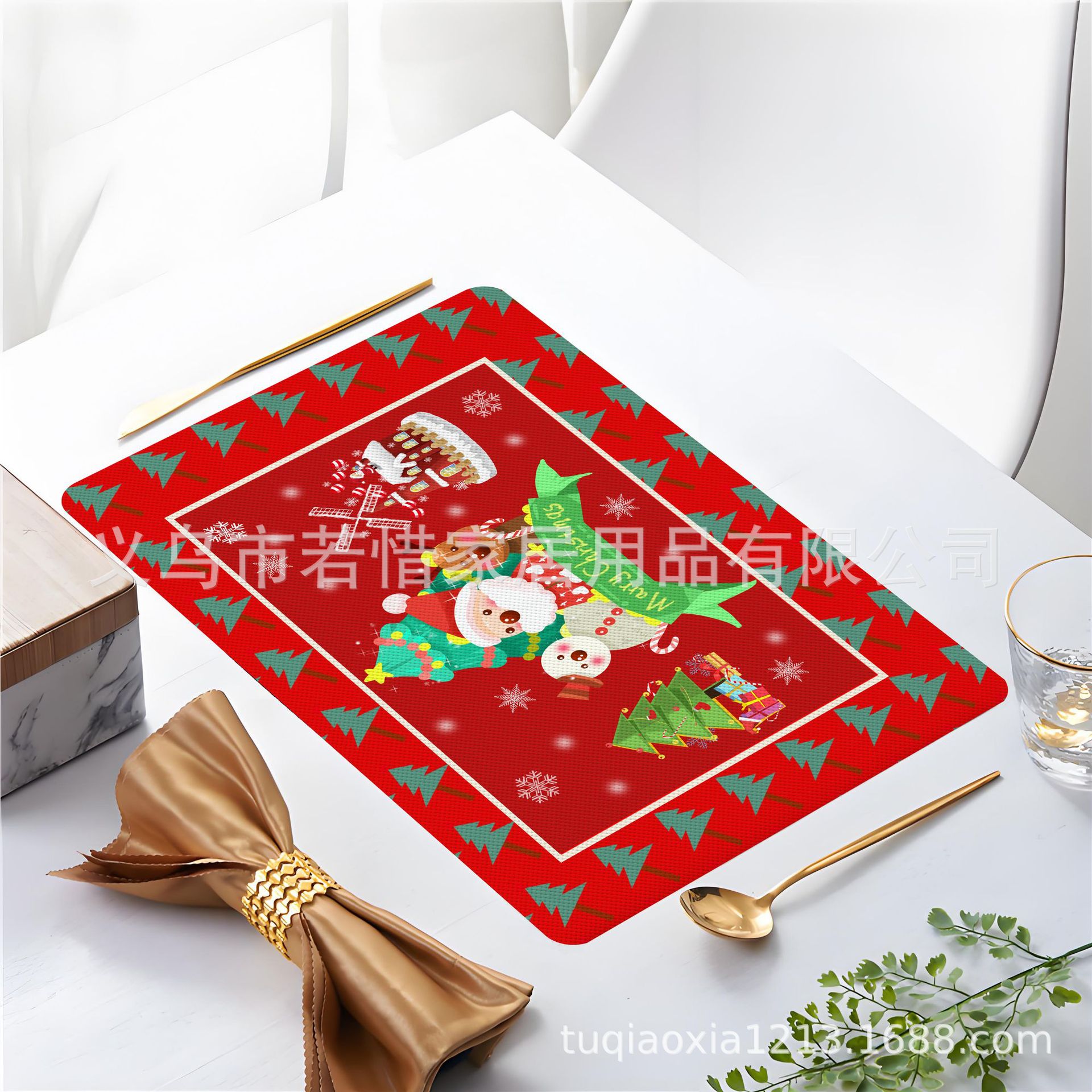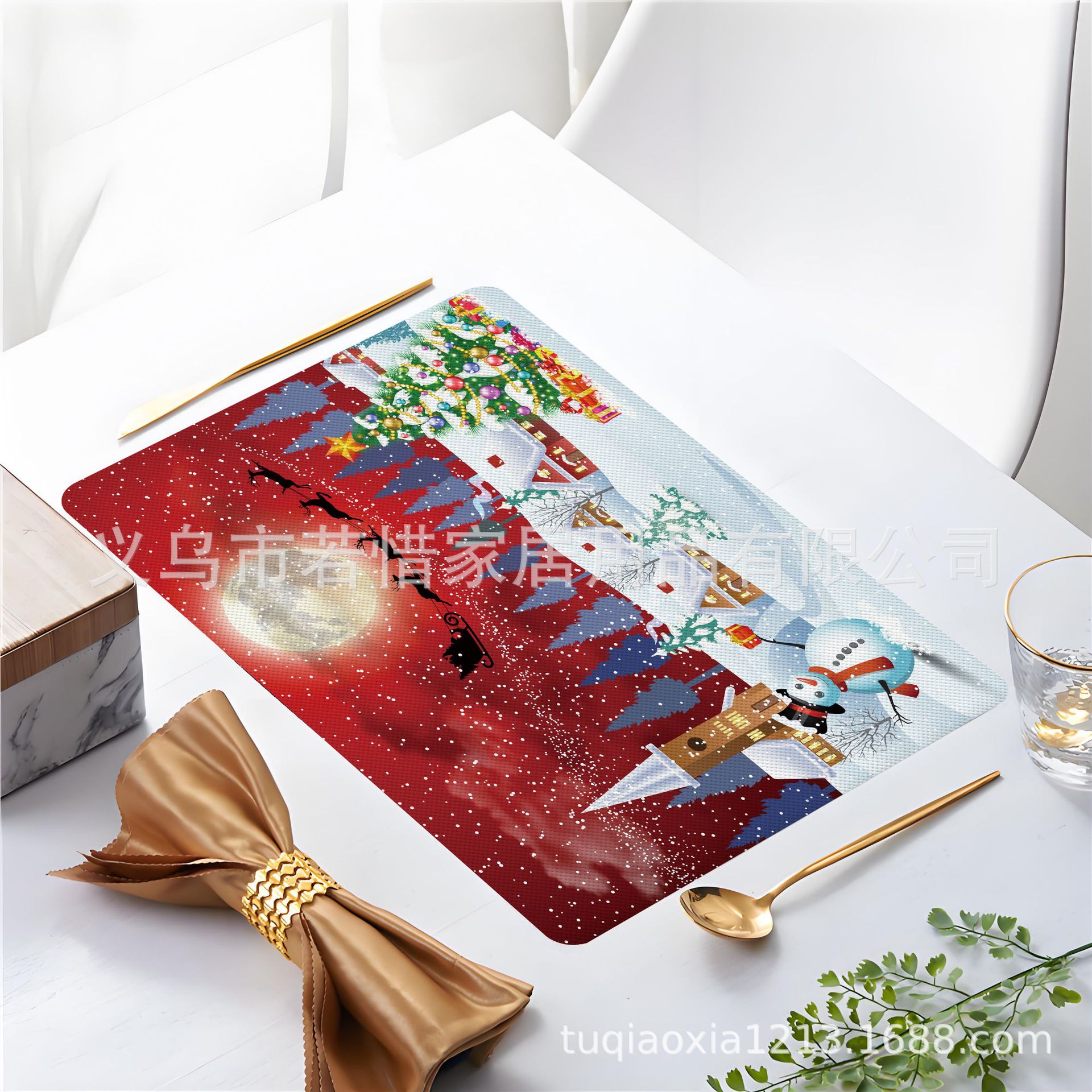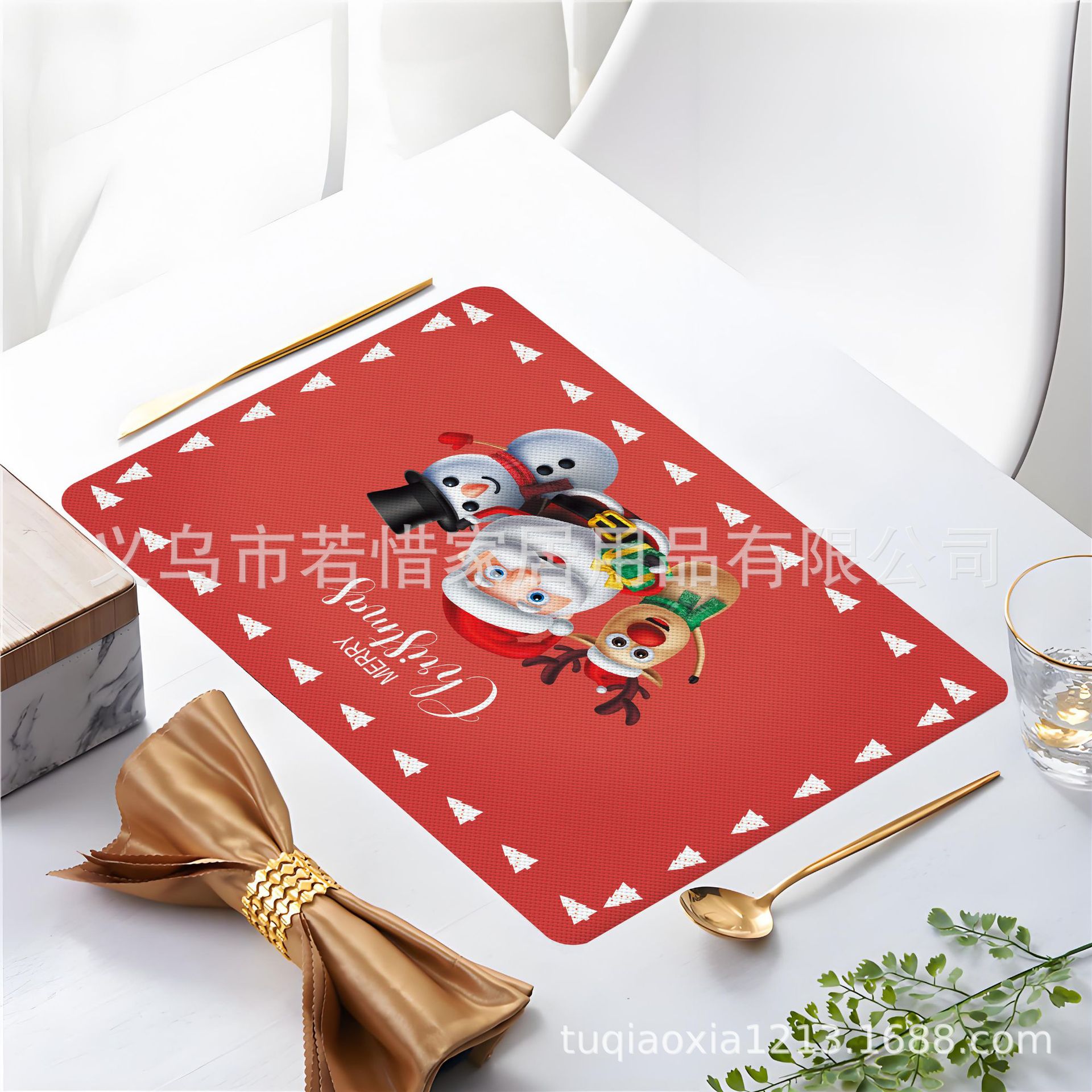 跨境亚马逊圣诞老人雪人圣诞树隔热餐垫防水西餐垫装饰垫印花餐垫