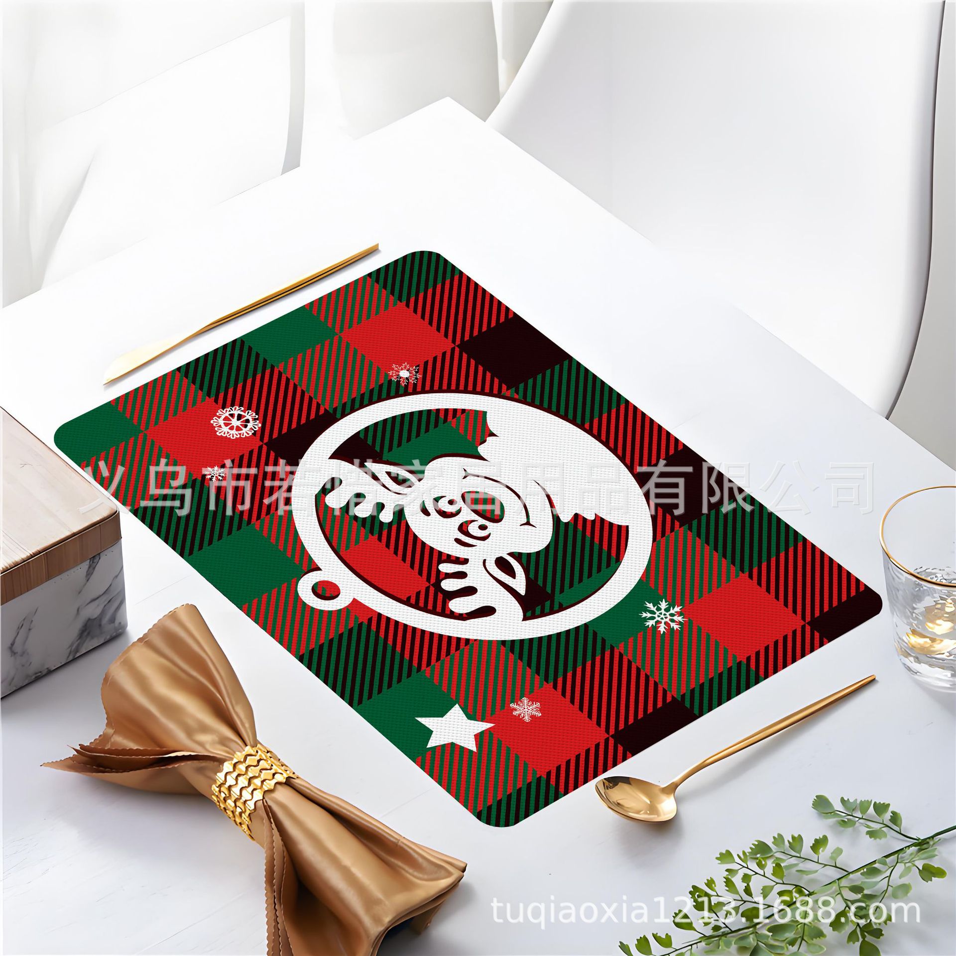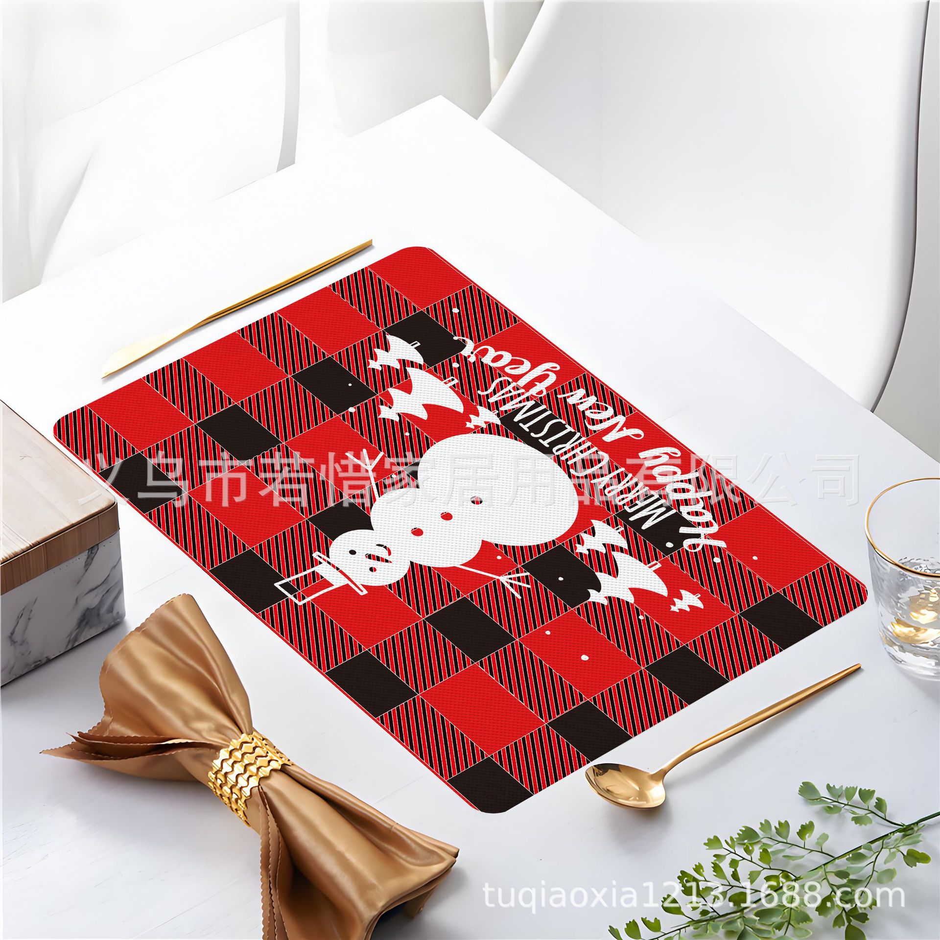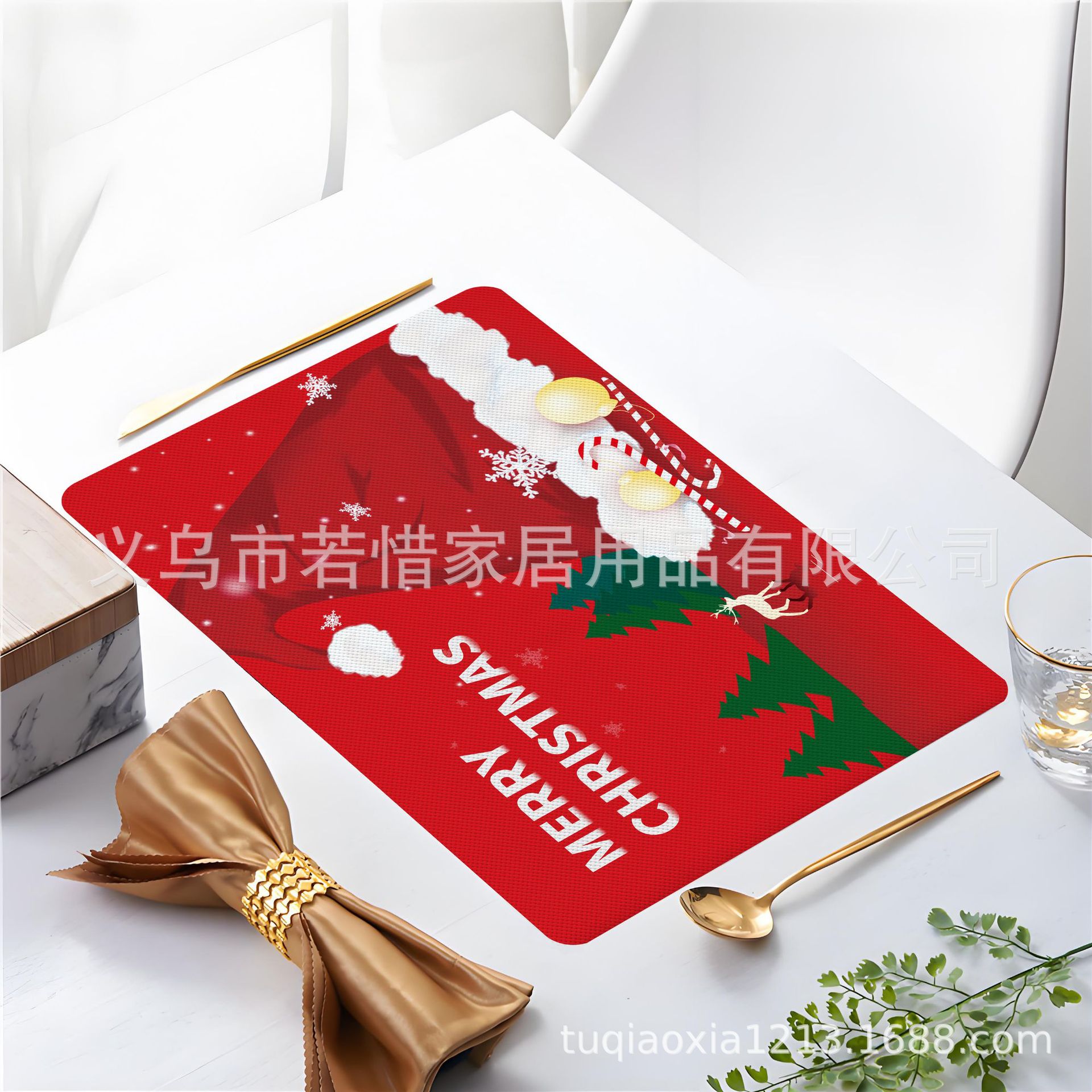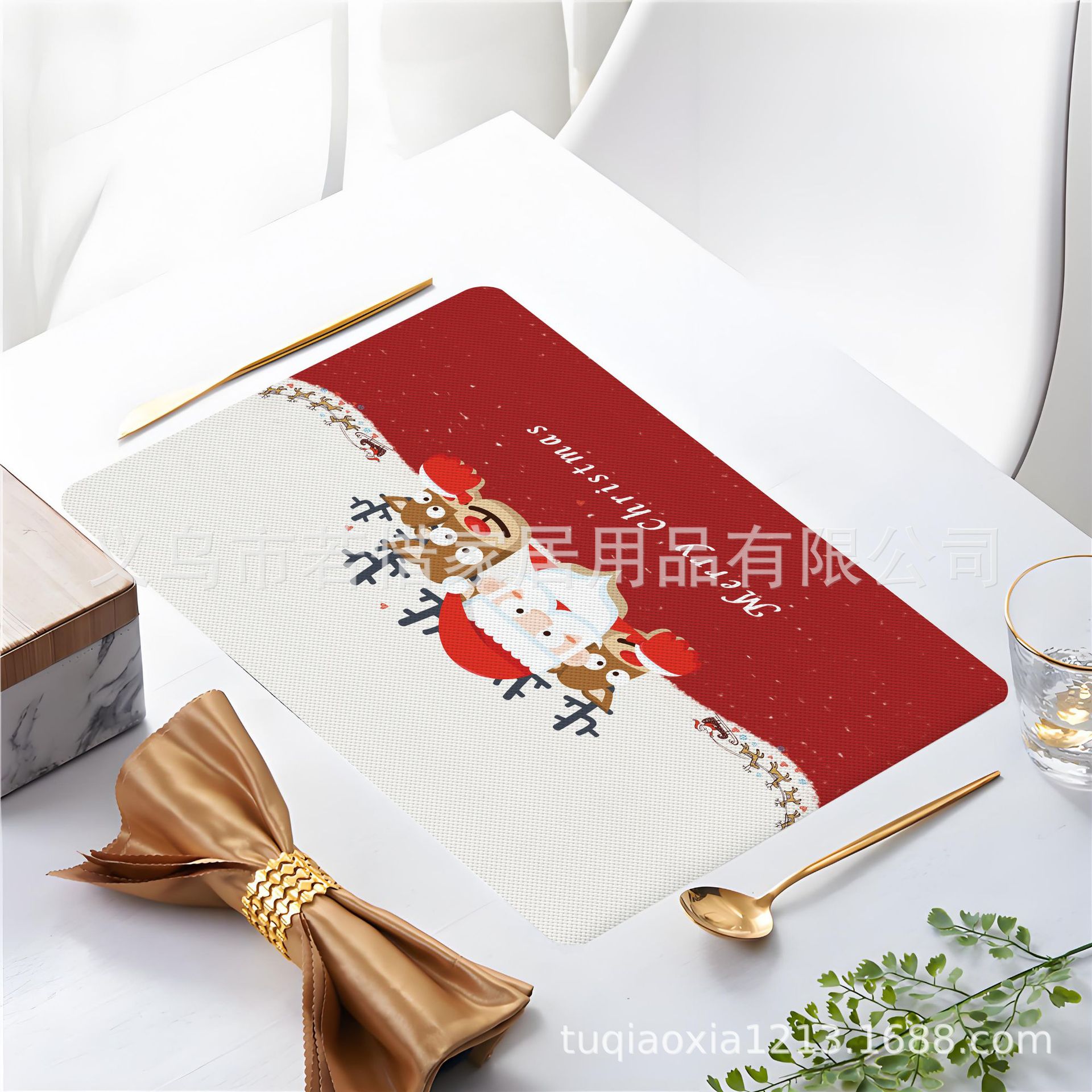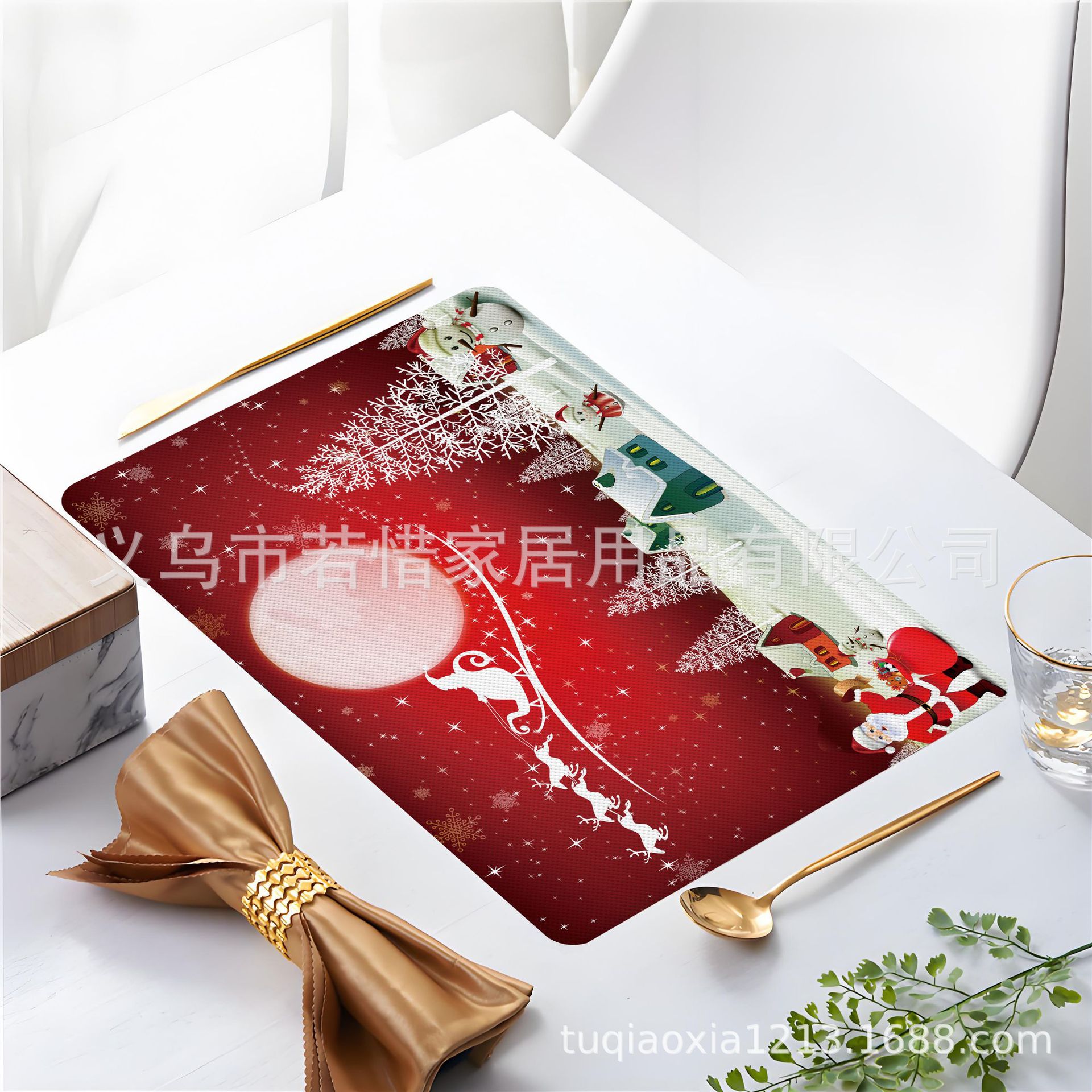 跨境亚马逊圣诞老人雪人圣诞树隔热餐垫防水西餐垫装饰垫印花餐垫