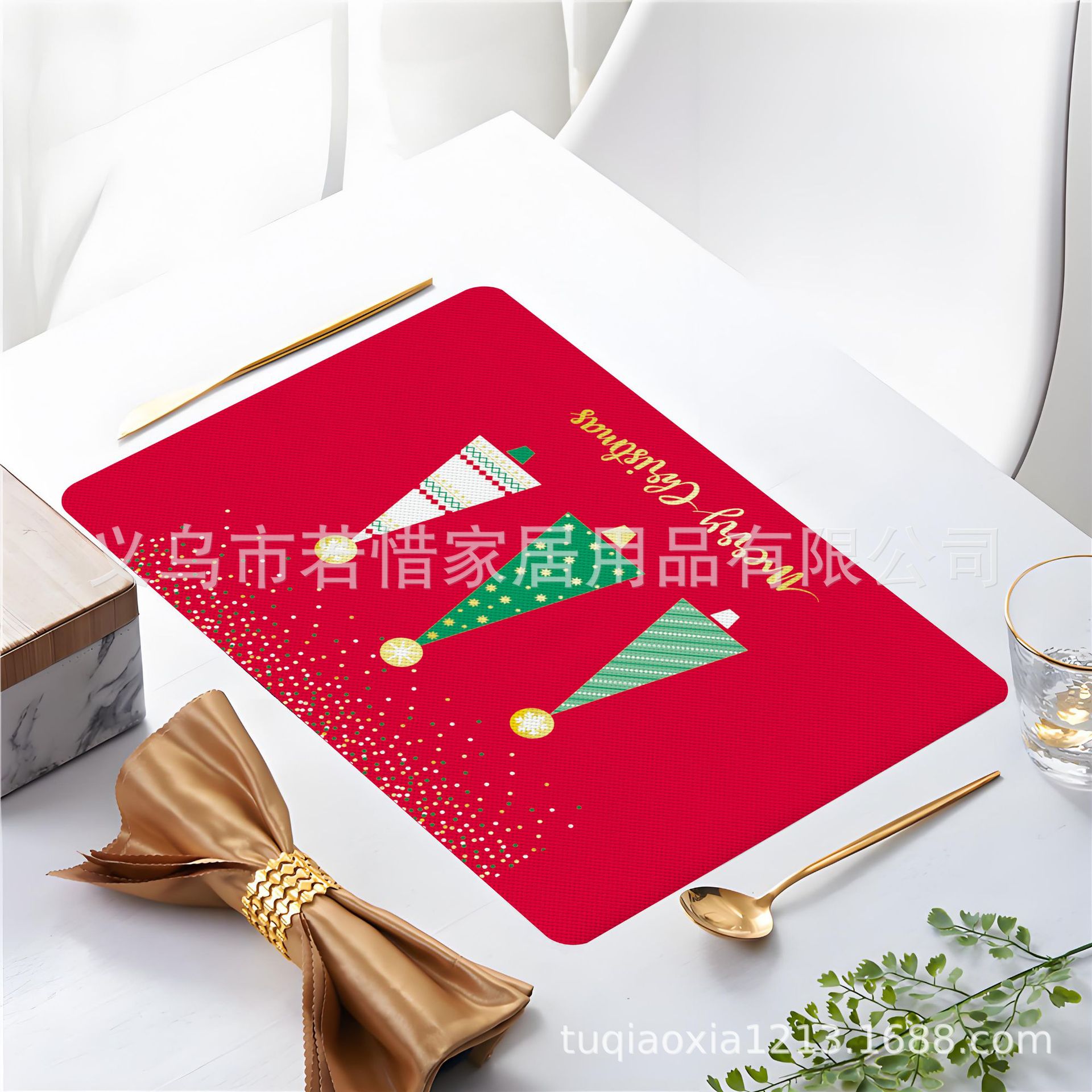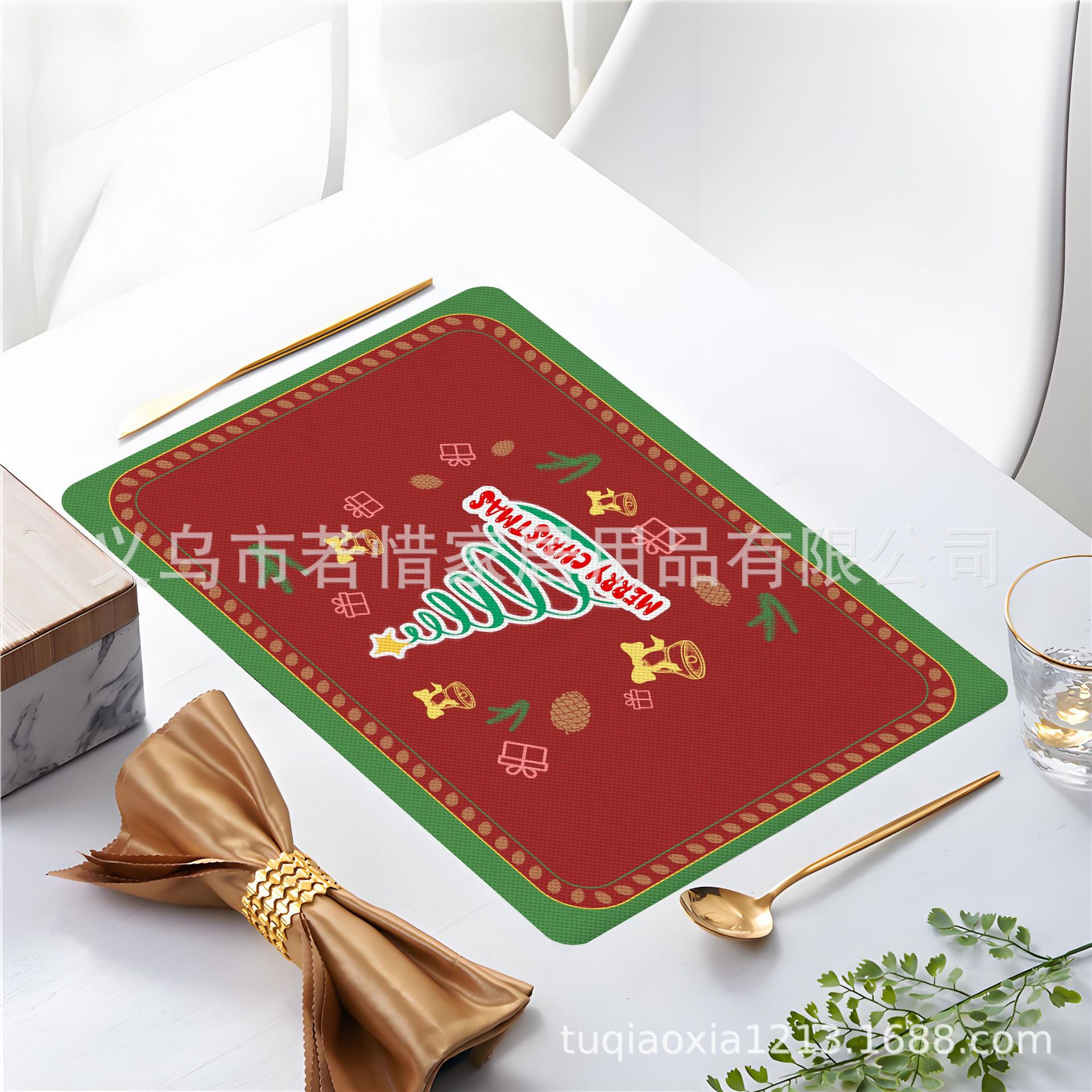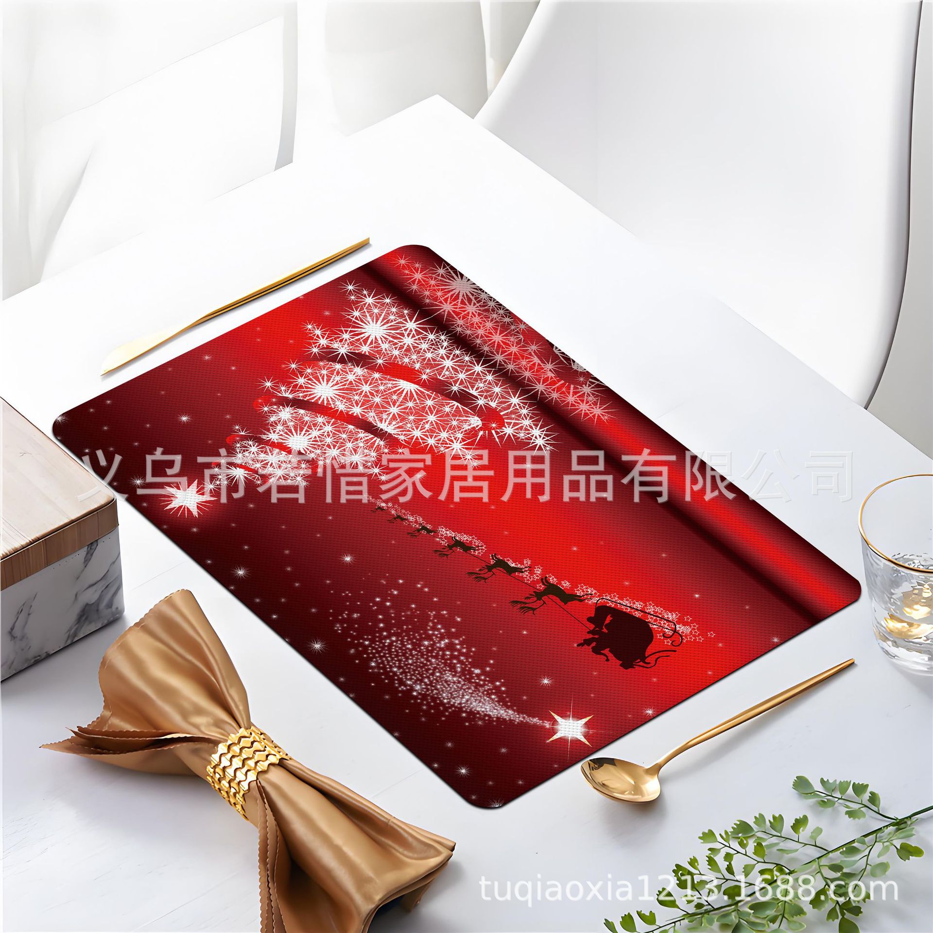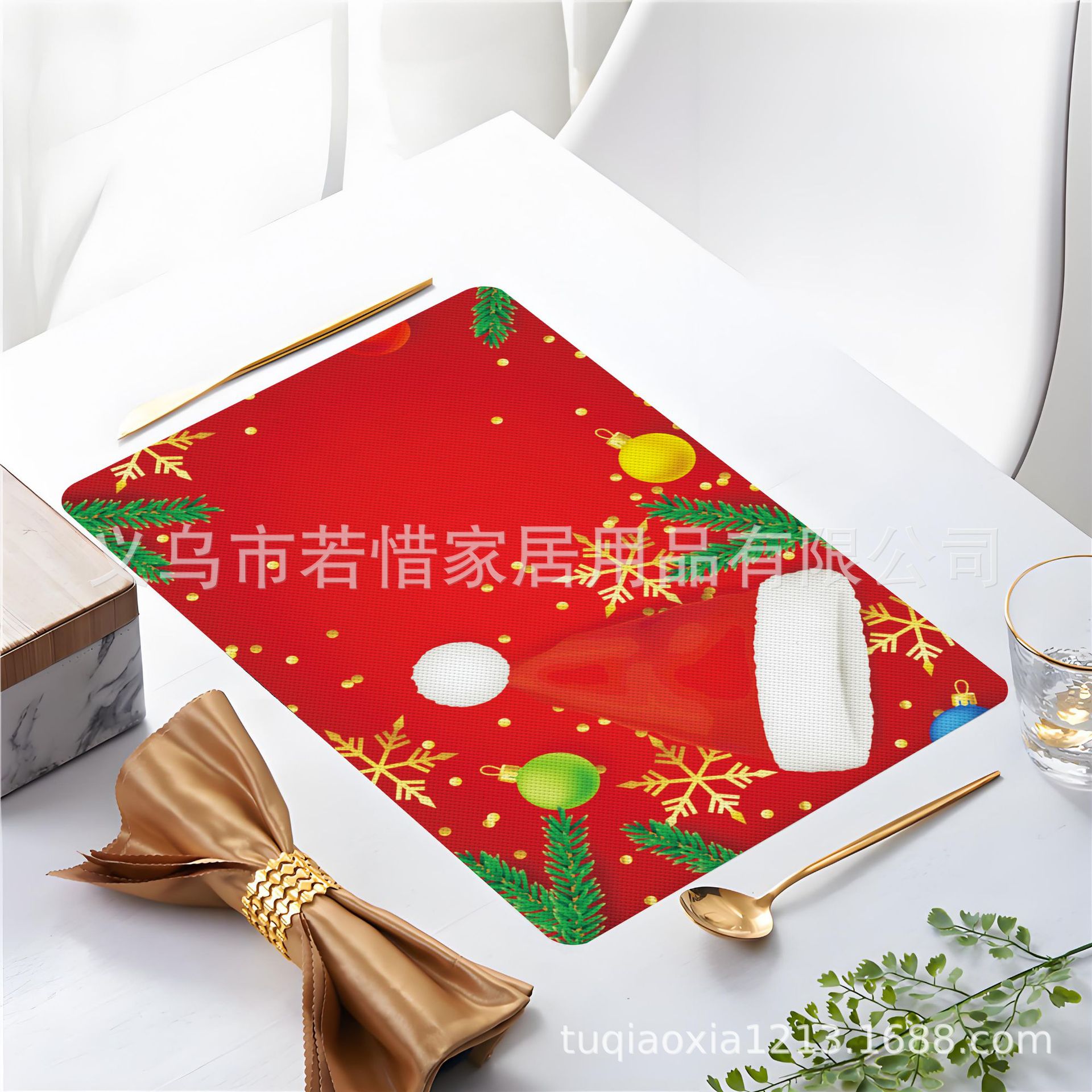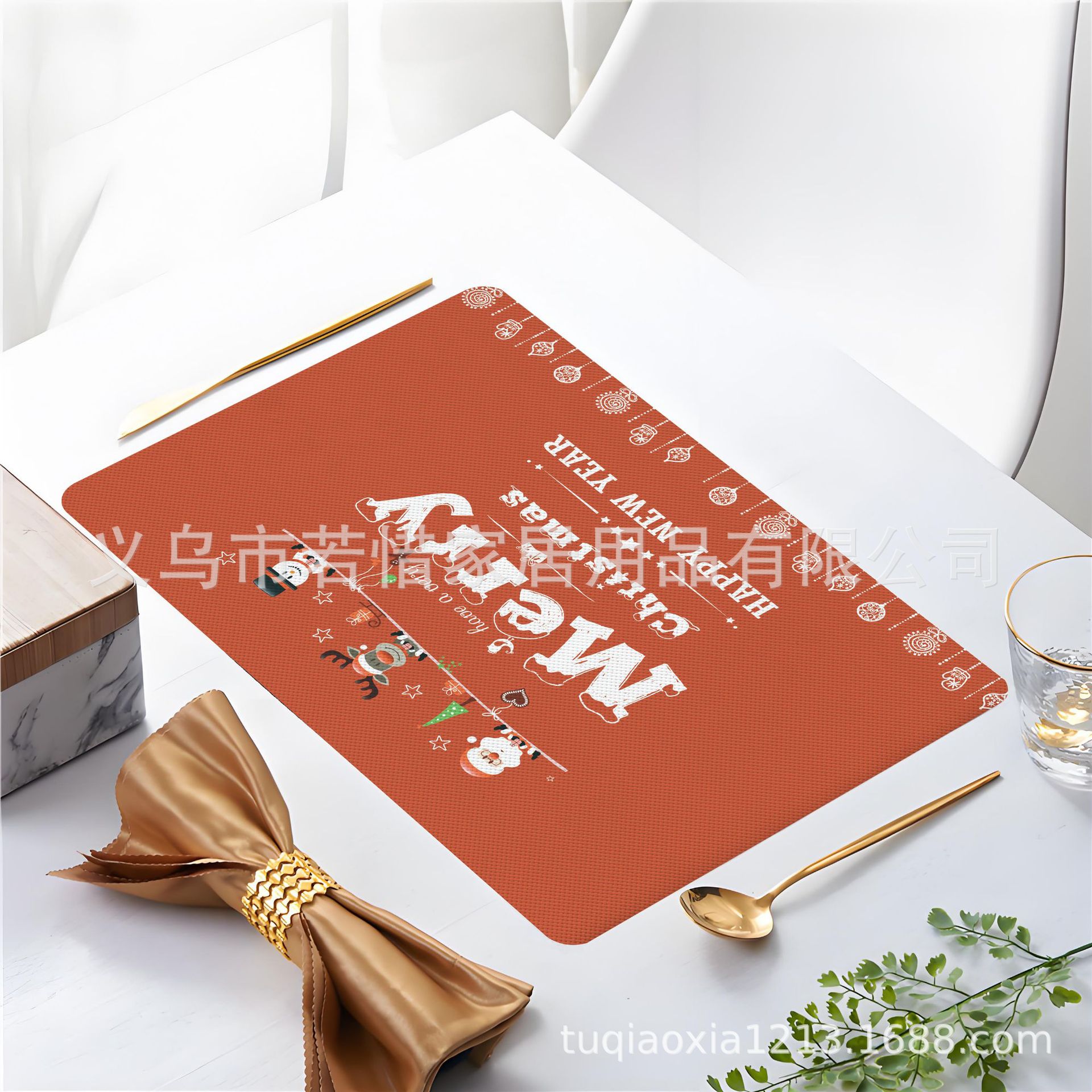 跨境亚马逊圣诞老人雪人圣诞树隔热餐垫防水西餐垫装饰垫印花餐垫
