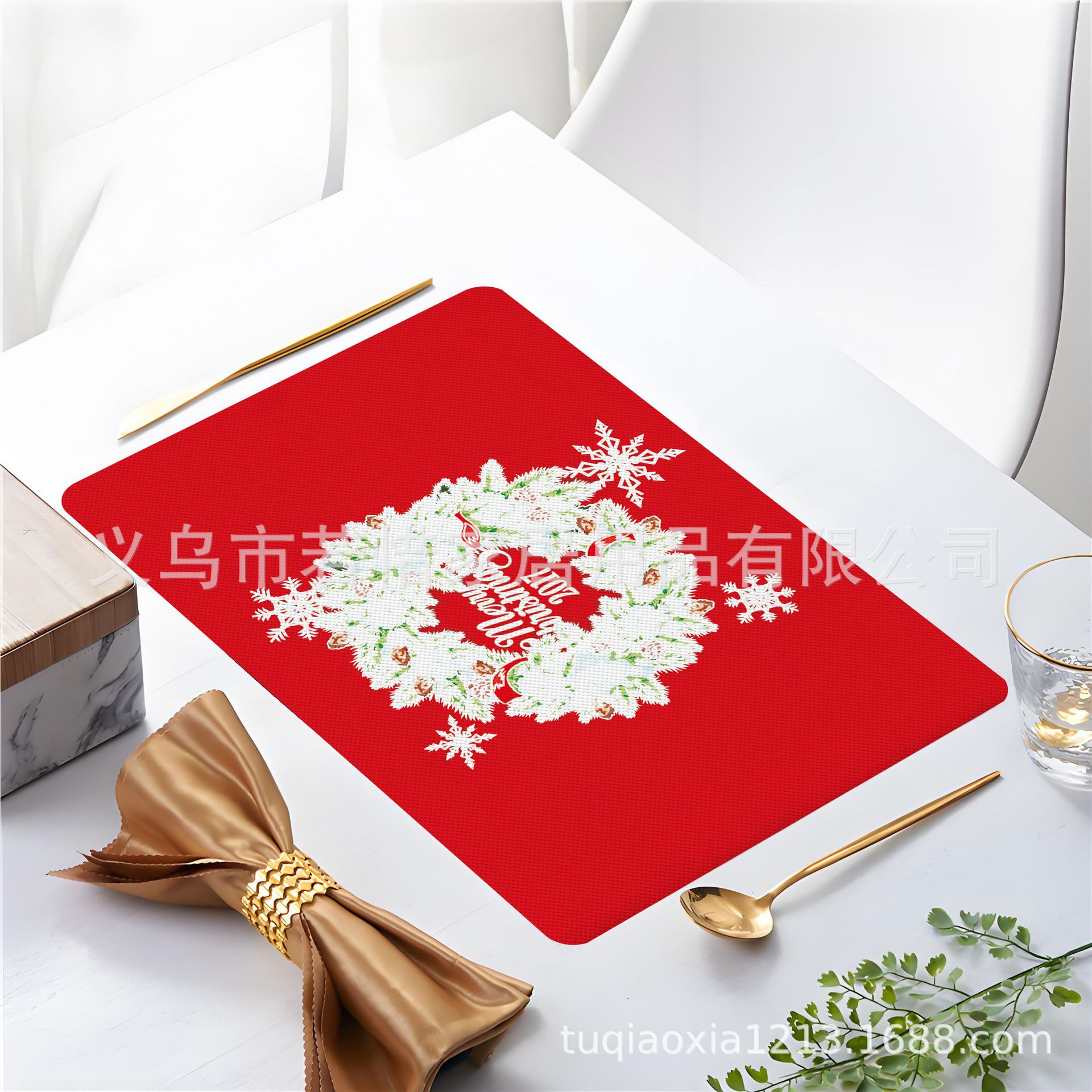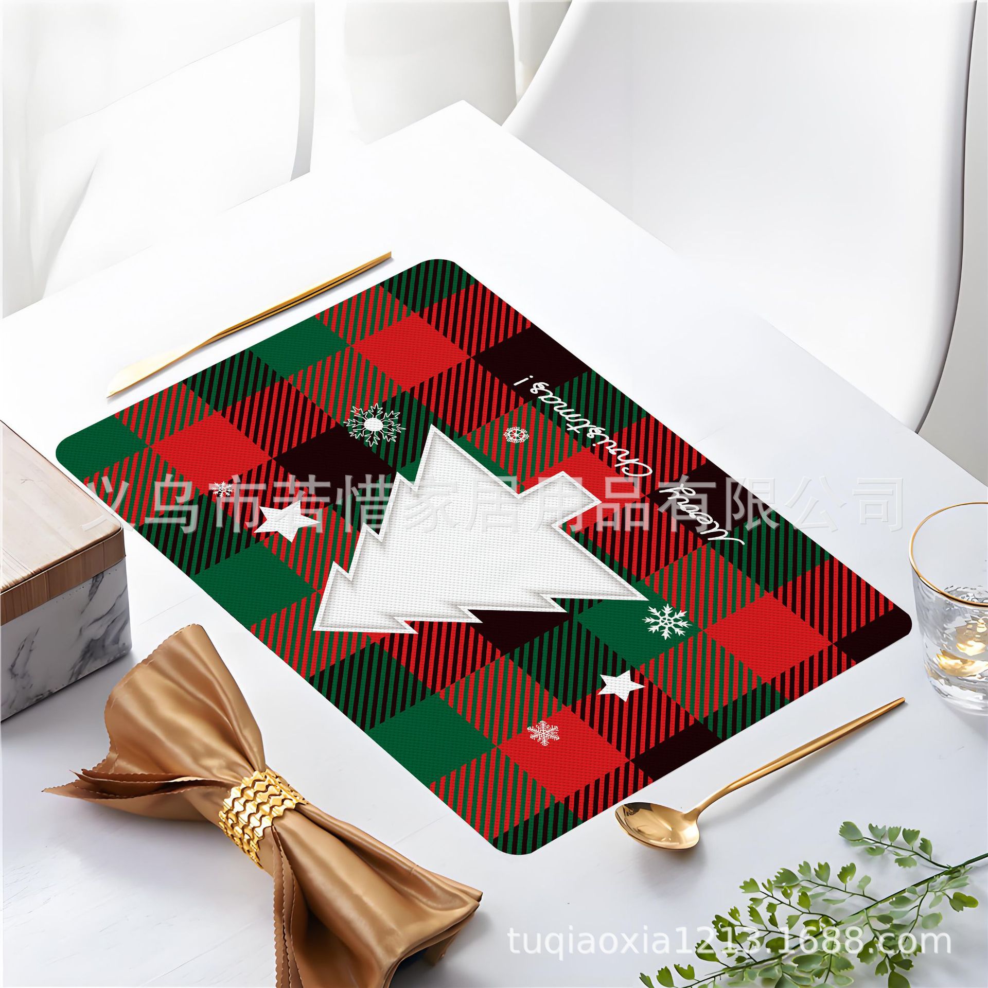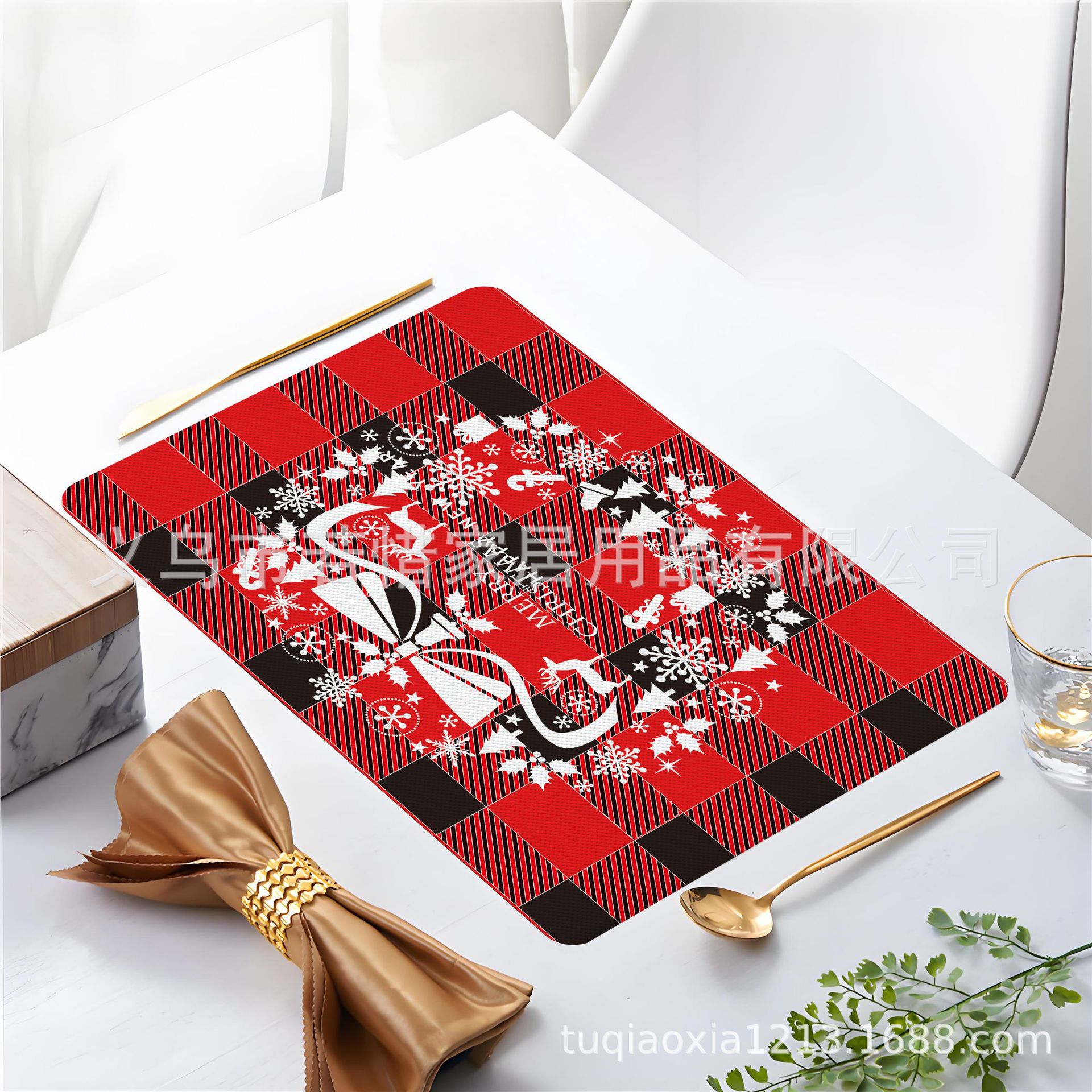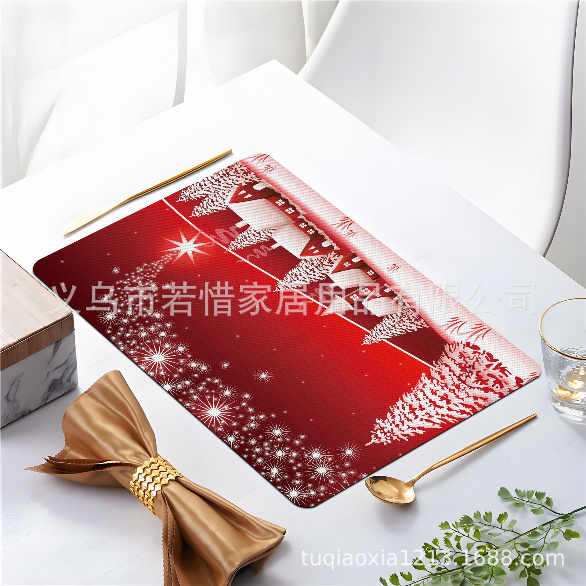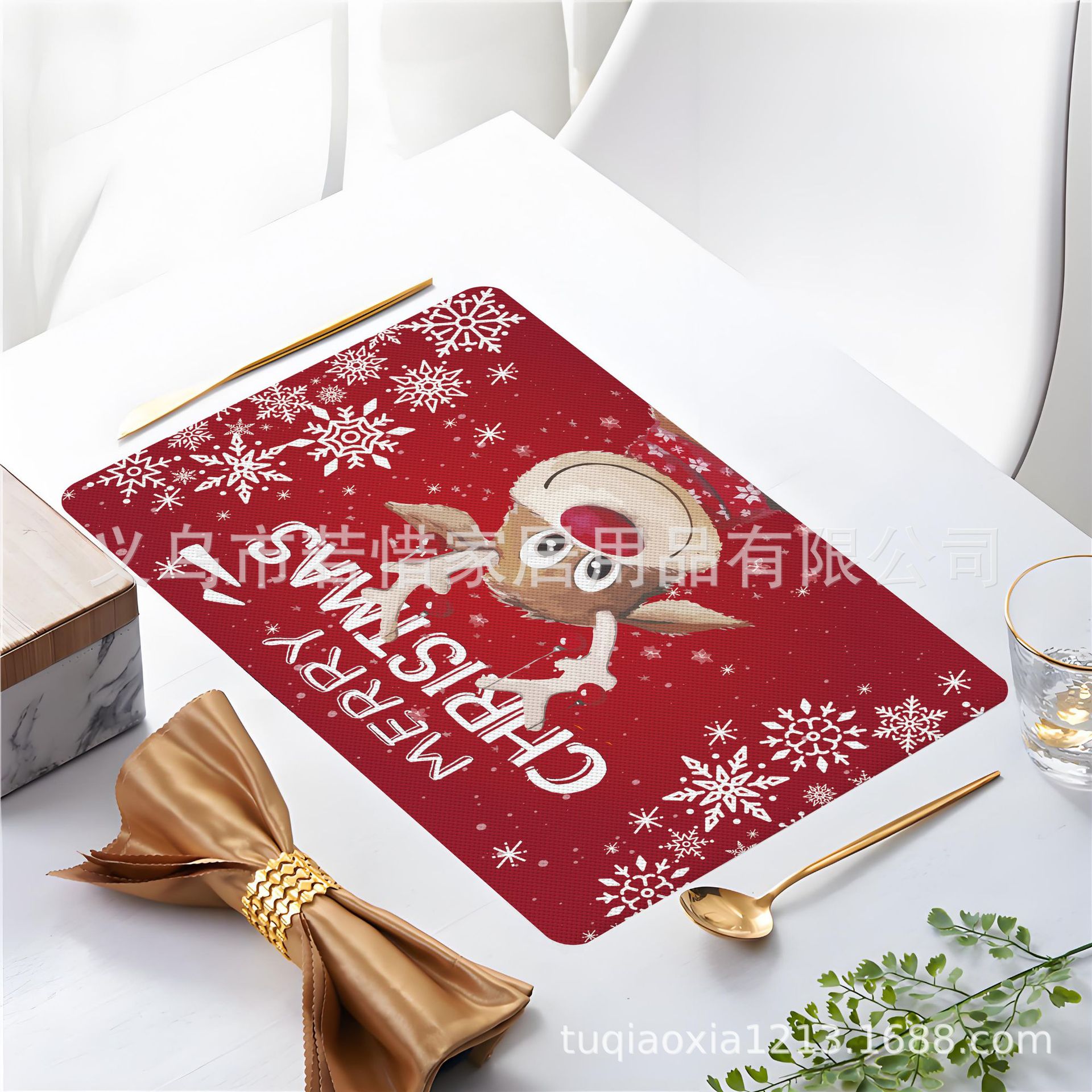 跨境亚马逊圣诞老人雪人圣诞树隔热餐垫防水西餐垫装饰垫印花餐垫