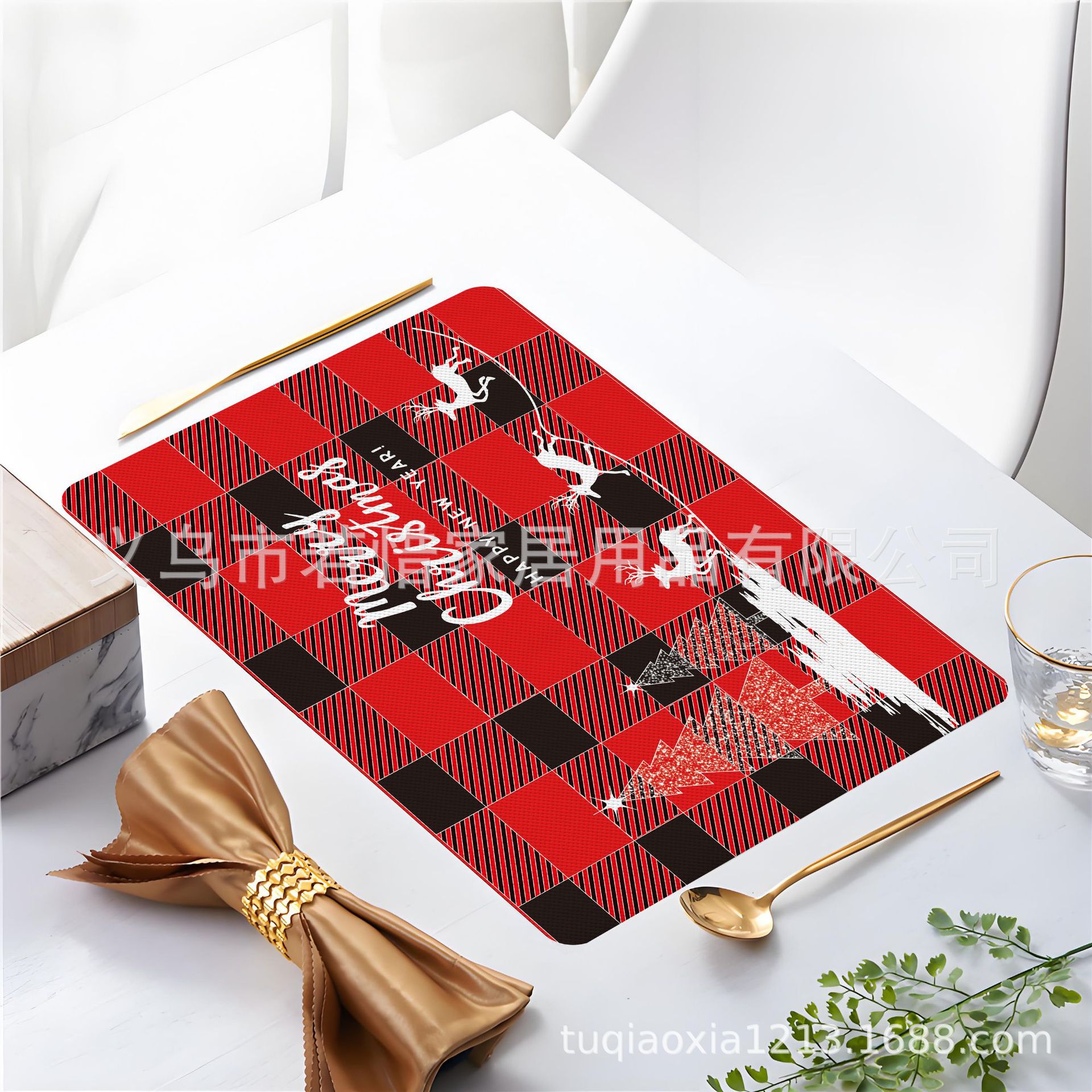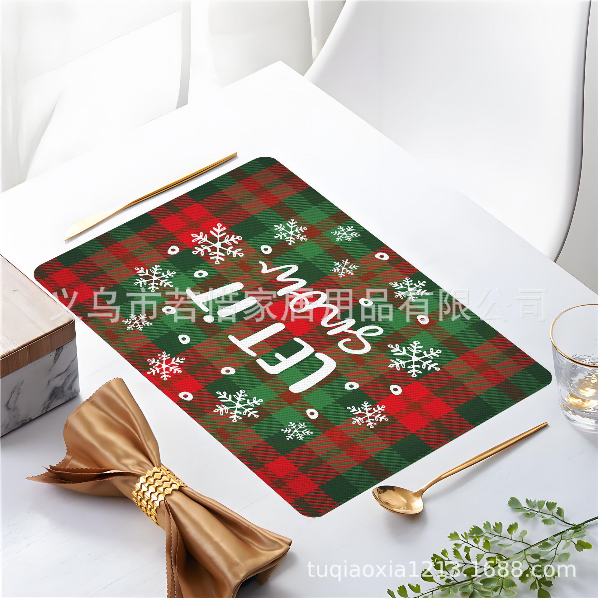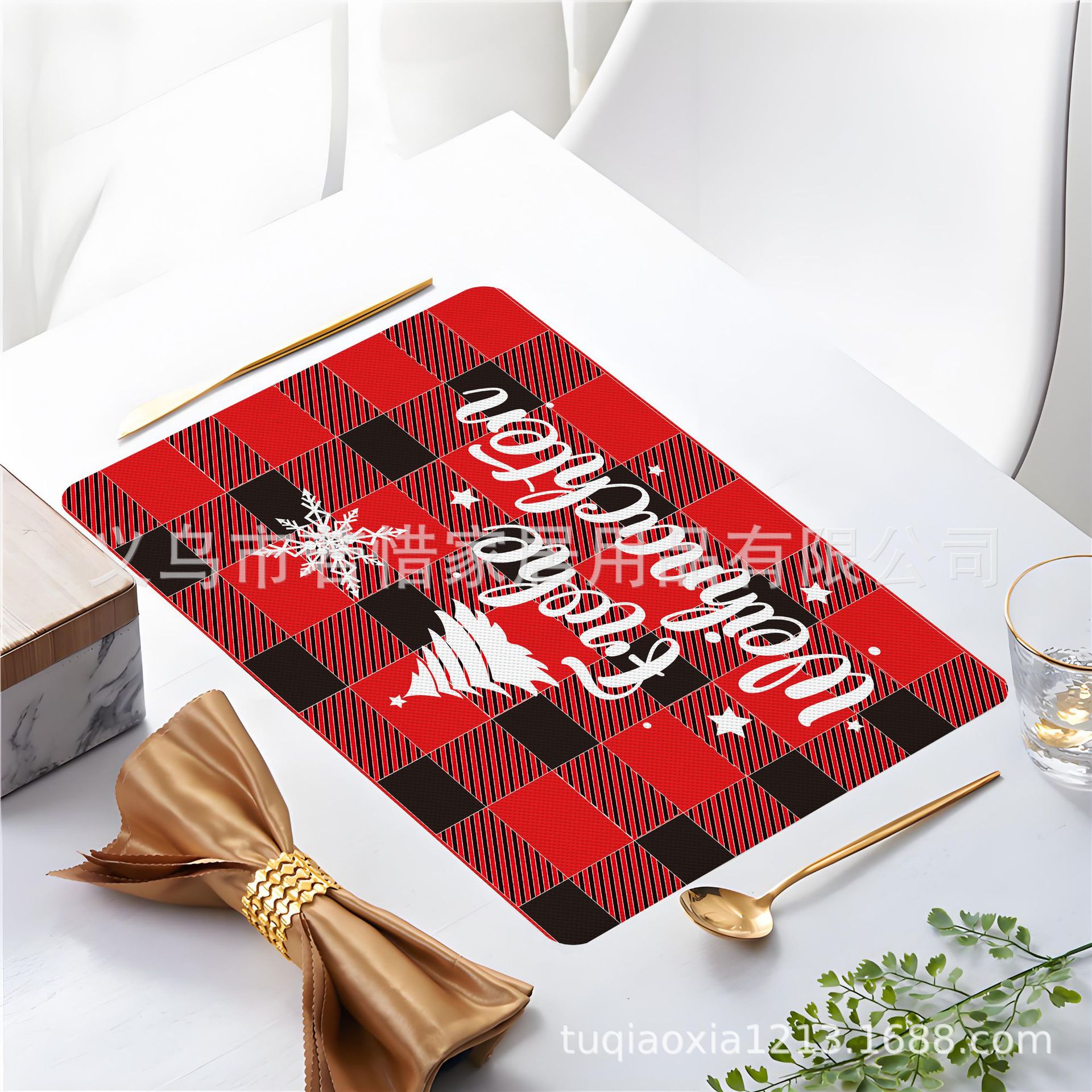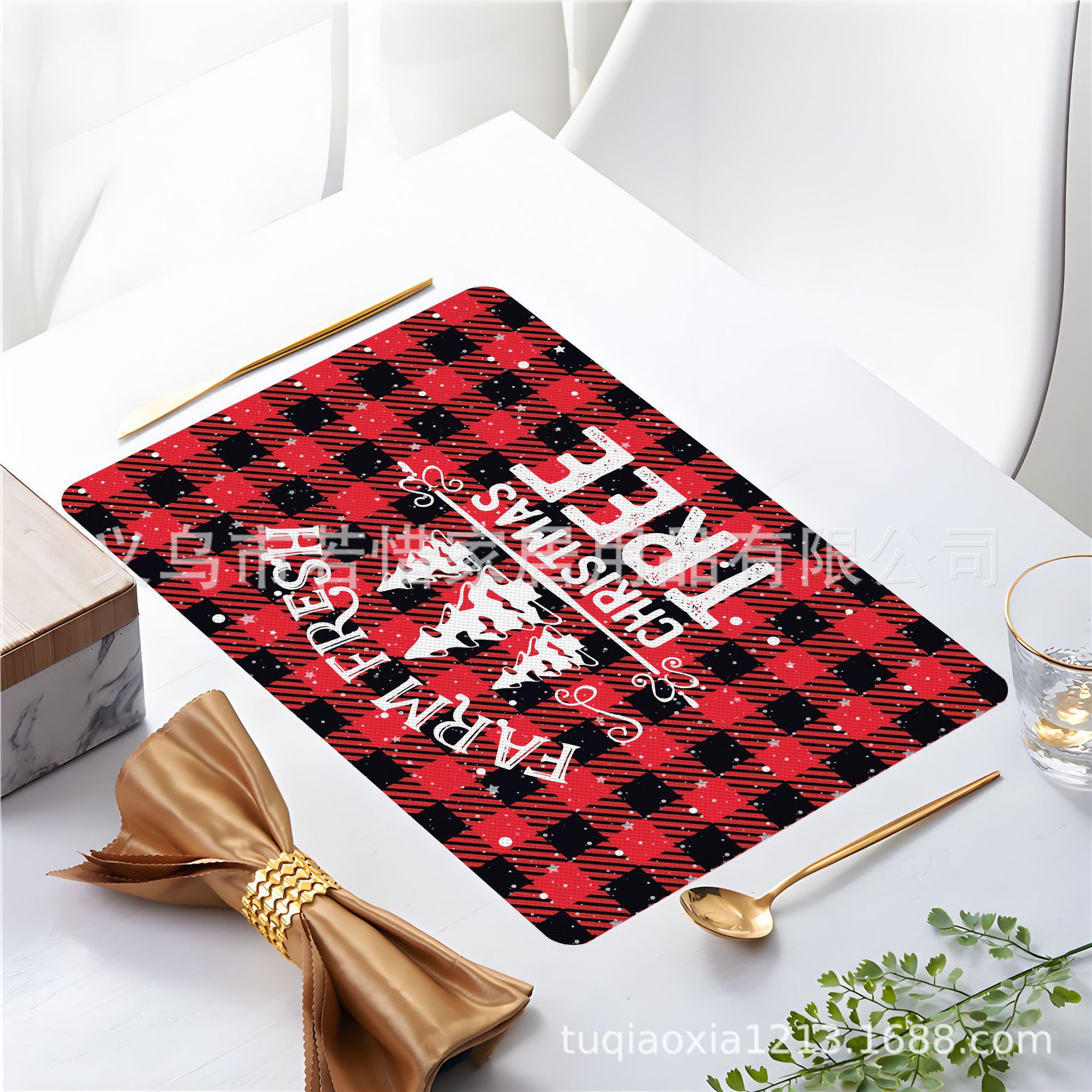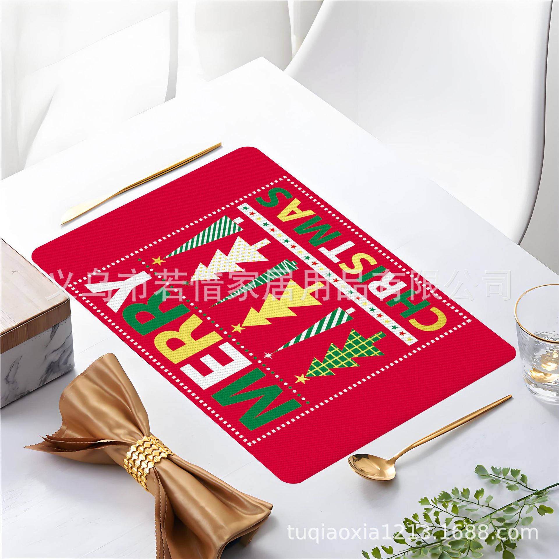 跨境亚马逊圣诞老人雪人圣诞树隔热餐垫防水西餐垫装饰垫印花餐垫