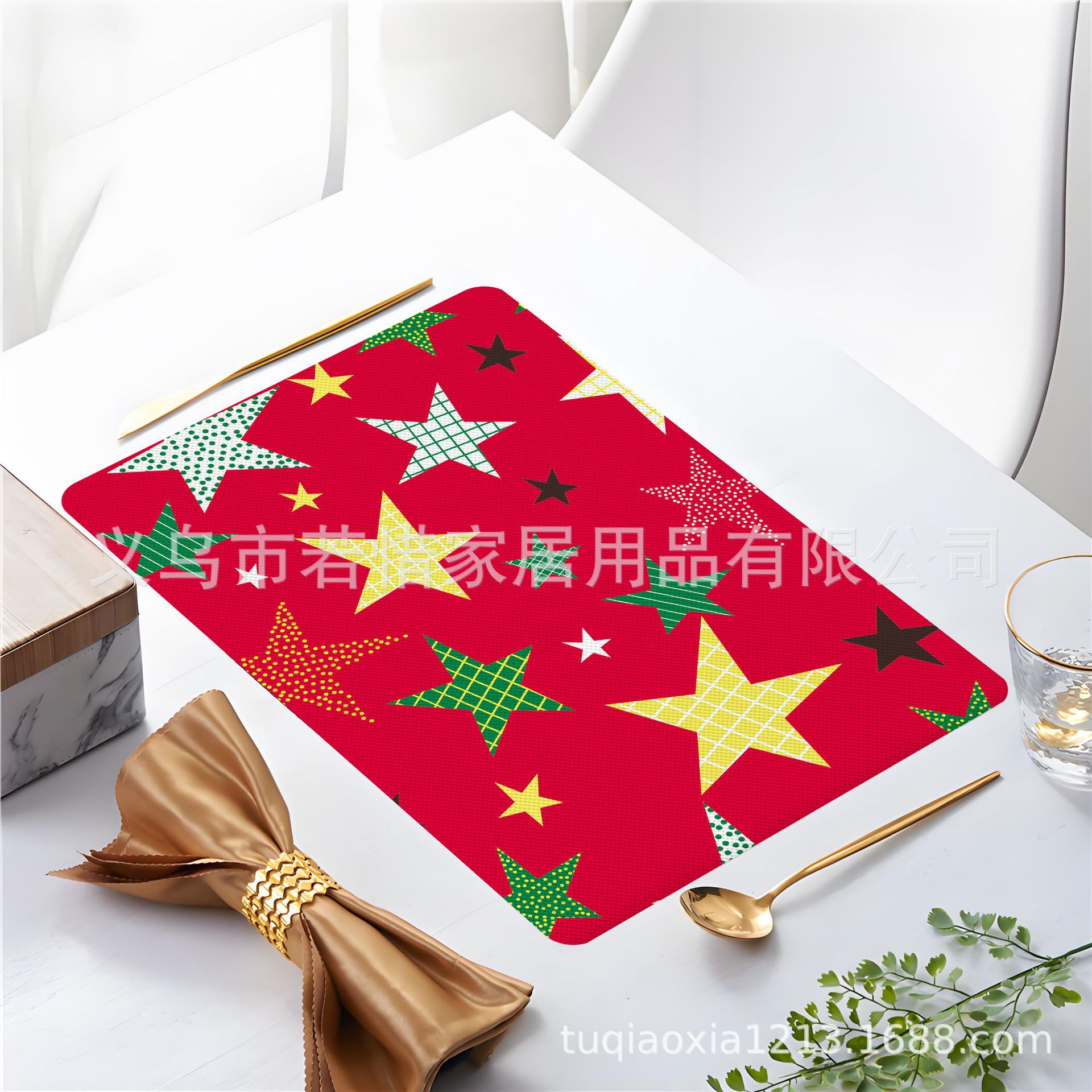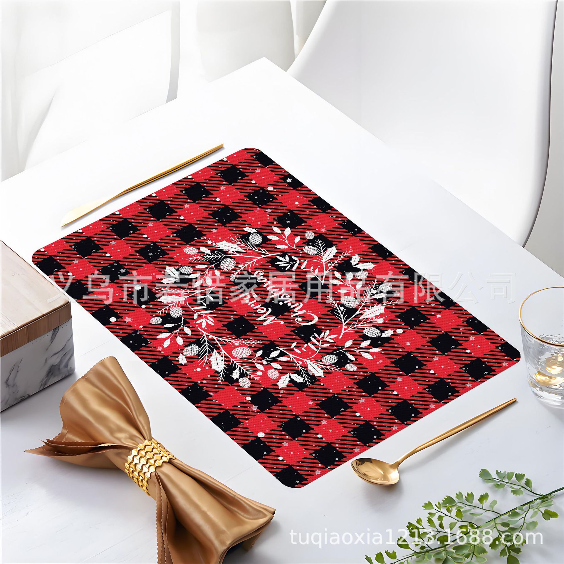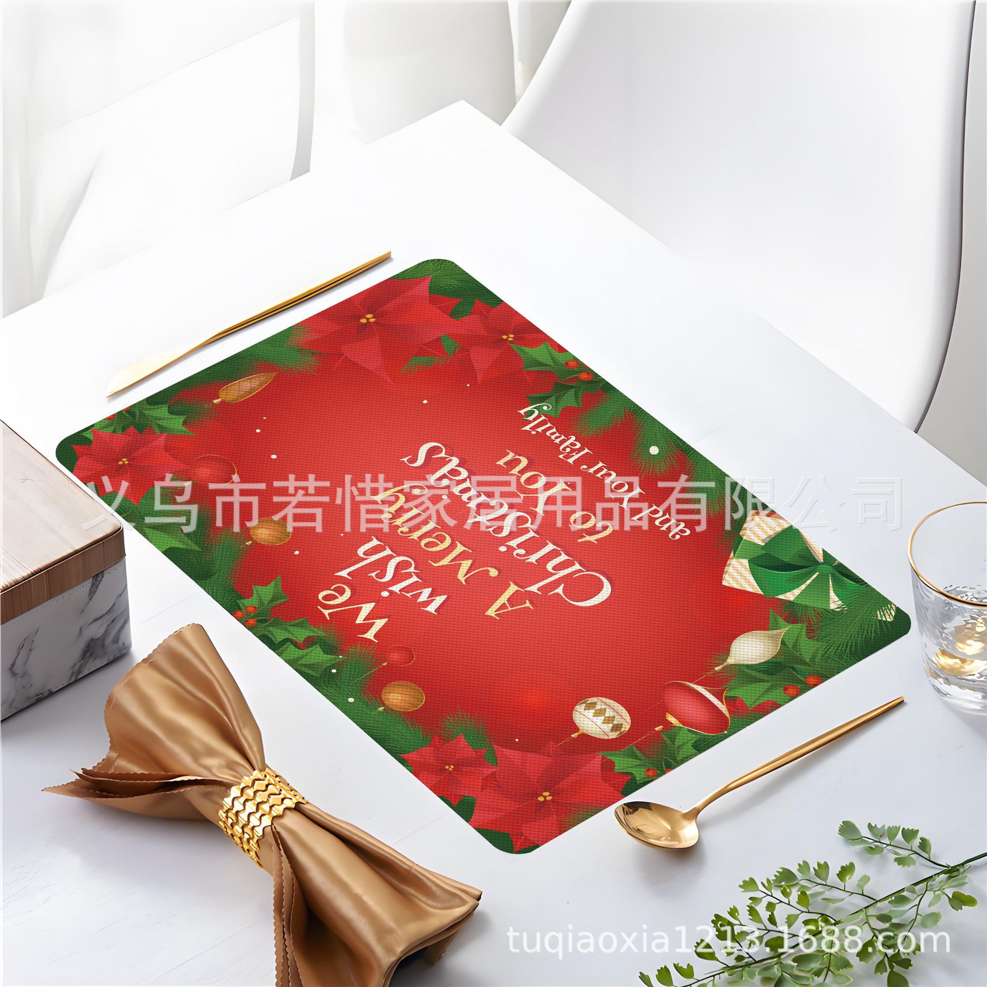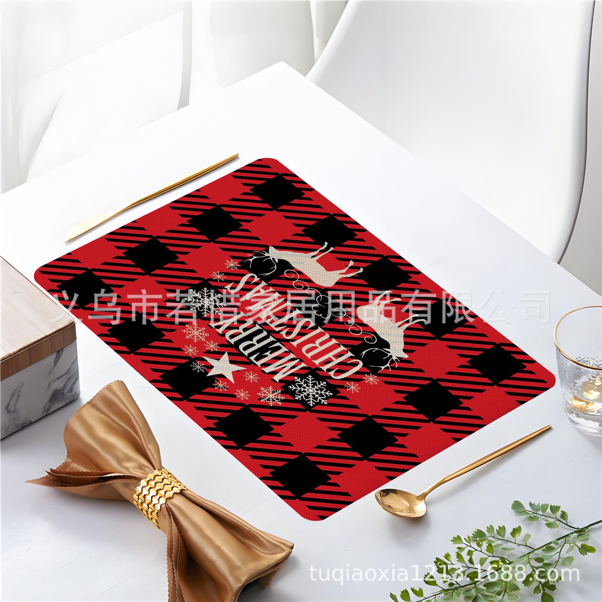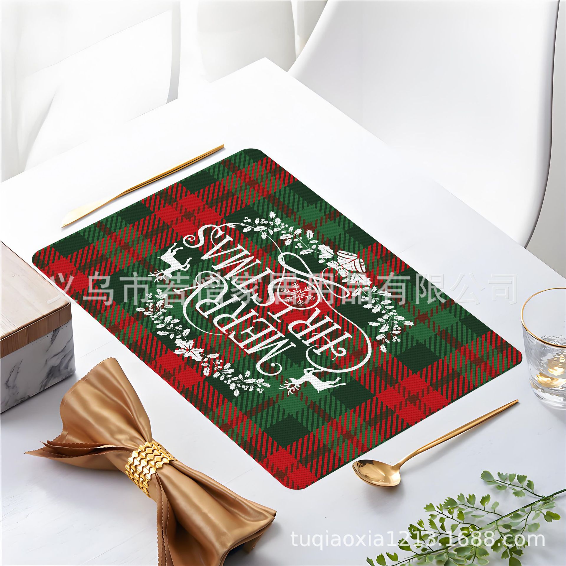 跨境亚马逊圣诞老人雪人圣诞树隔热餐垫防水西餐垫装饰垫印花餐垫