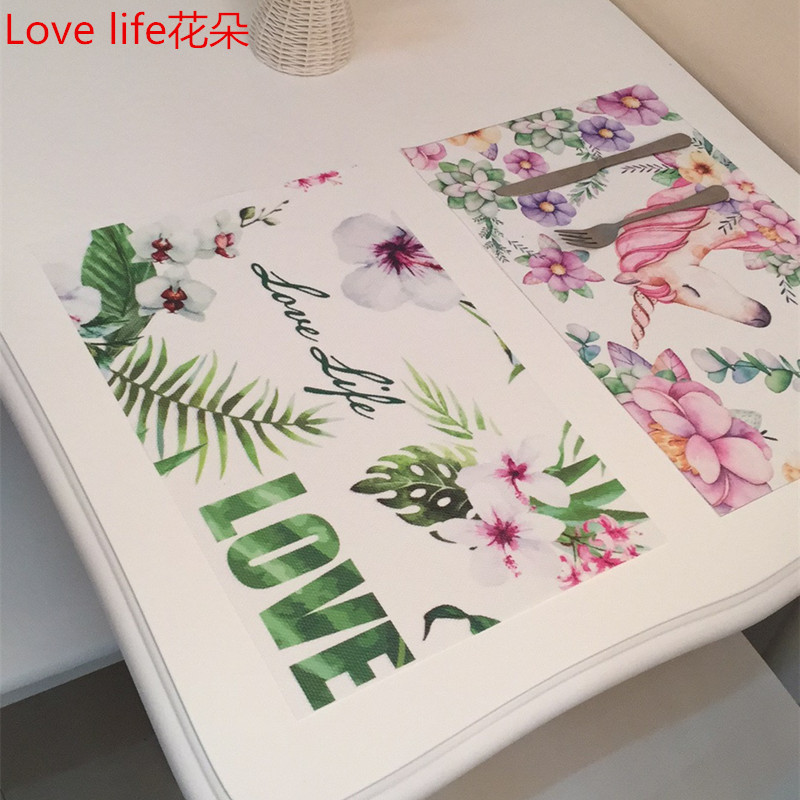 北欧ins餐垫特斯林龟背叶餐垫仙人掌菠萝特斯林防水西餐厅PVC桌垫