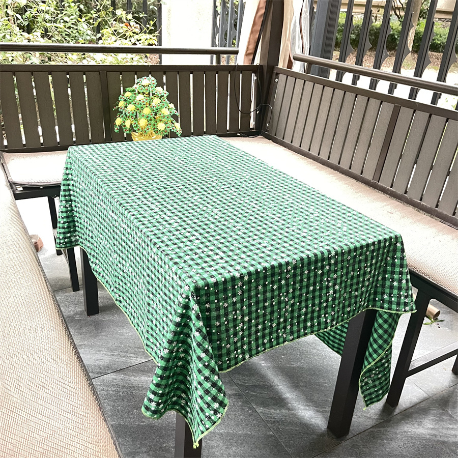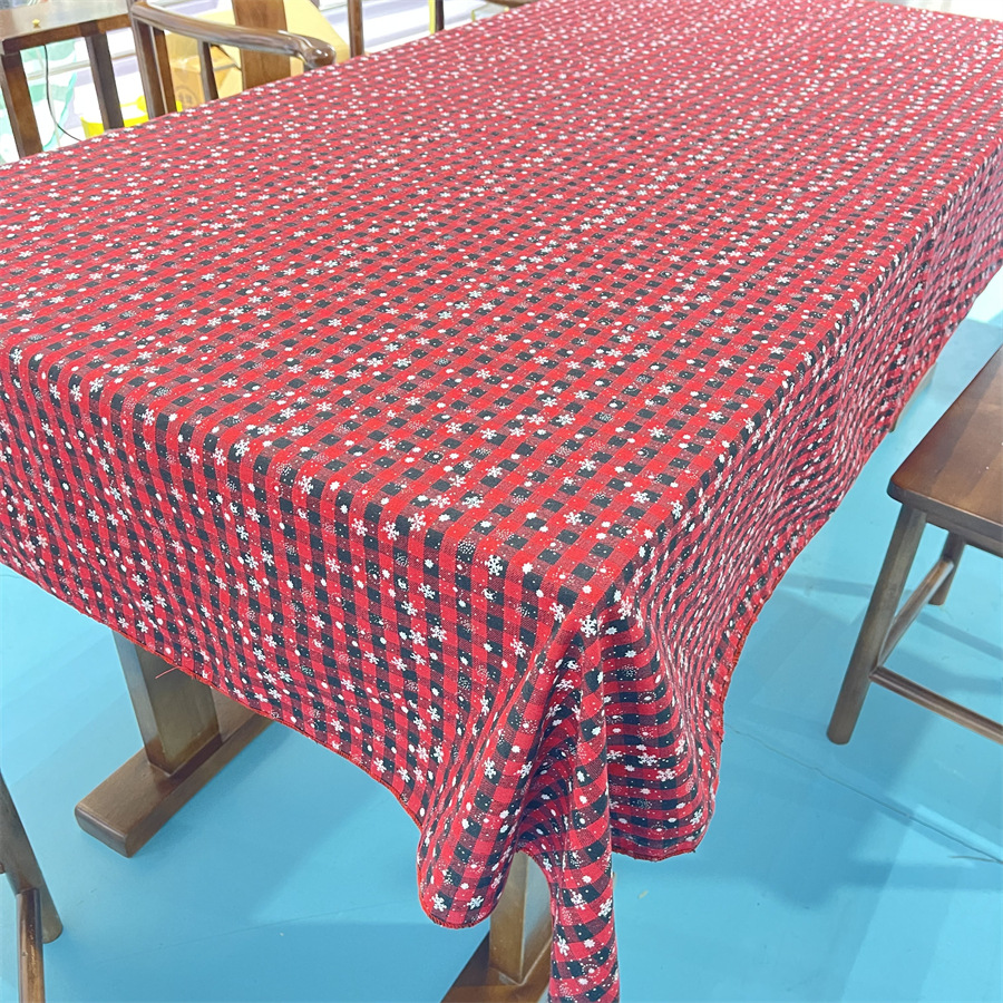 跨境新款圣诞节雪花桌布创意红格子雪花涤棉餐厅长方形节日桌布台