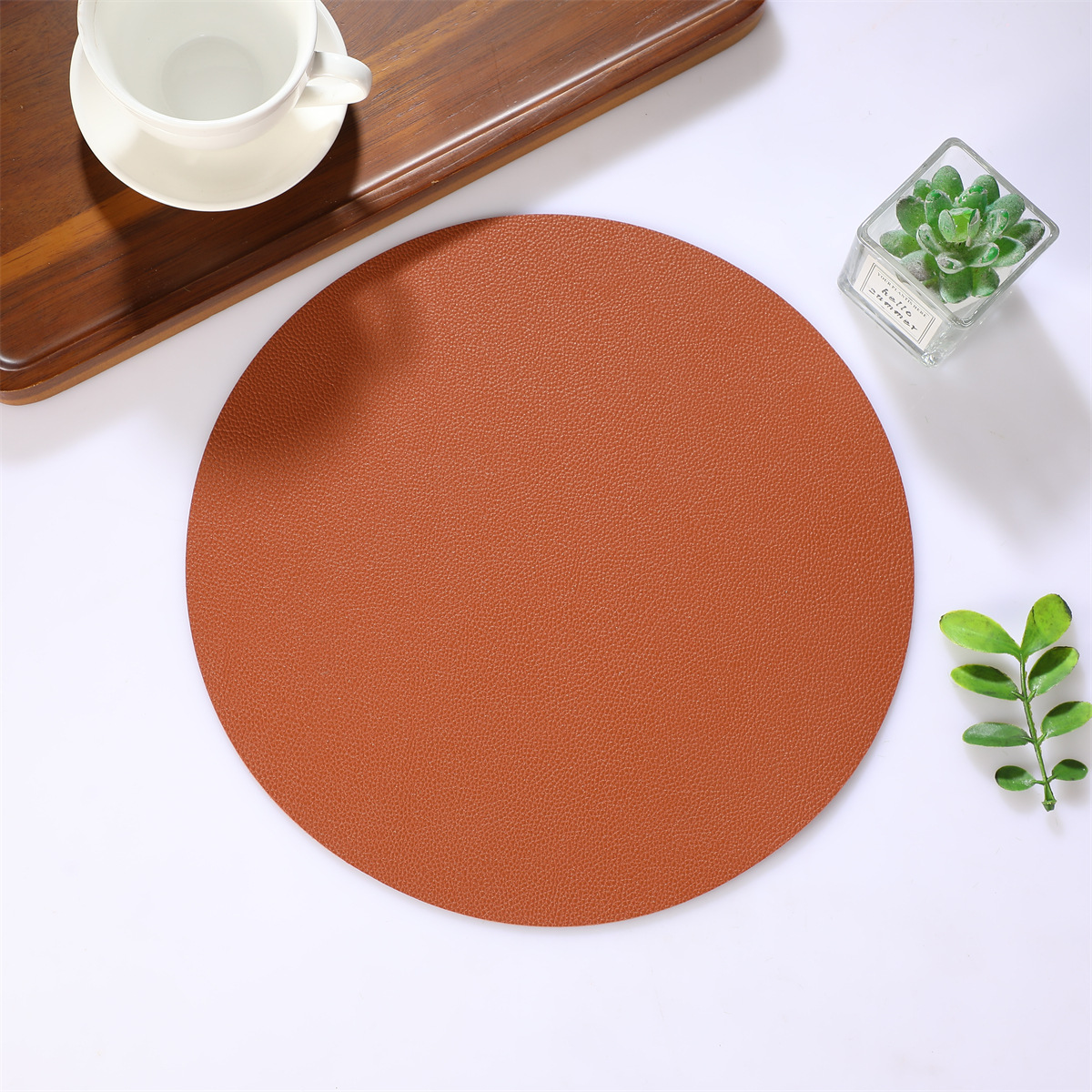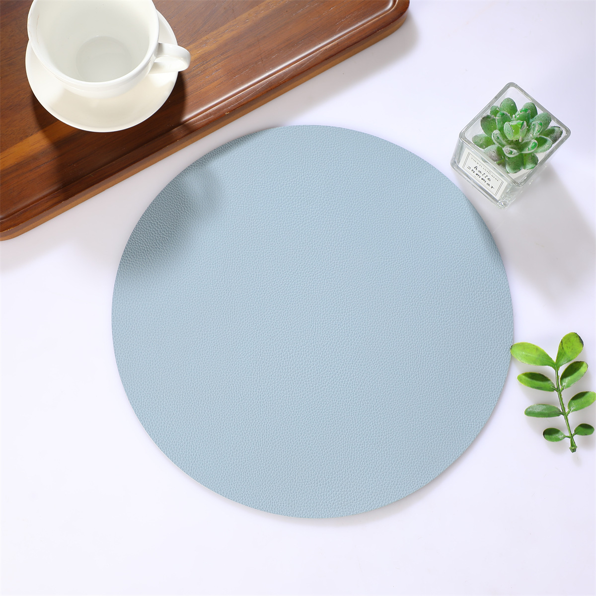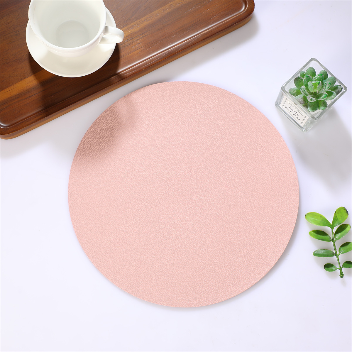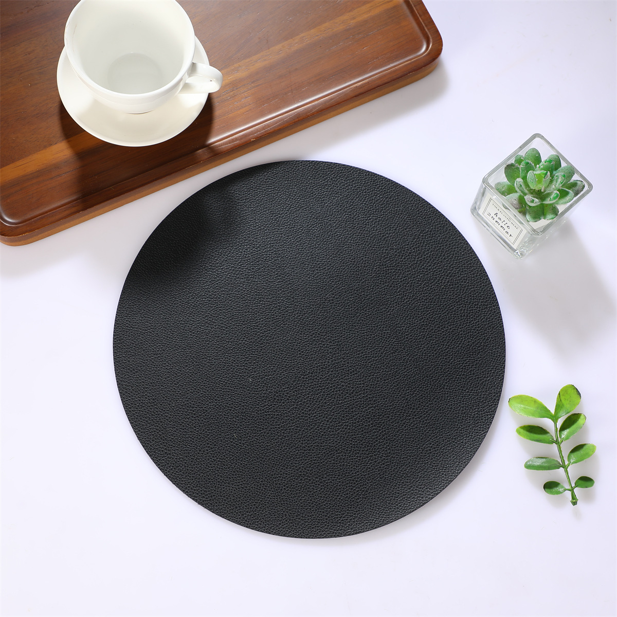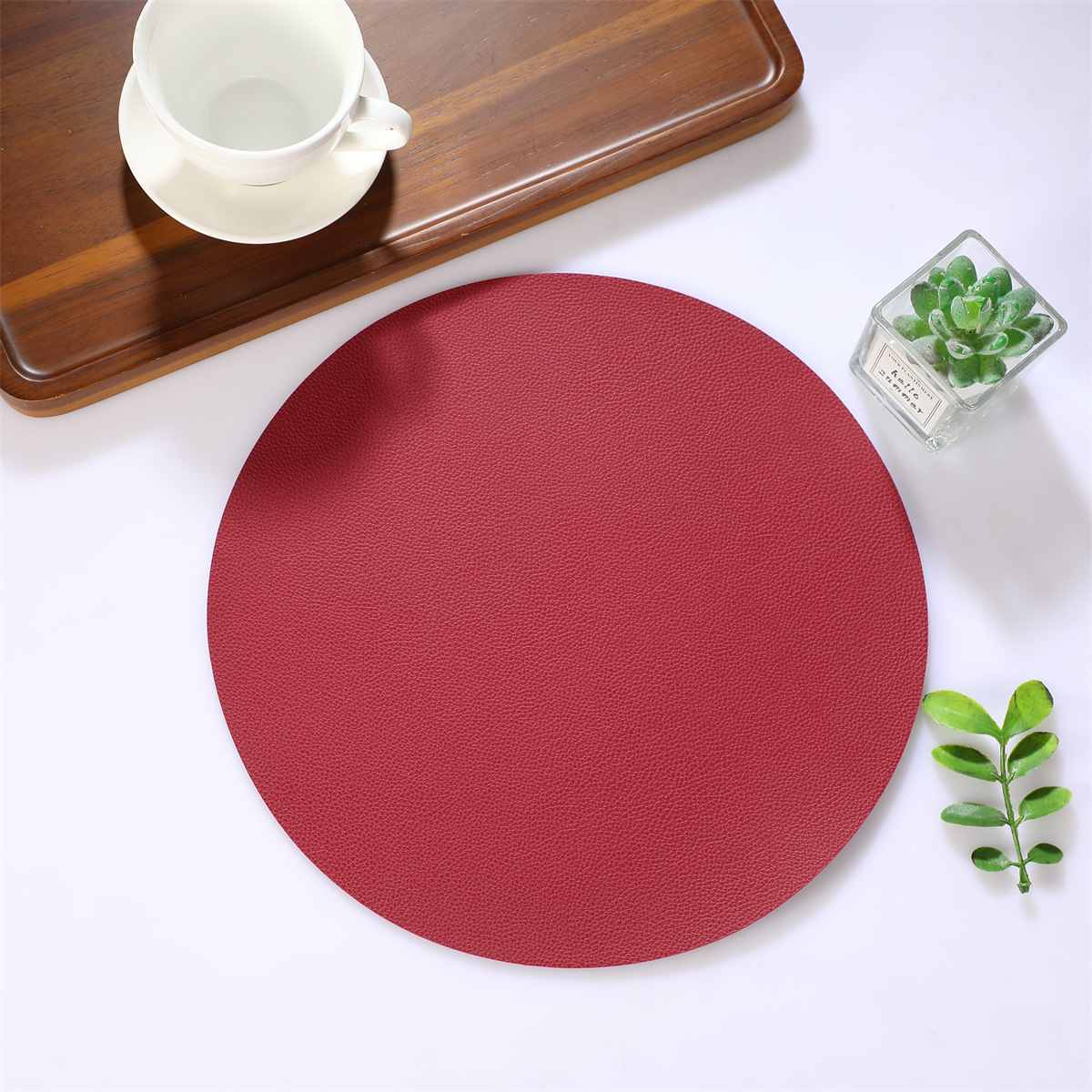 跨境现货皮革百搭简约款餐垫38厘米PU大圆形西餐桌垫防水隔热餐子