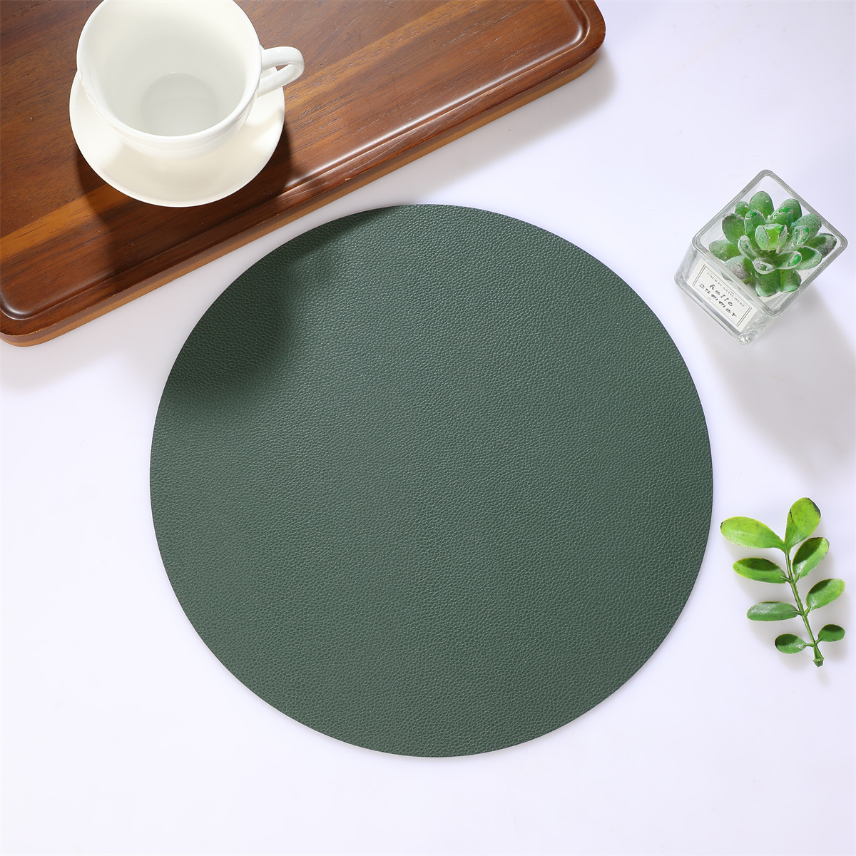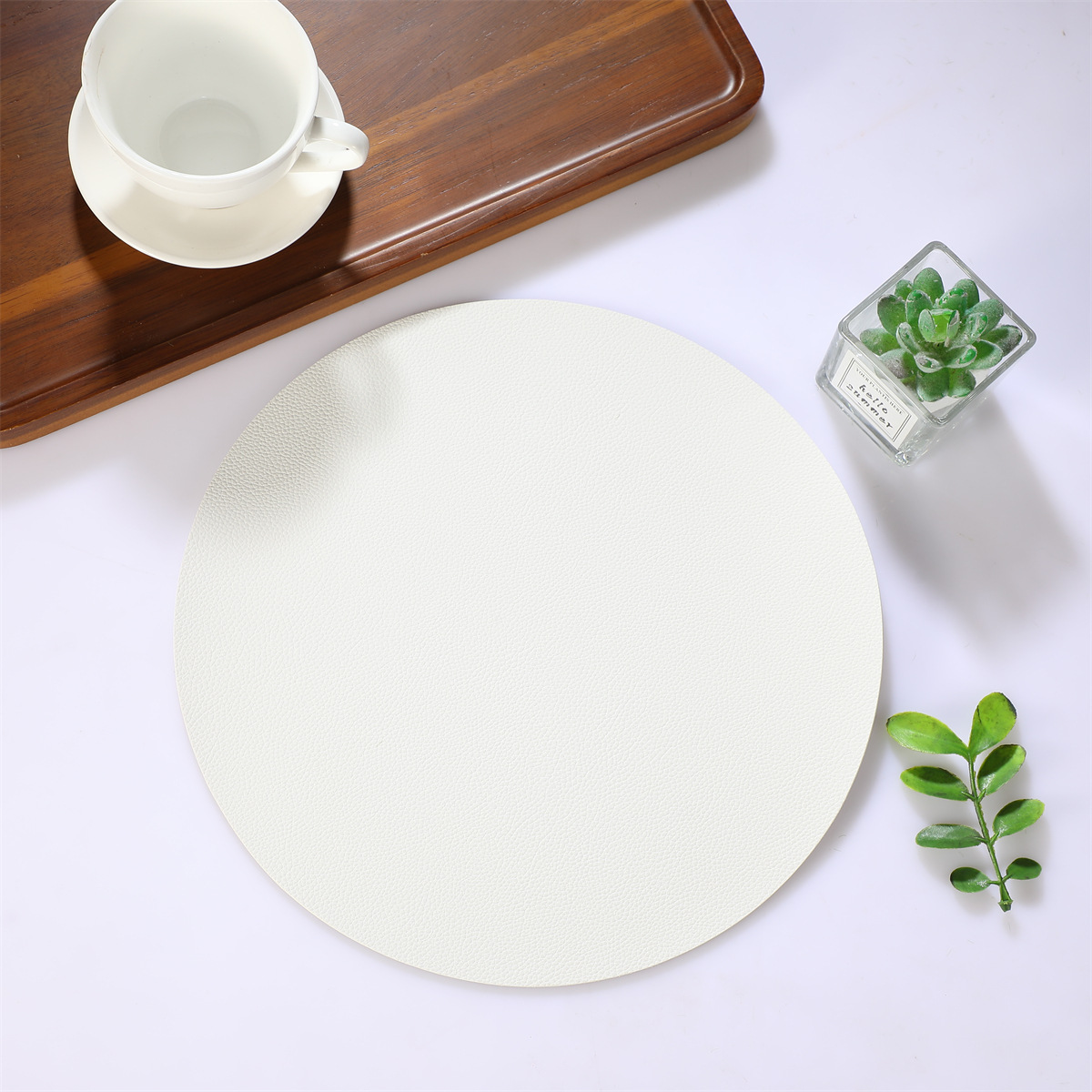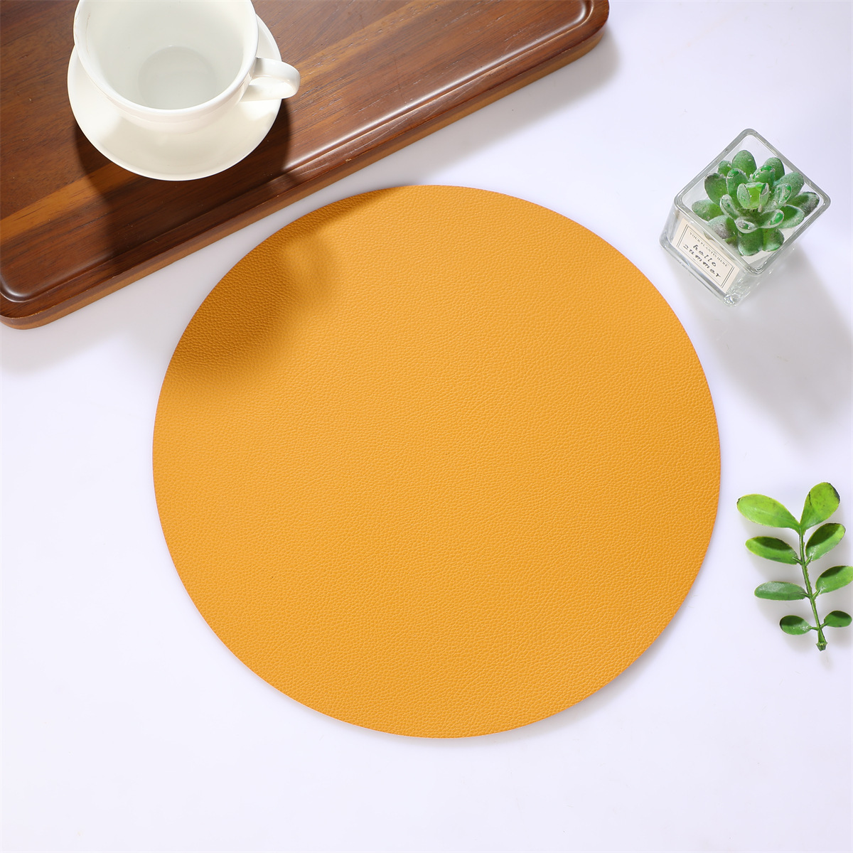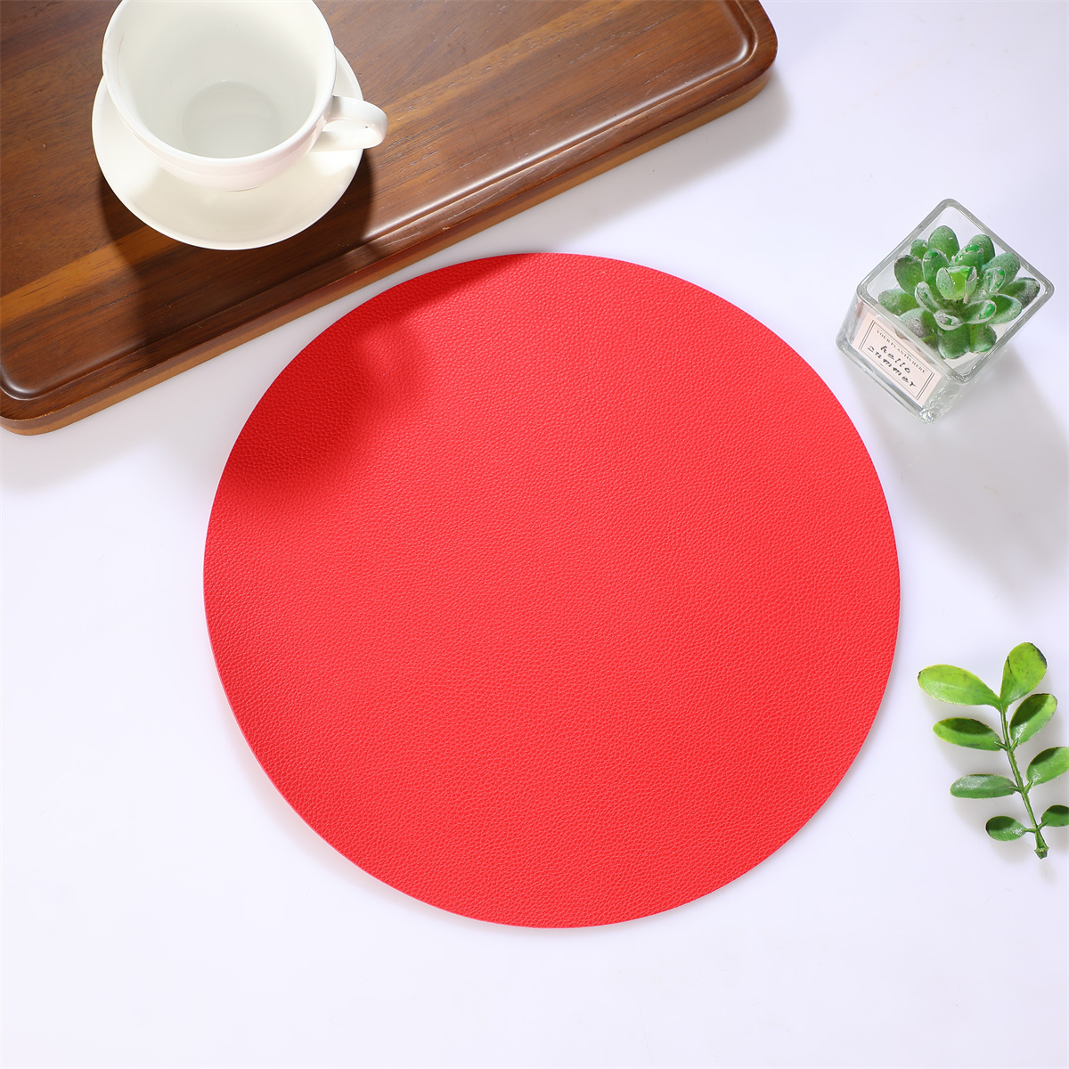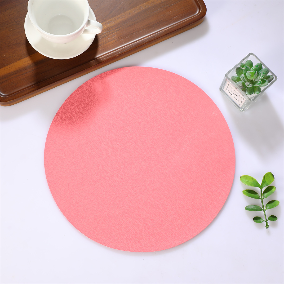 跨境现货皮革百搭简约款餐垫38厘米PU大圆形西餐桌垫防水隔热餐子