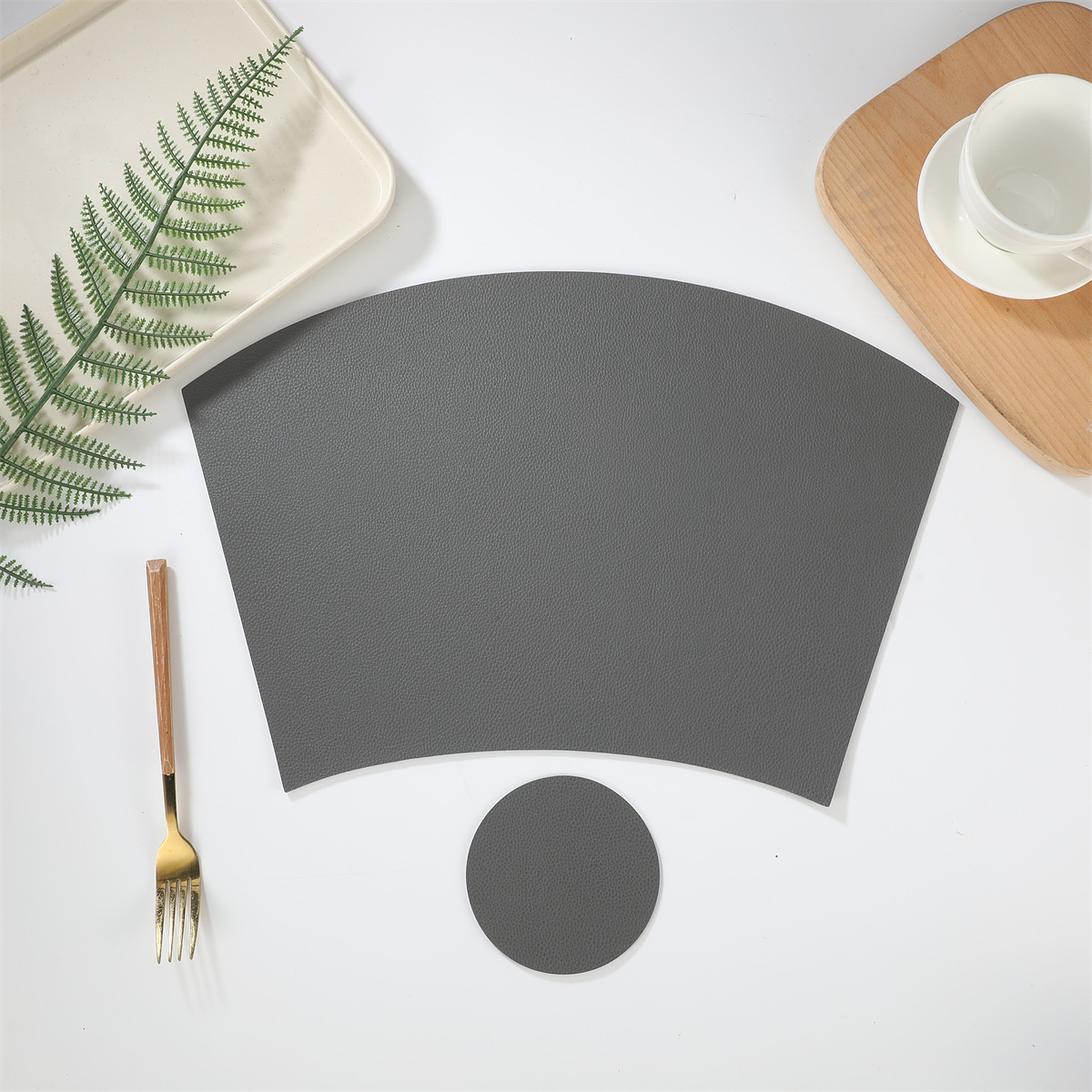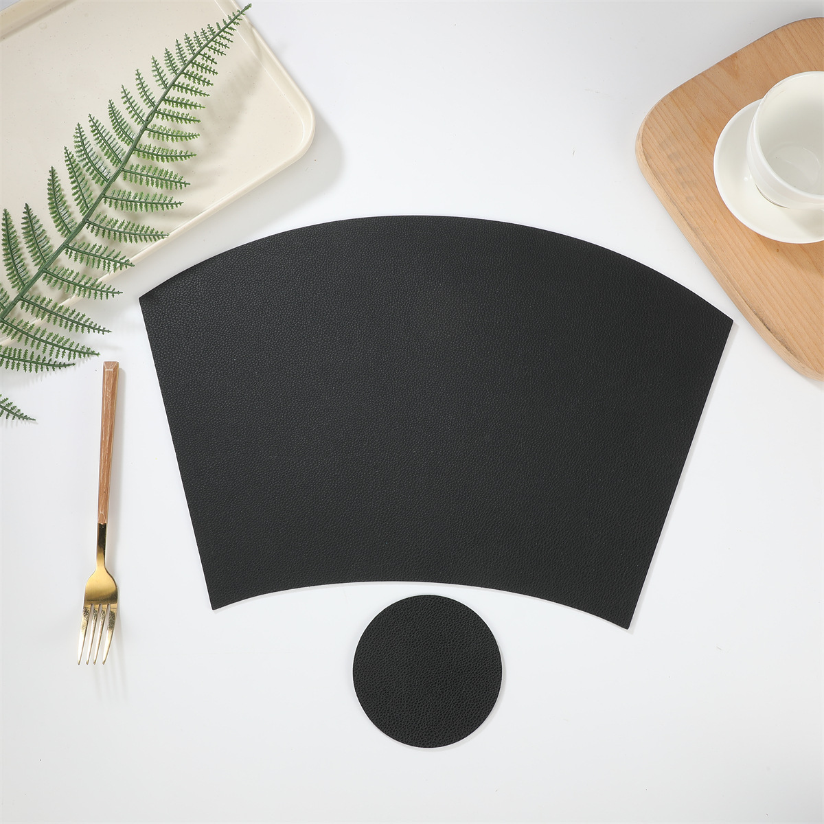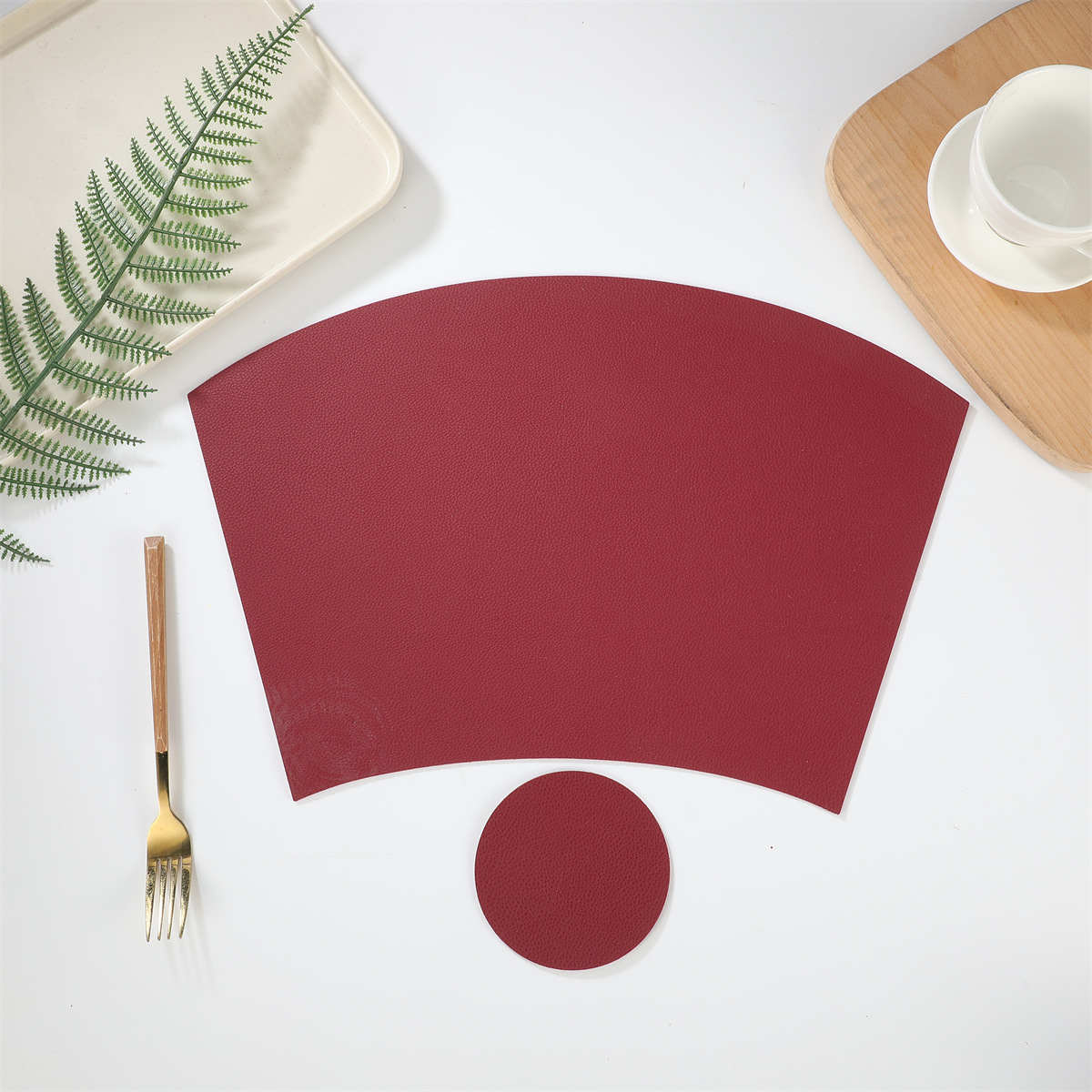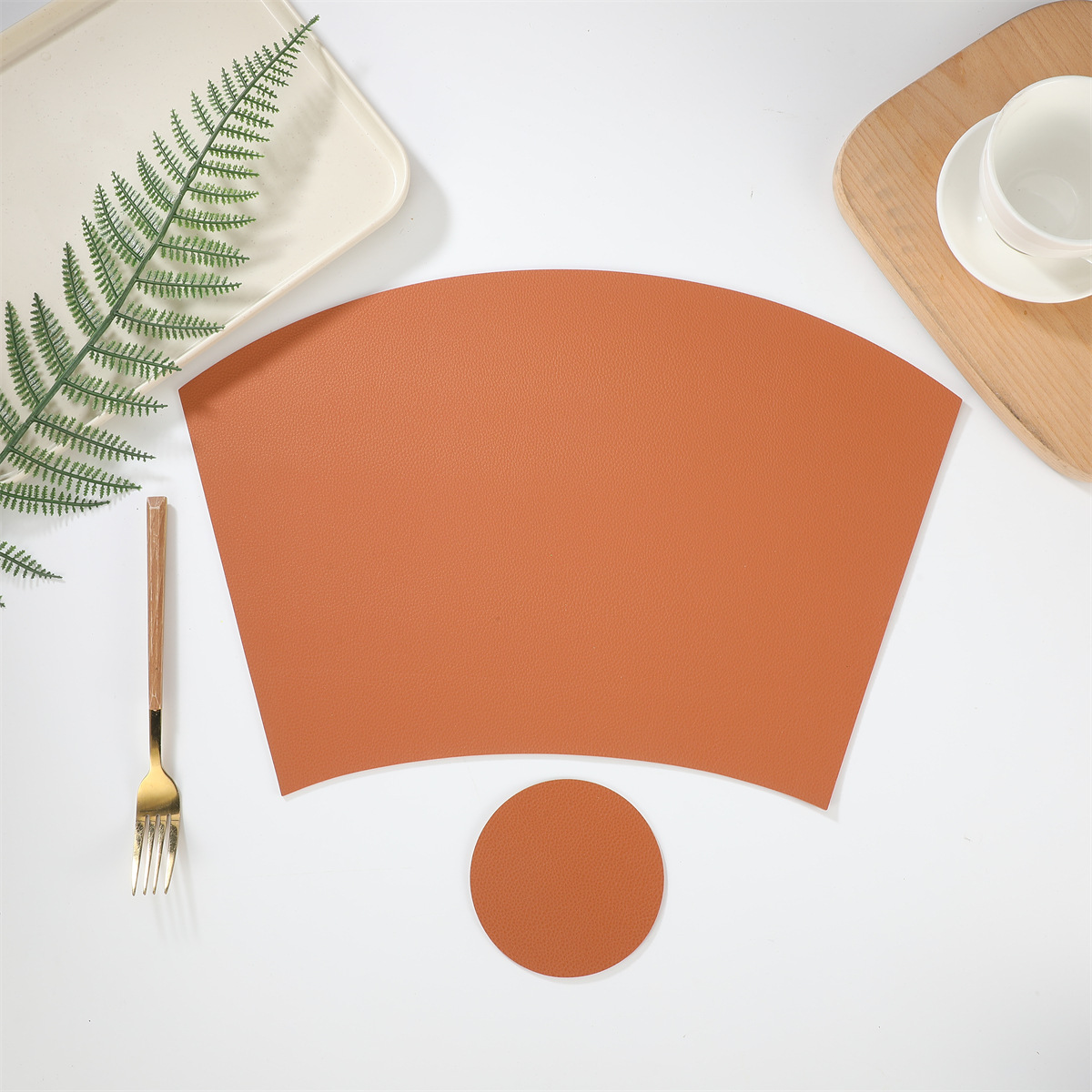 跨境现货皮革2件套1片弧边扇形+1片圆形杯垫餐桌垫家用隔热防水垫