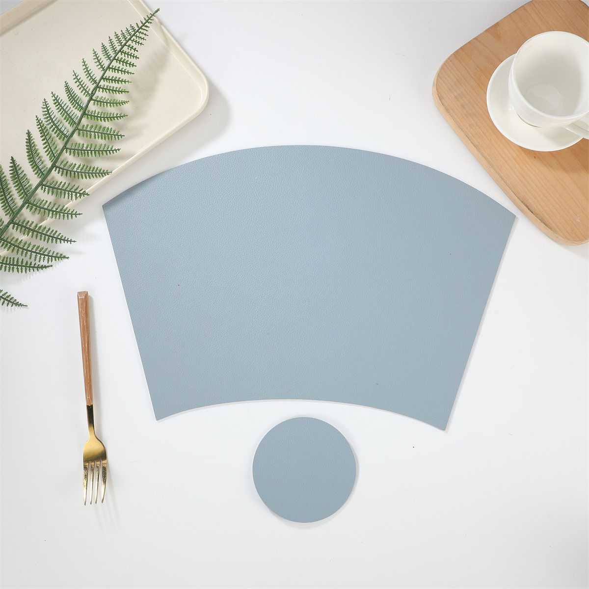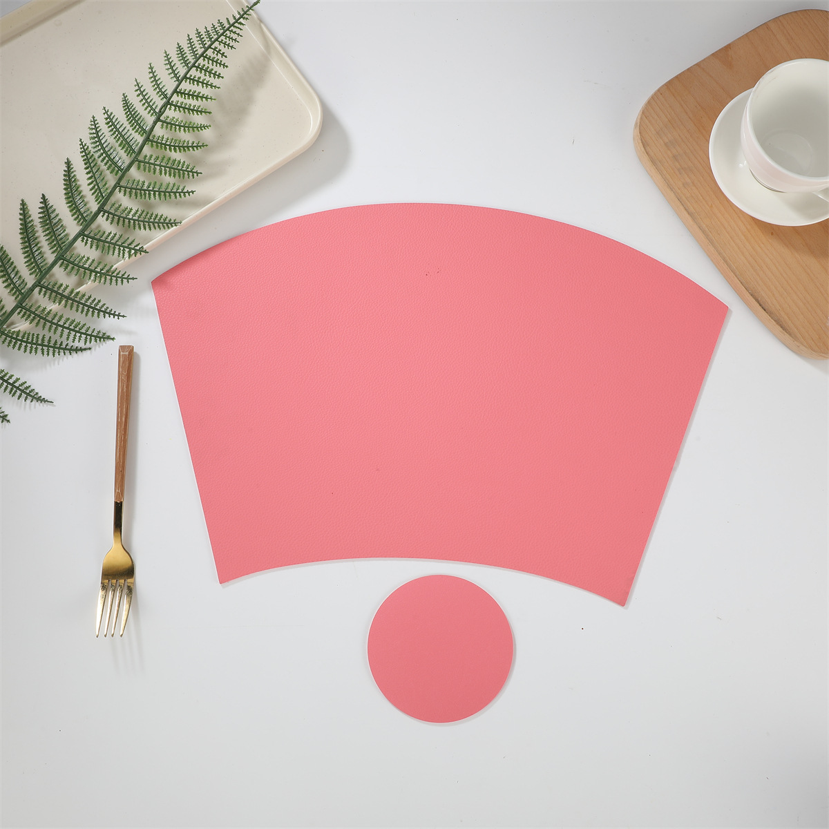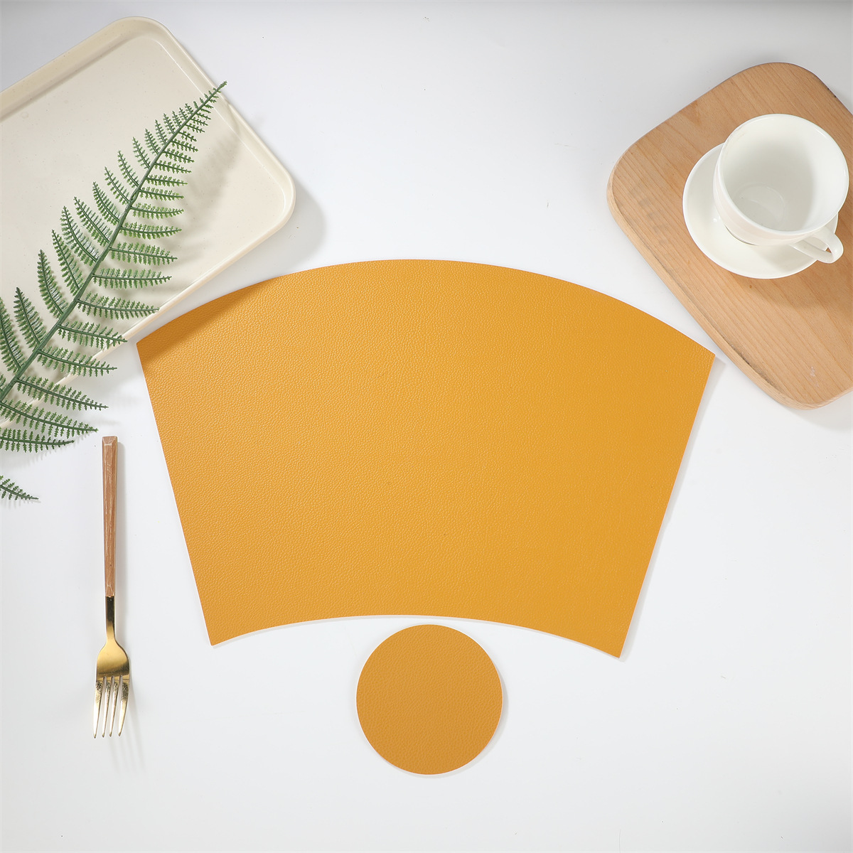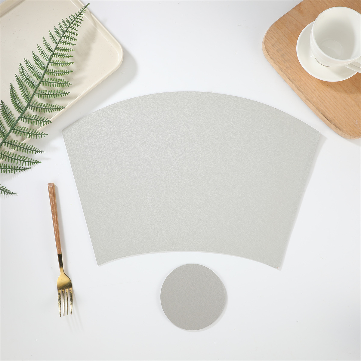 跨境现货皮革2件套1片弧边扇形+1片圆形杯垫餐桌垫家用隔热防水垫