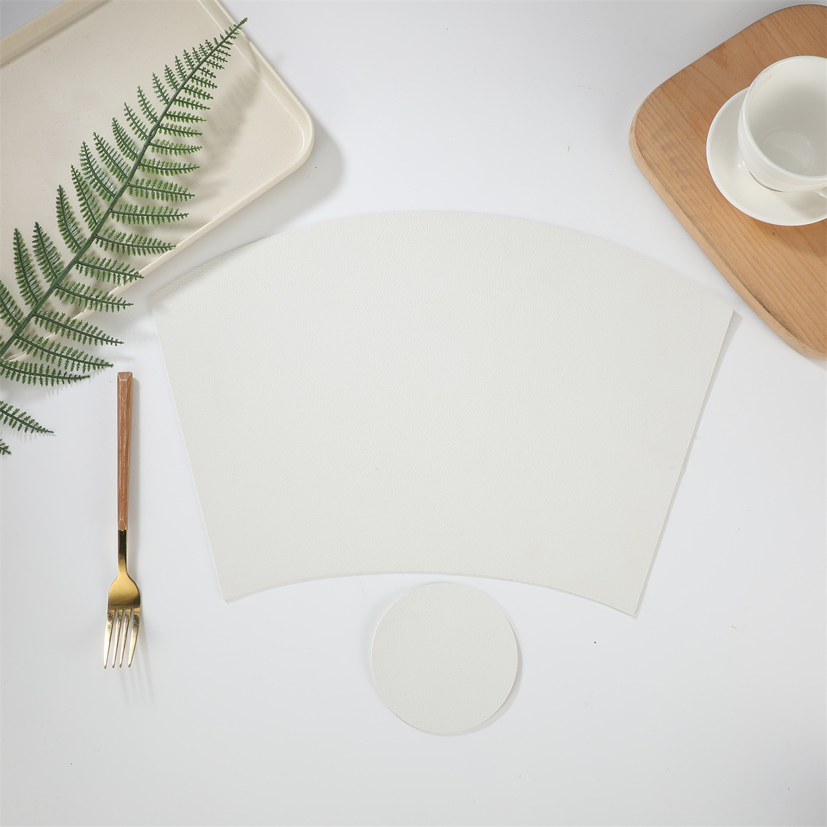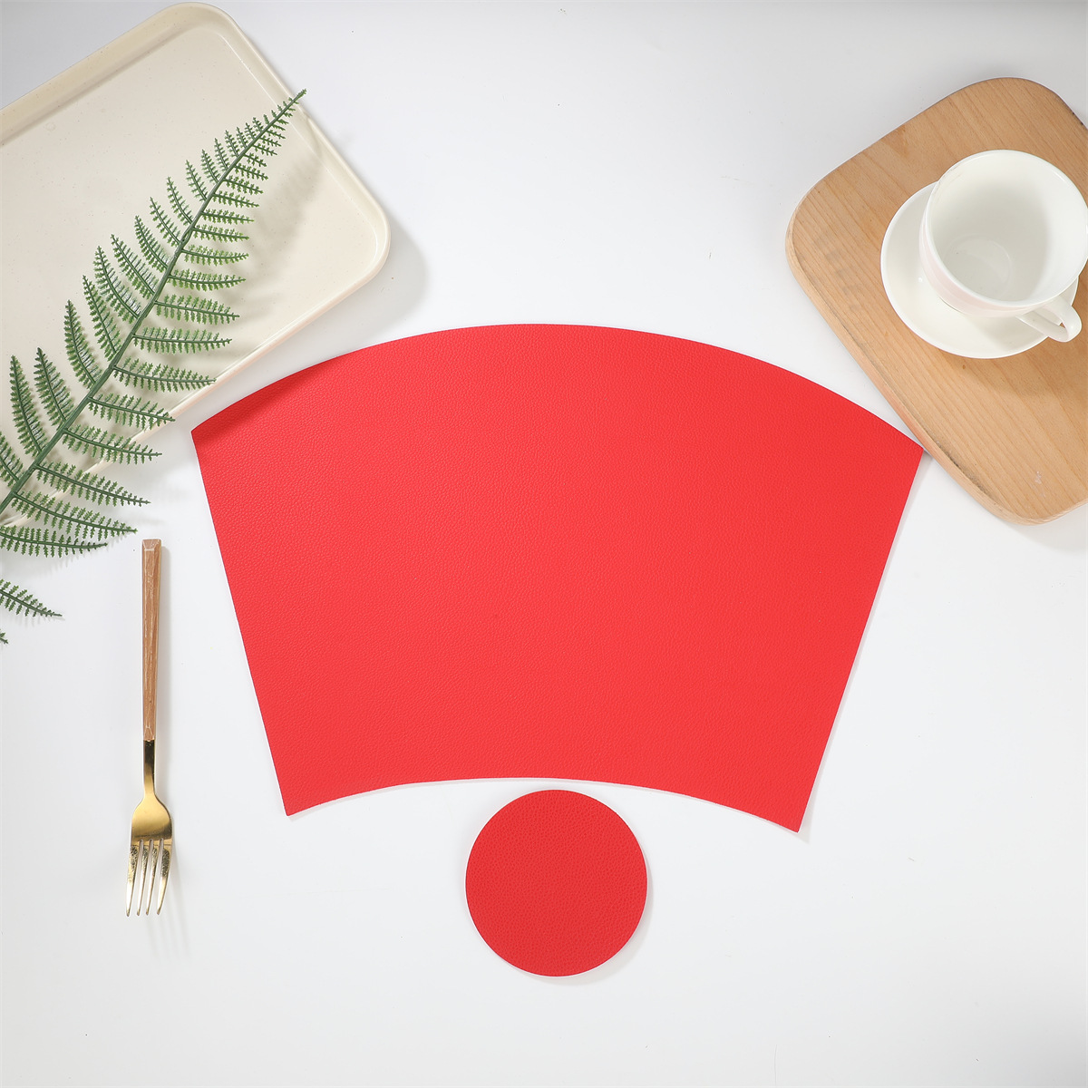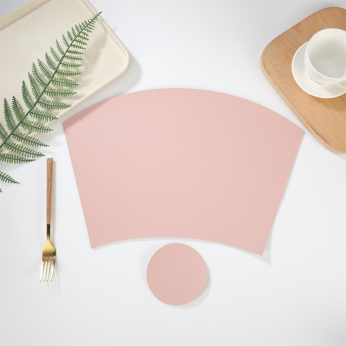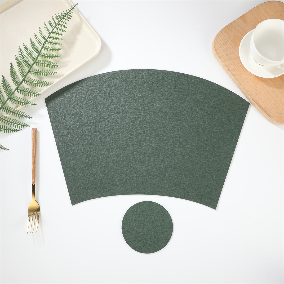 跨境现货皮革2件套1片弧边扇形+1片圆形杯垫餐桌垫家用隔热防水垫