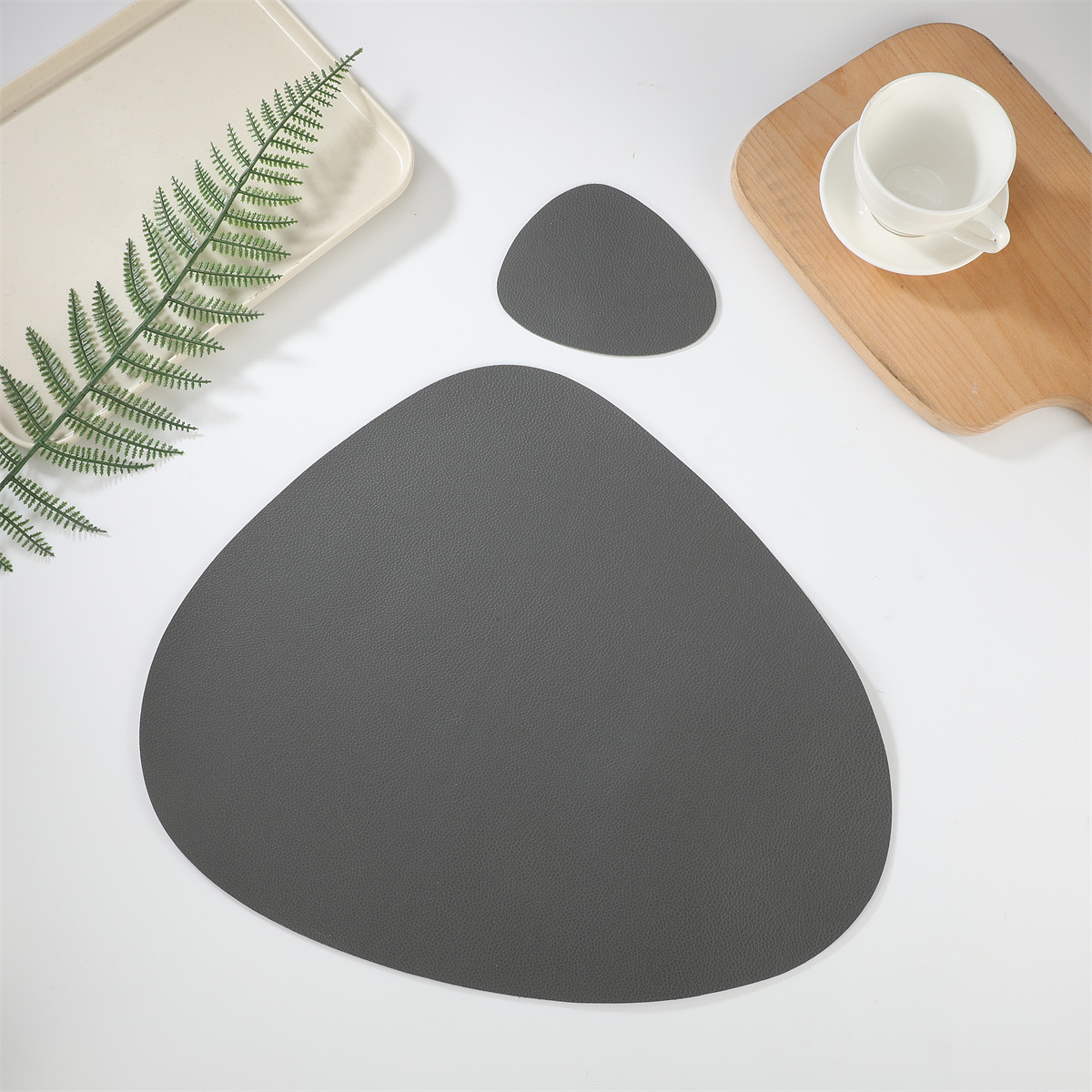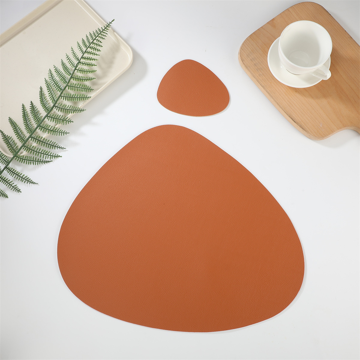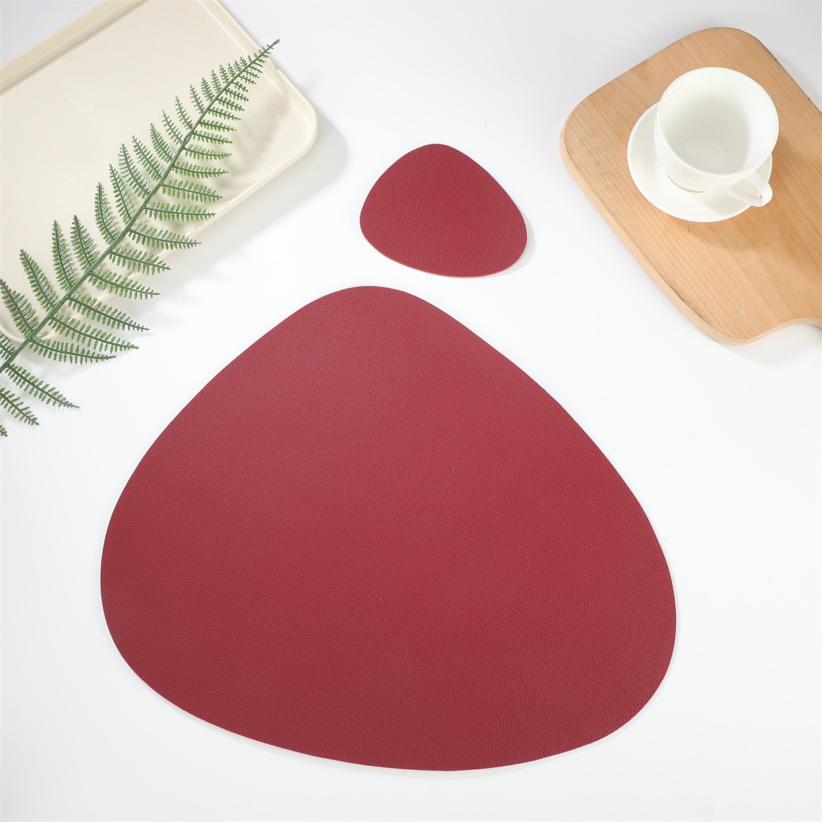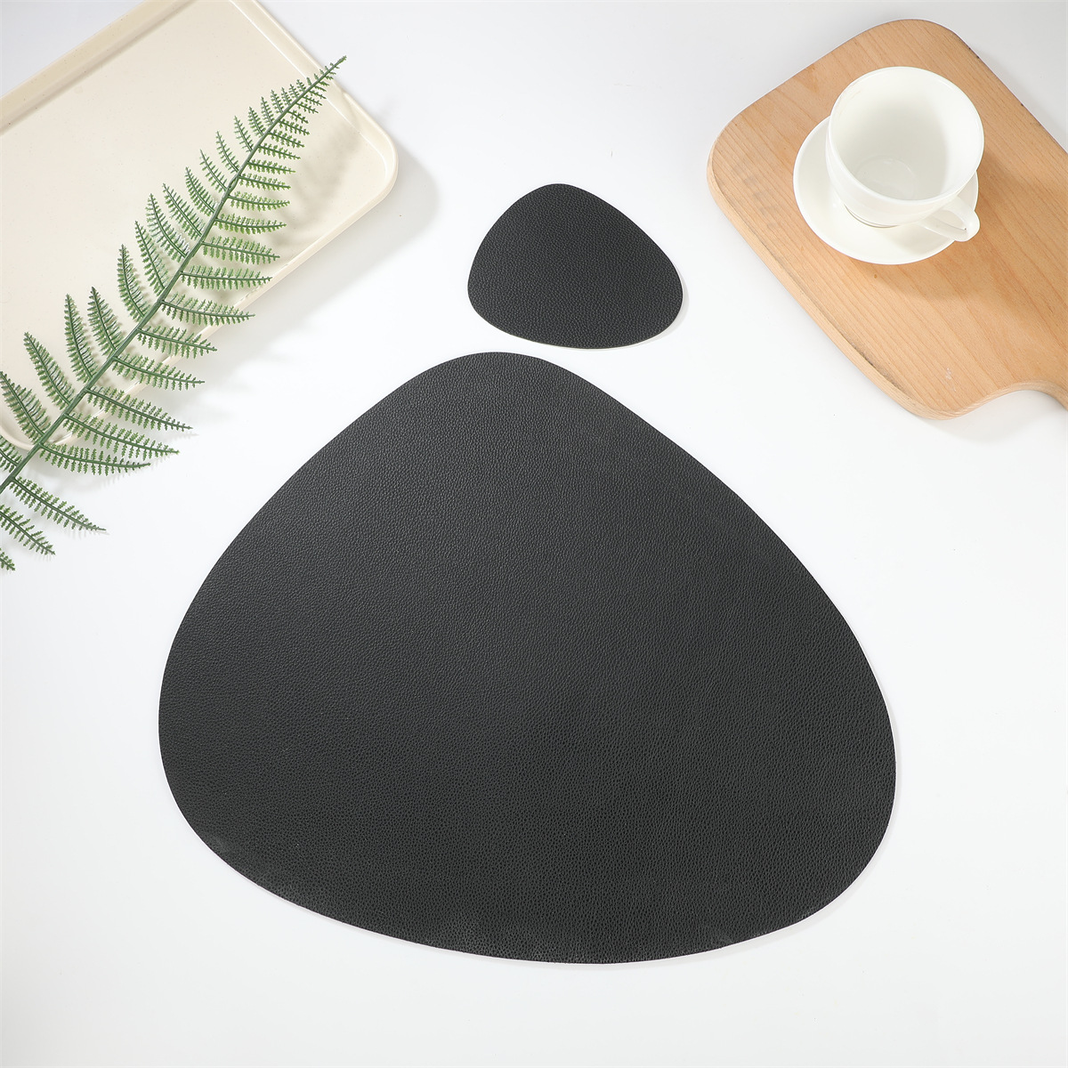 跨境现货皮革水滴套装+杯垫西餐桌垫茶杯垫简约双面隔热垫西餐垫