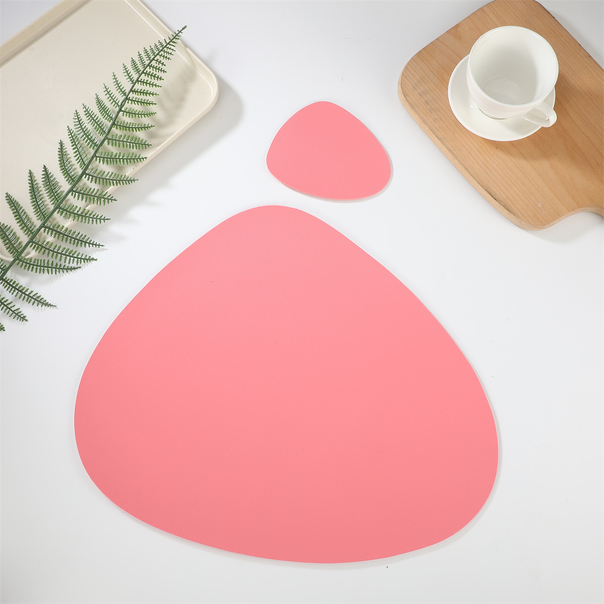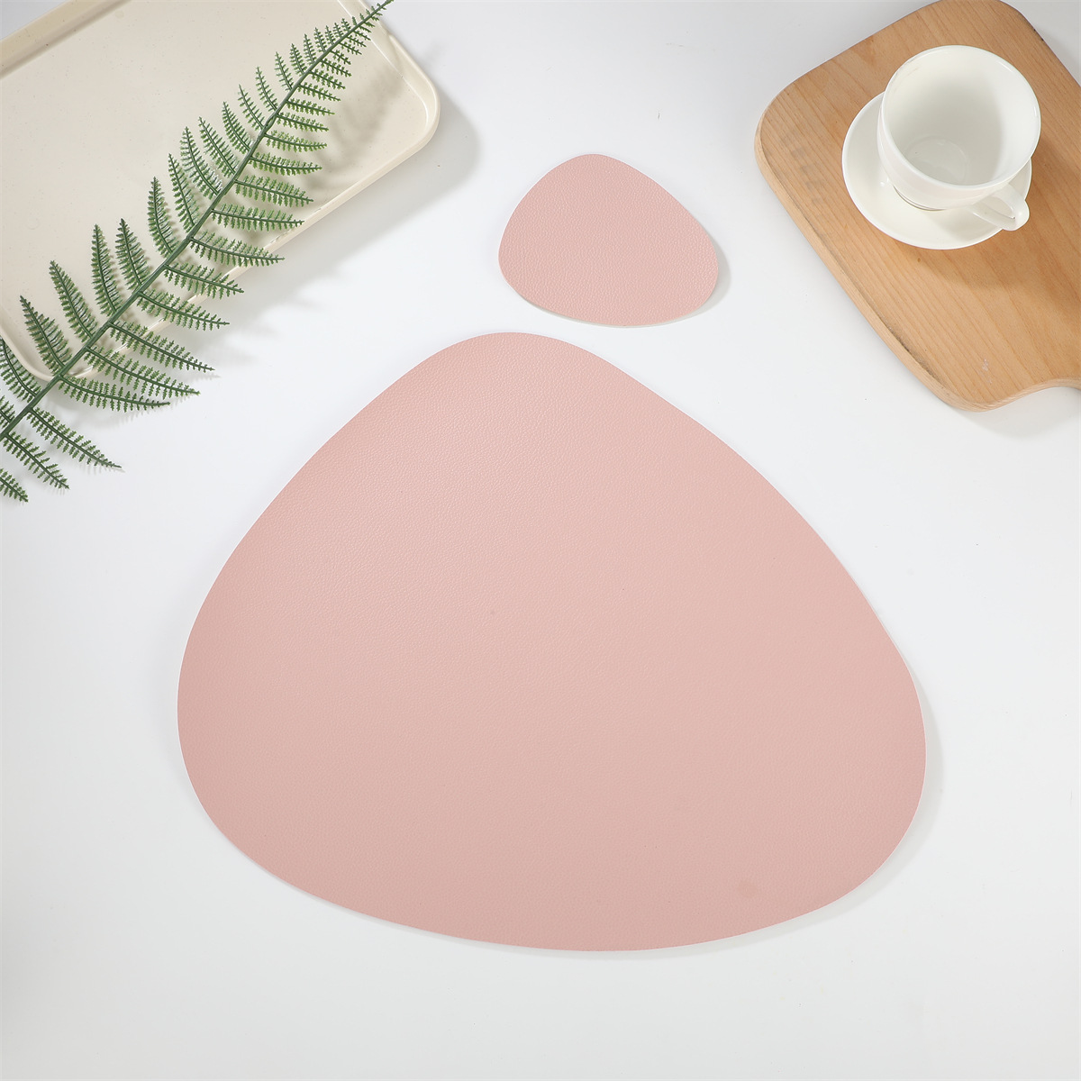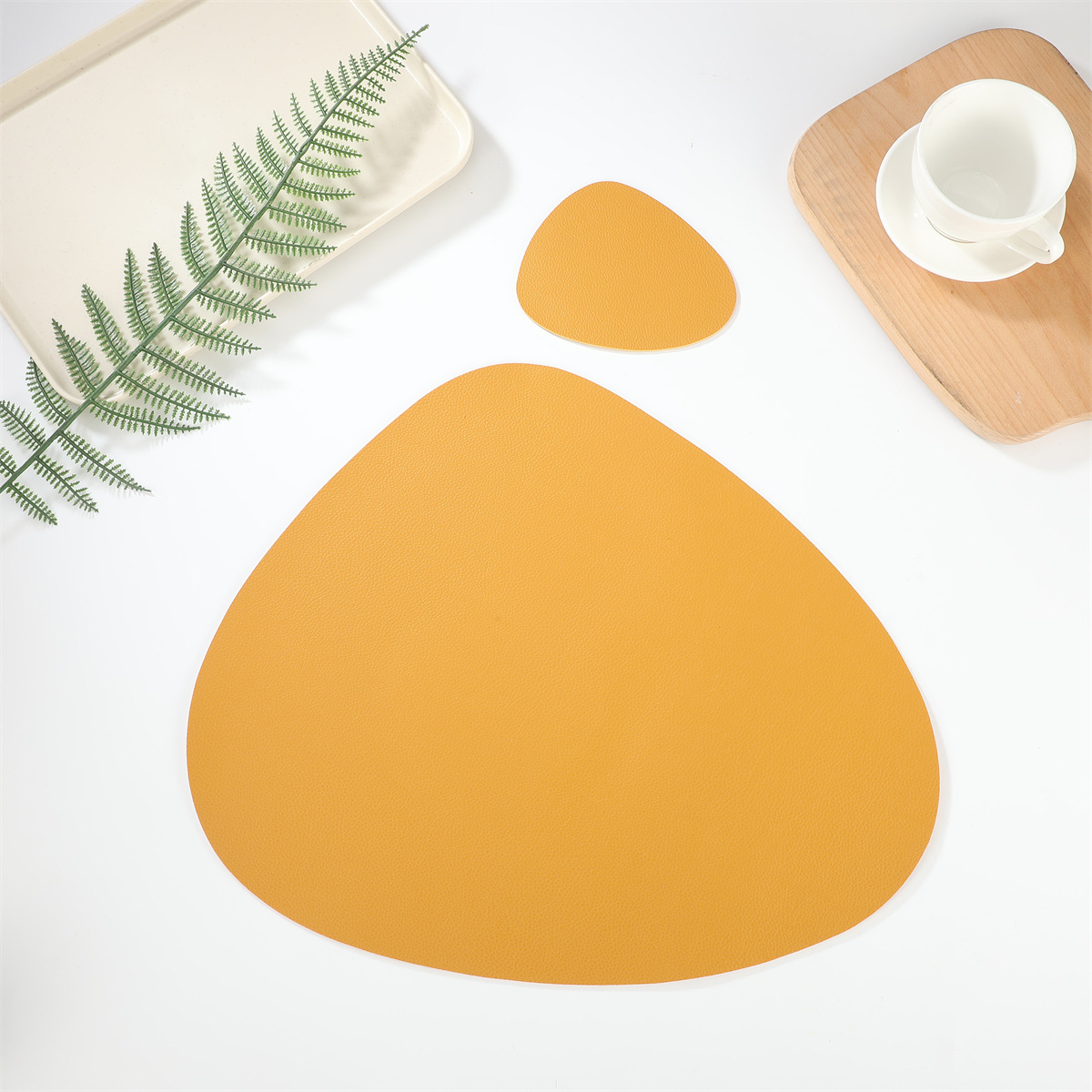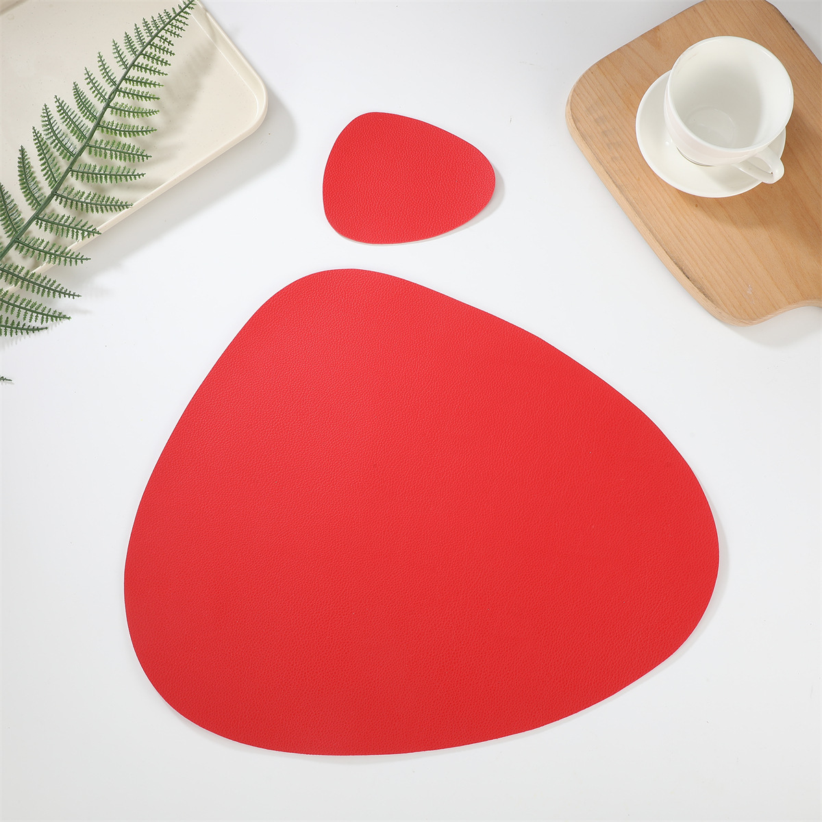 跨境现货皮革水滴套装+杯垫西餐桌垫茶杯垫简约双面隔热垫西餐垫