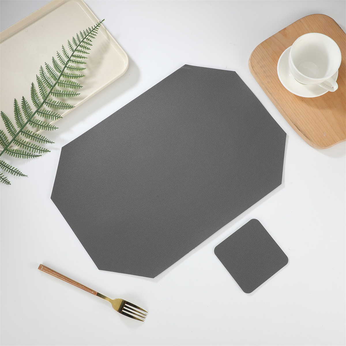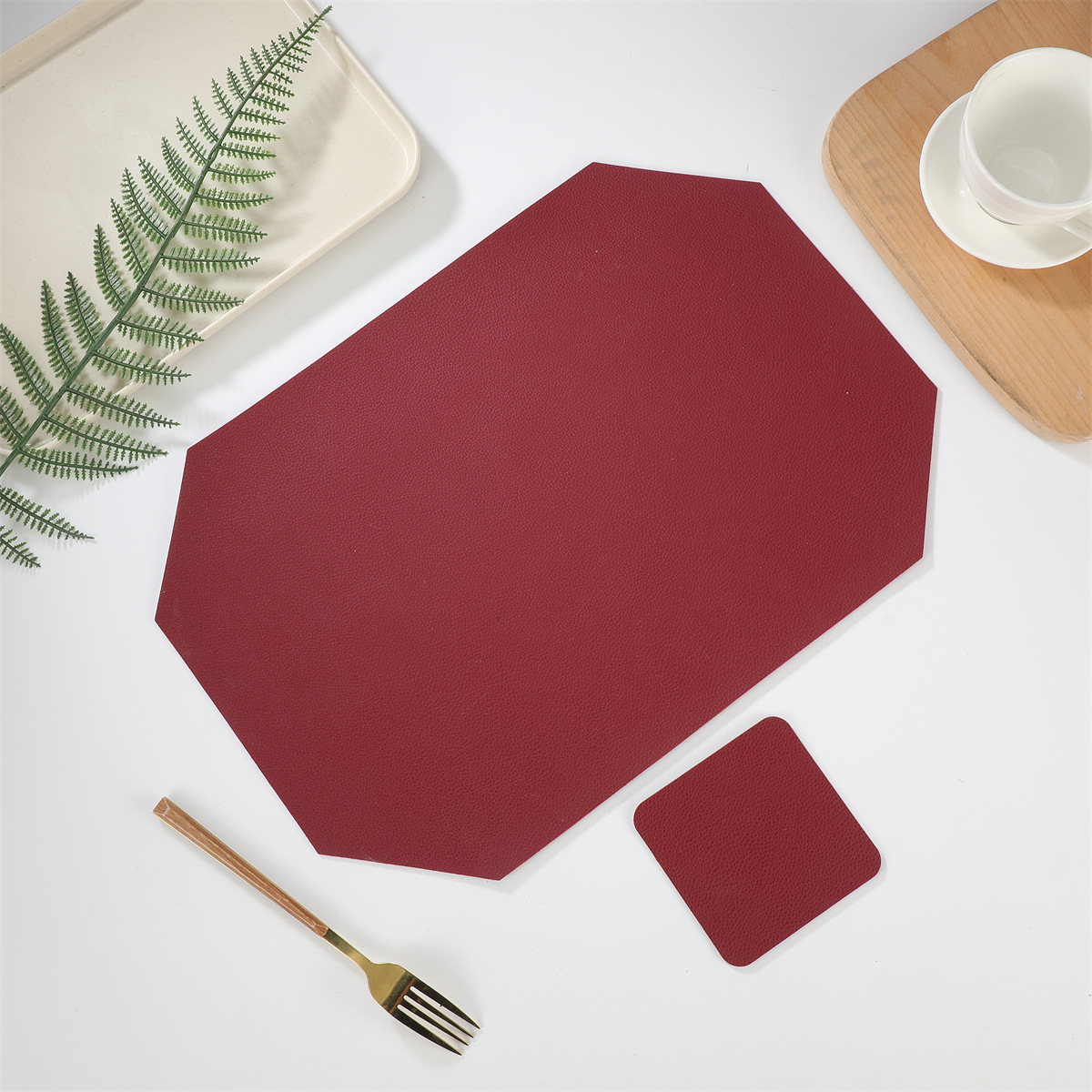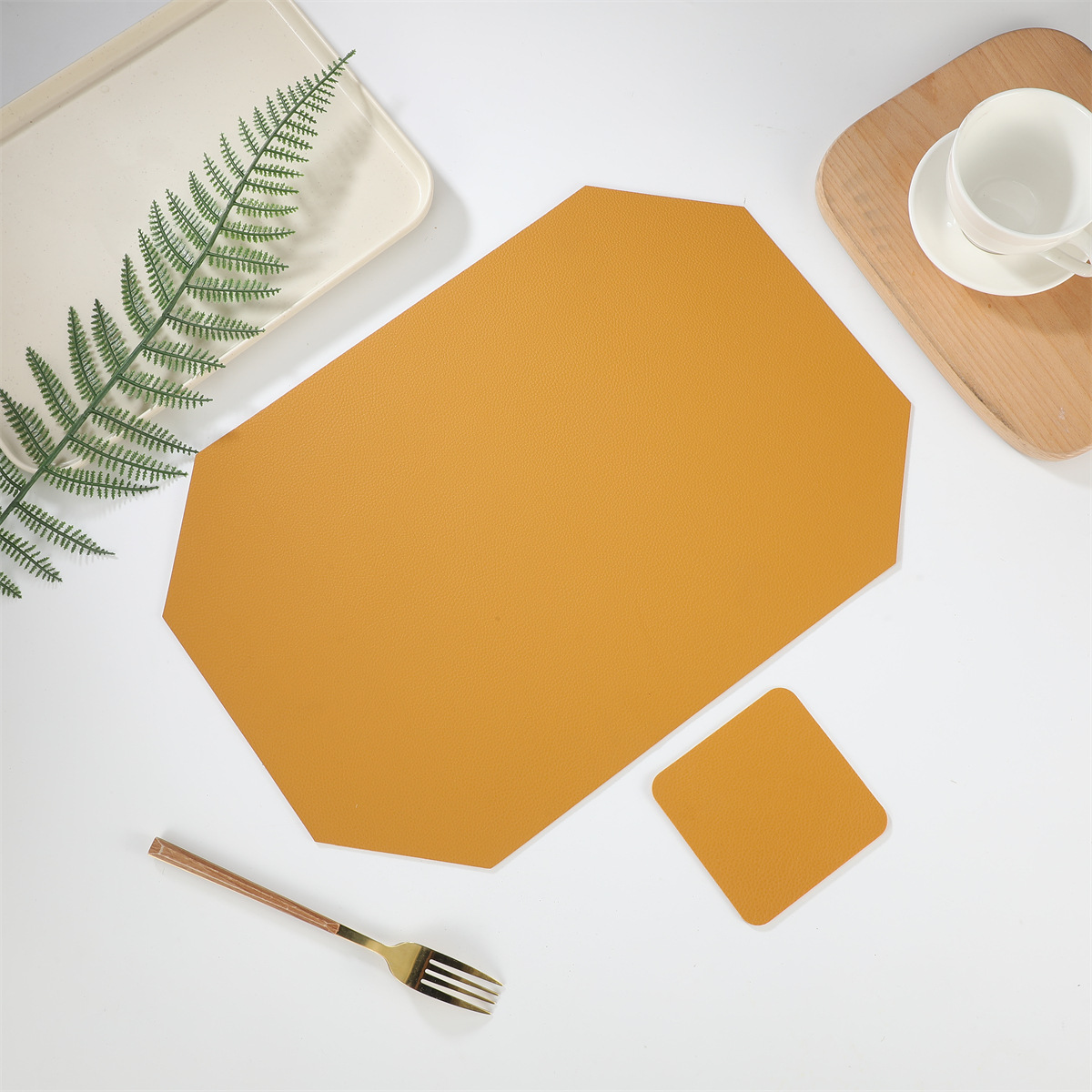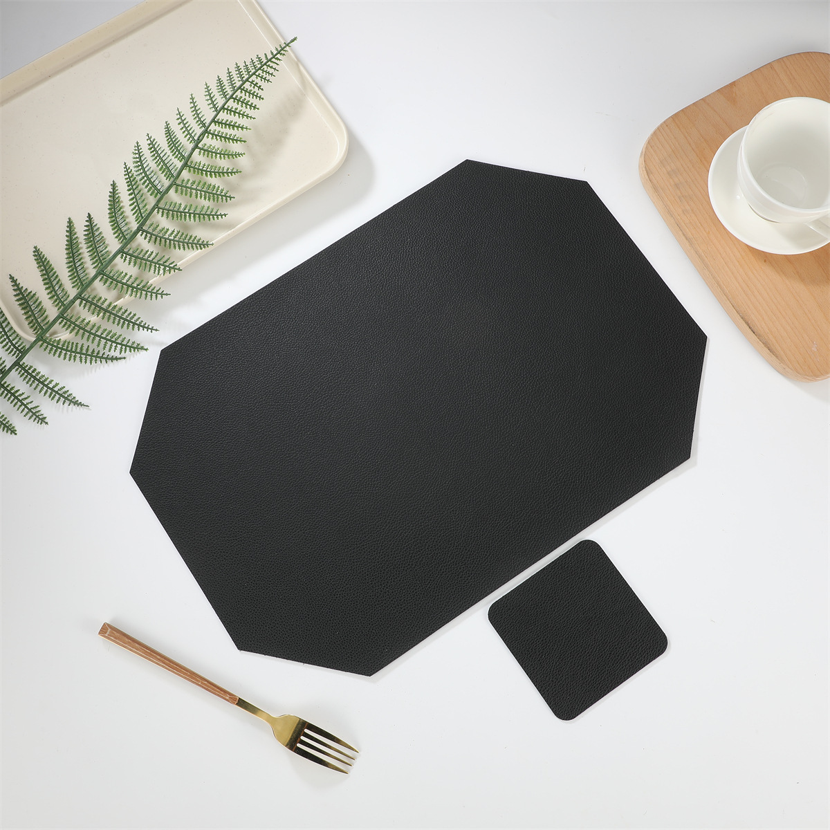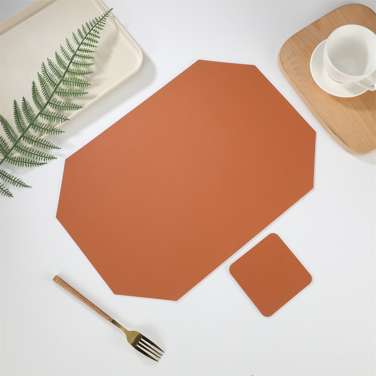 跨境现货皮革2件套1片八角形+1片正方形简约百搭西餐垫隔热防水垫
