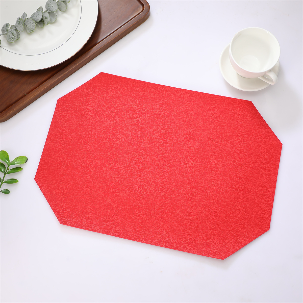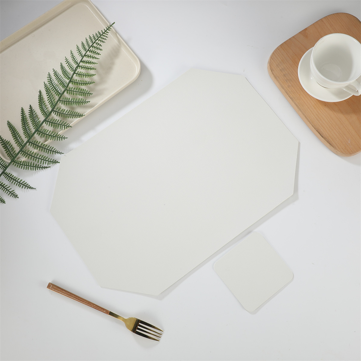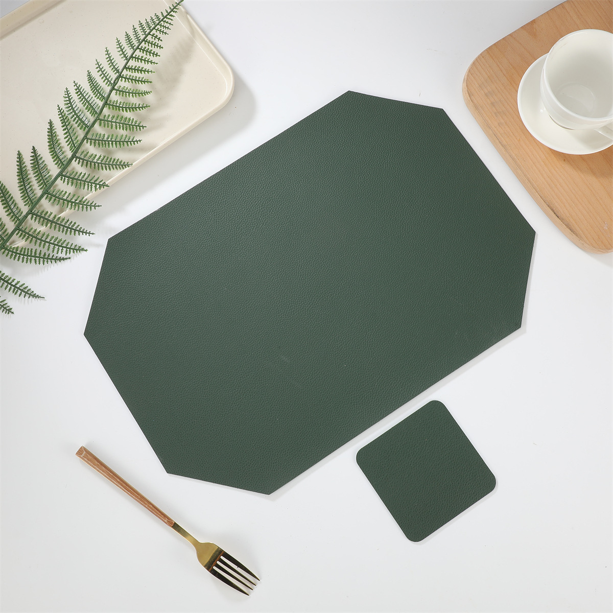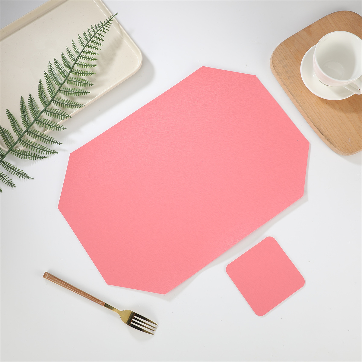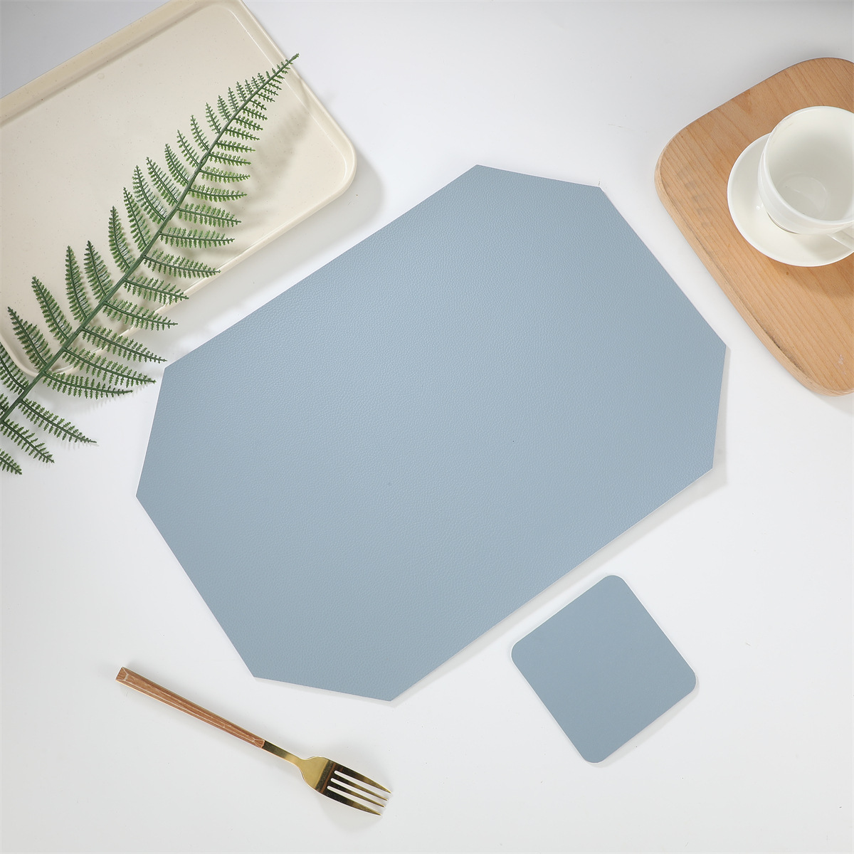跨境现货皮革2件套1片八角形+1片正方形简约百搭西餐垫隔热防水垫