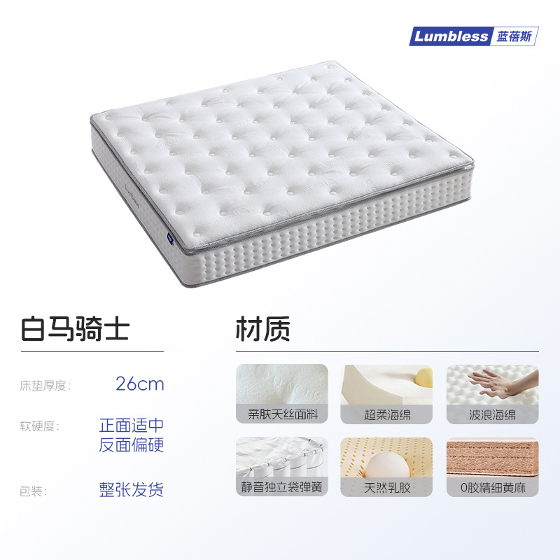 白马骑士【双面睡感/26cm】:波浪海绵+天然乳胶+独立袋装弹簧+精细黄麻